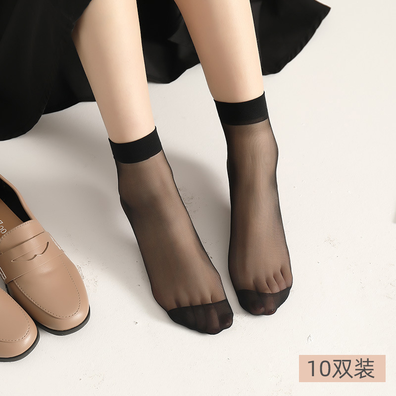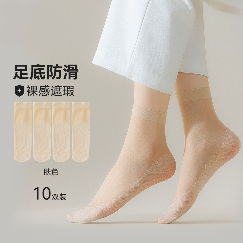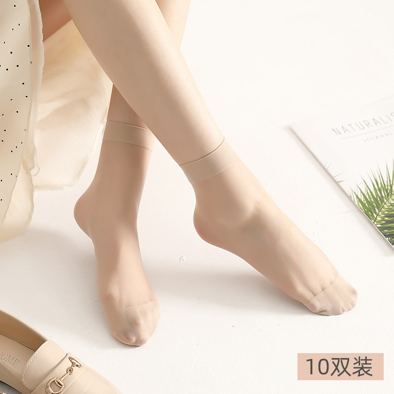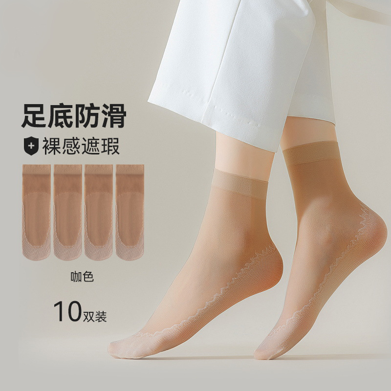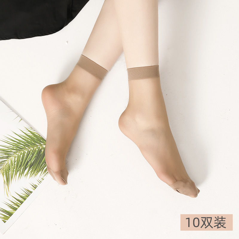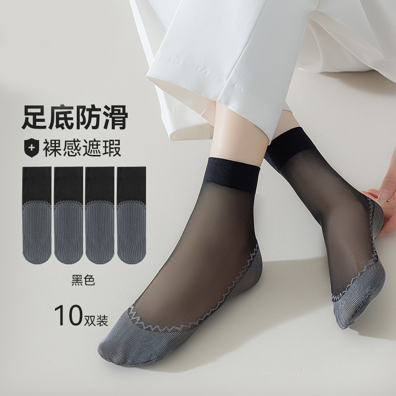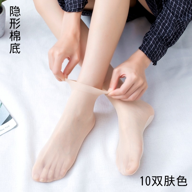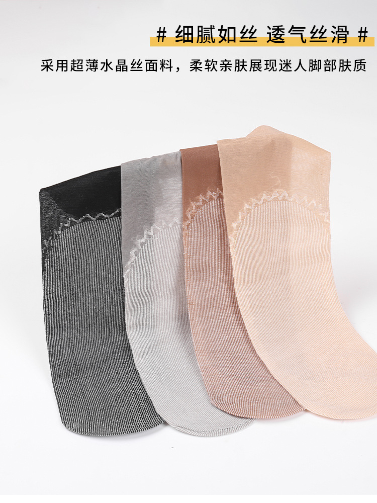 10双装水晶丝袜女夏季薄款棉底防滑中筒袜防勾丝肤色隐形短袜批发
