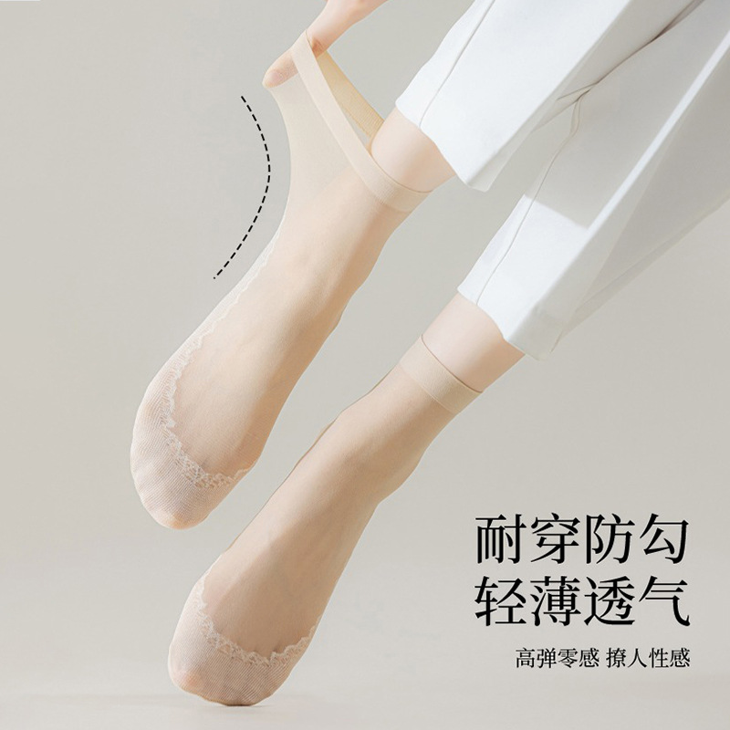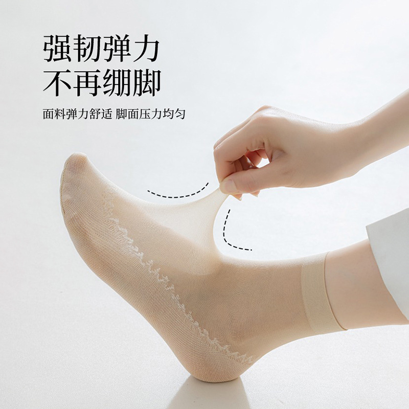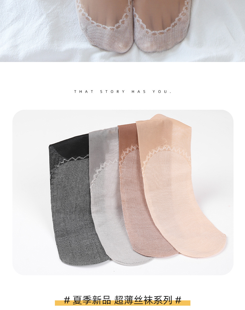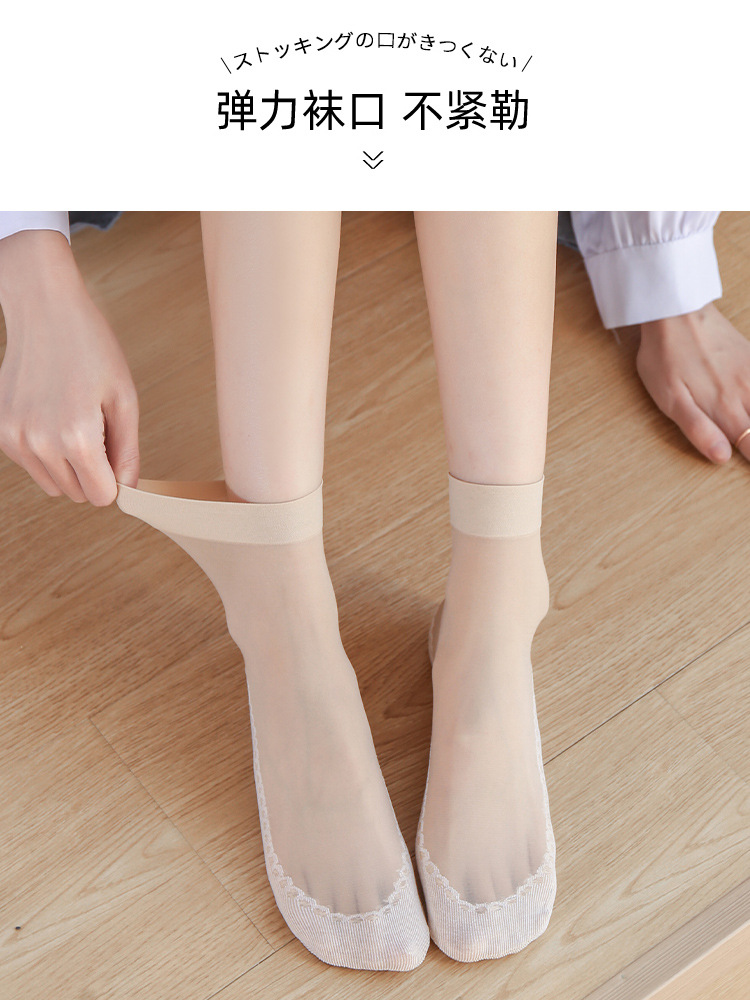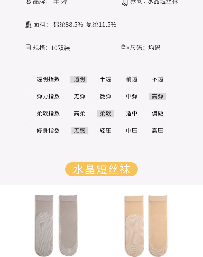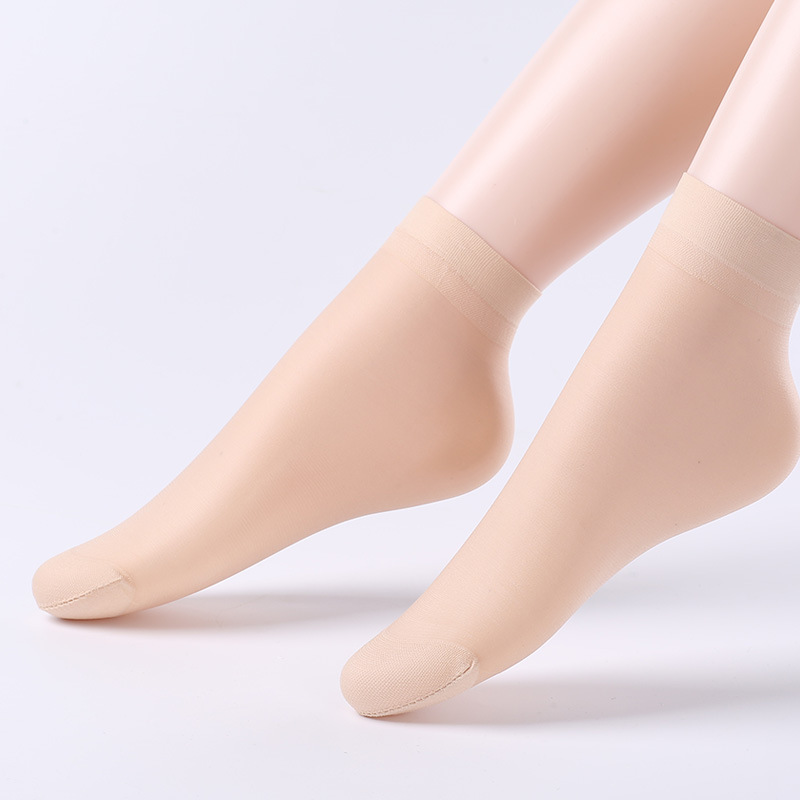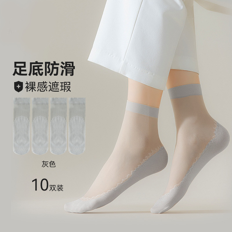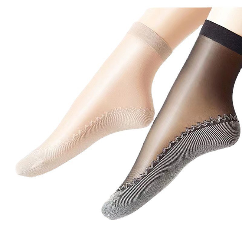 10双装水晶丝袜女夏季薄款棉底防滑中筒袜防勾丝肤色隐形短袜批发