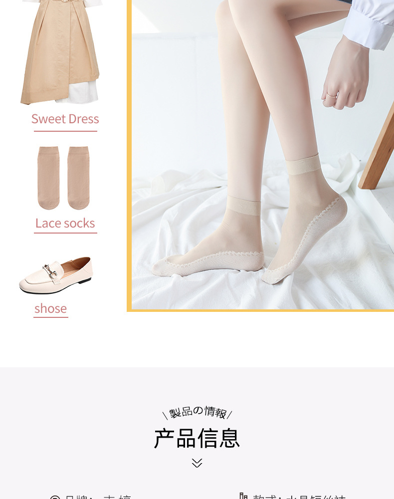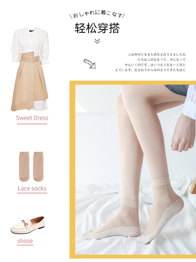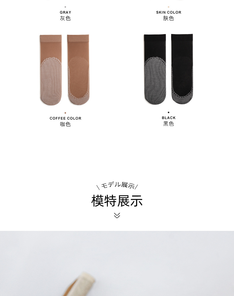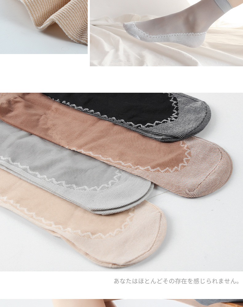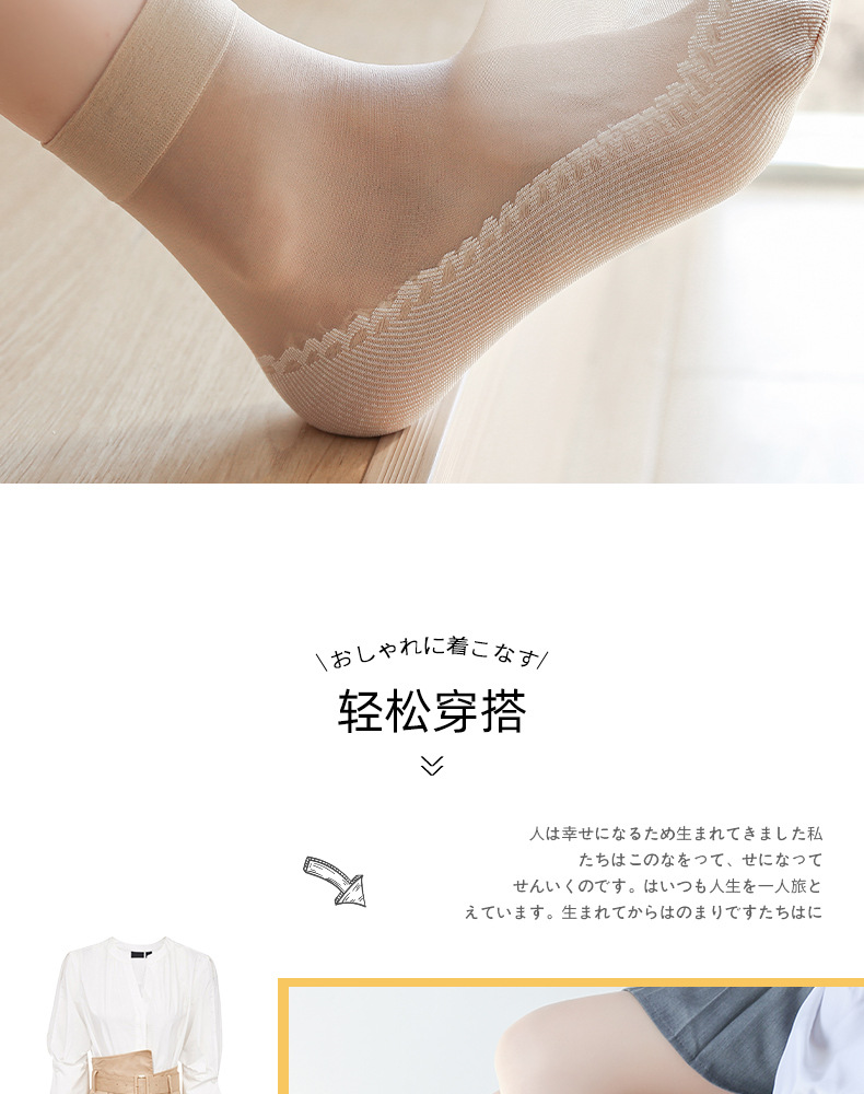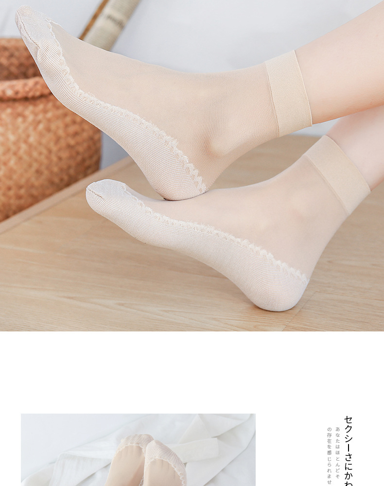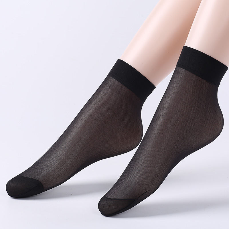10双装水晶丝袜女夏季薄款棉底防滑中筒袜防勾丝肤色隐形短袜批发