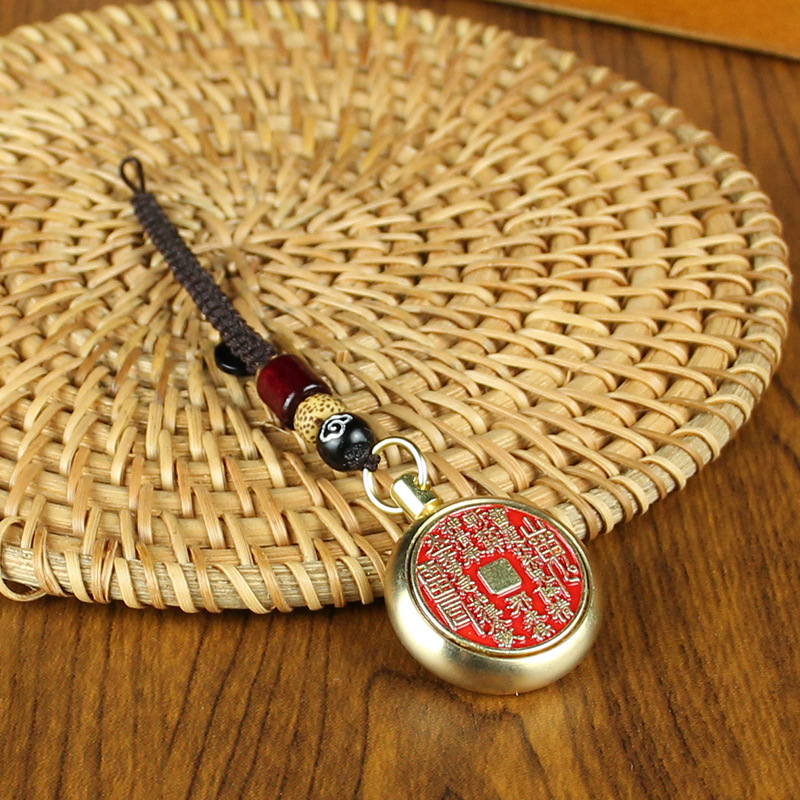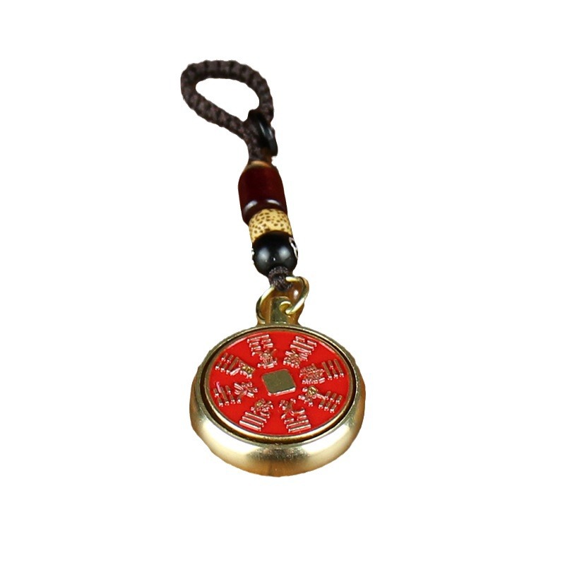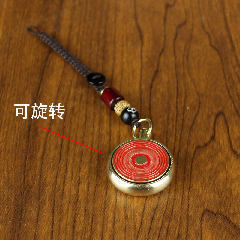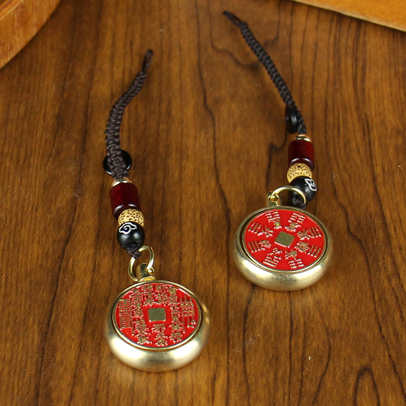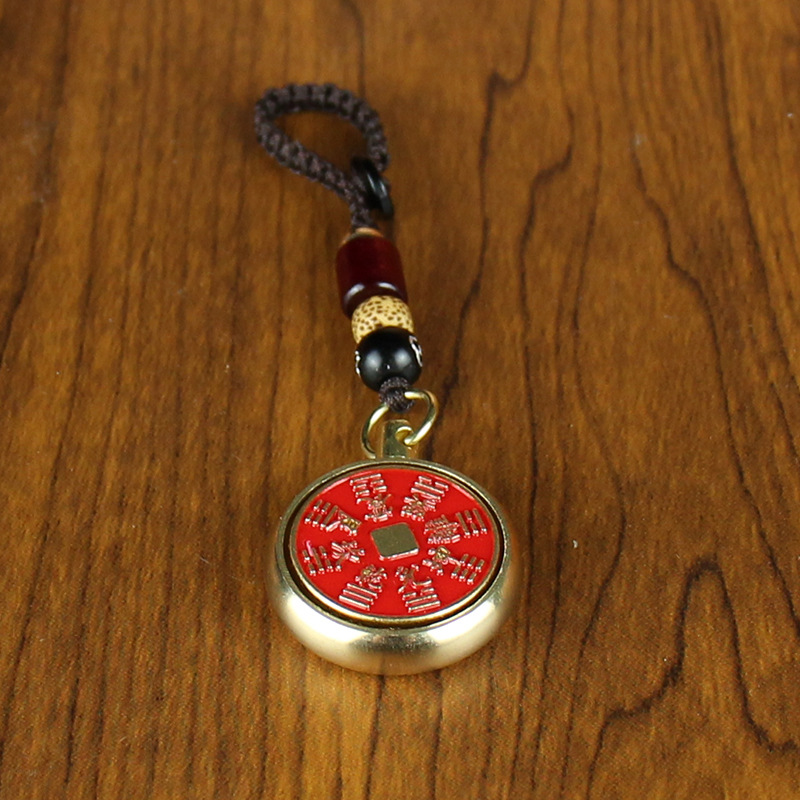 黄铜山鬼铜钱钥匙扣挂件男士包包挂件纯铜红油乾门八卦转转挂饰