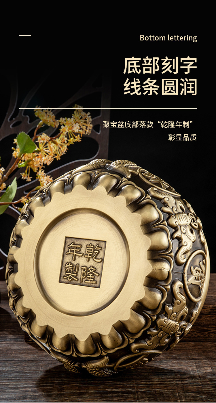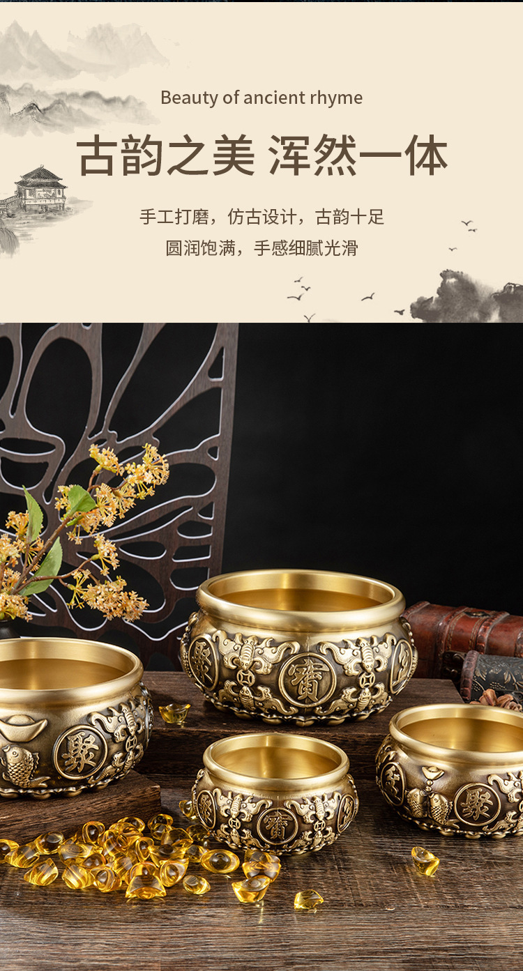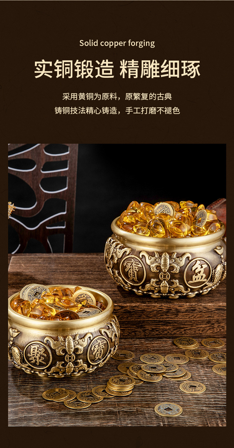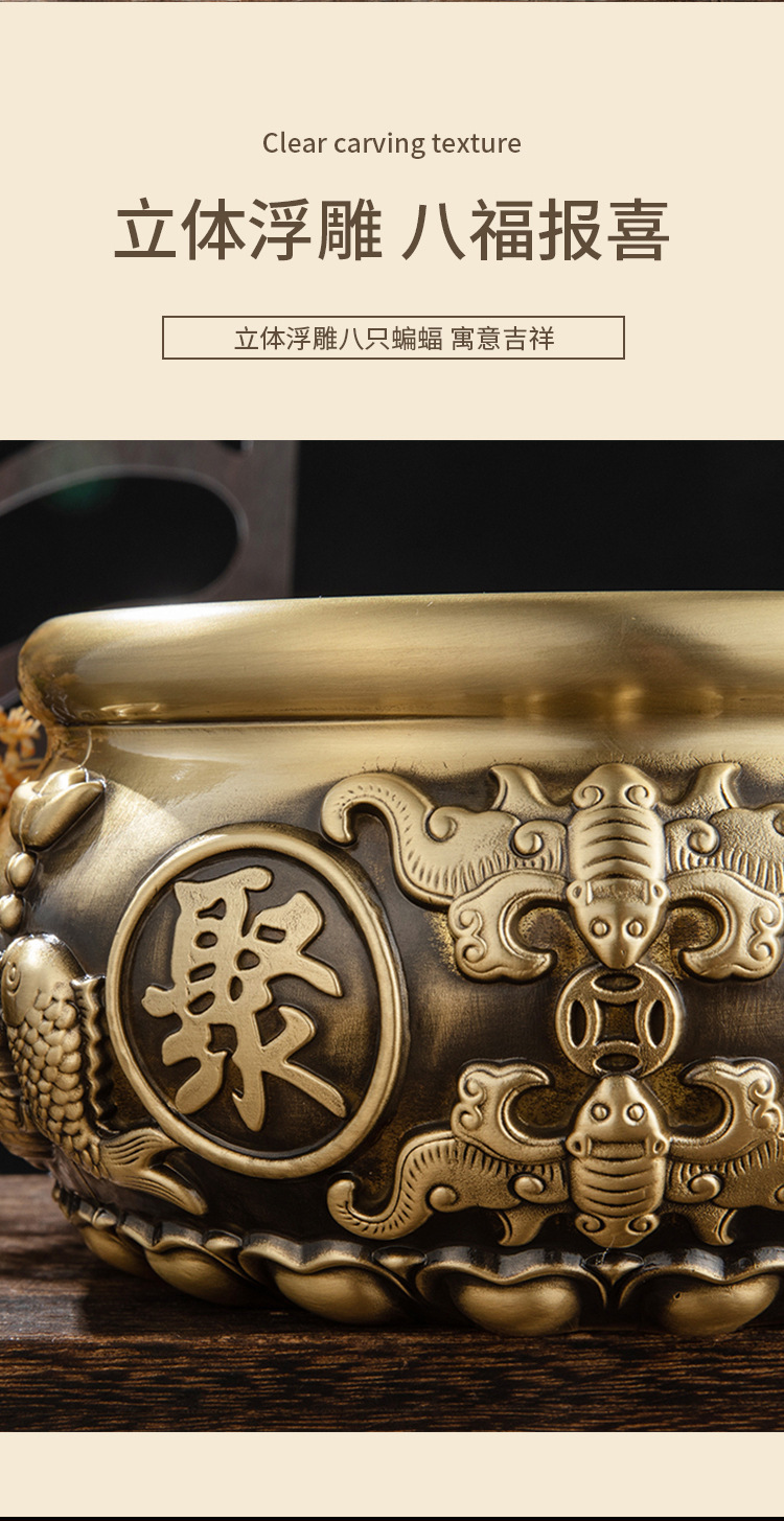 纯铜聚宝盆客厅玄关工艺品黄铜米缸狮头聚宝盆铜缸摆件存钱罐