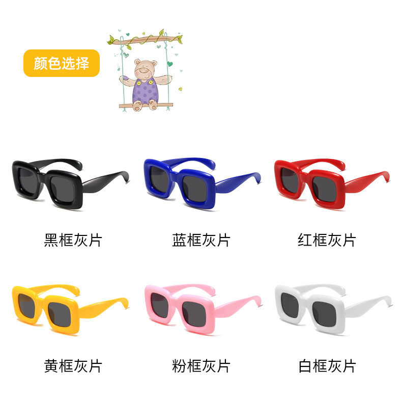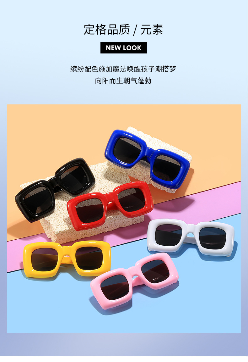 2024新款儿童搞怪趣味可爱方形墨镜男女孩可爱萌娃眼镜街拍太阳镜
