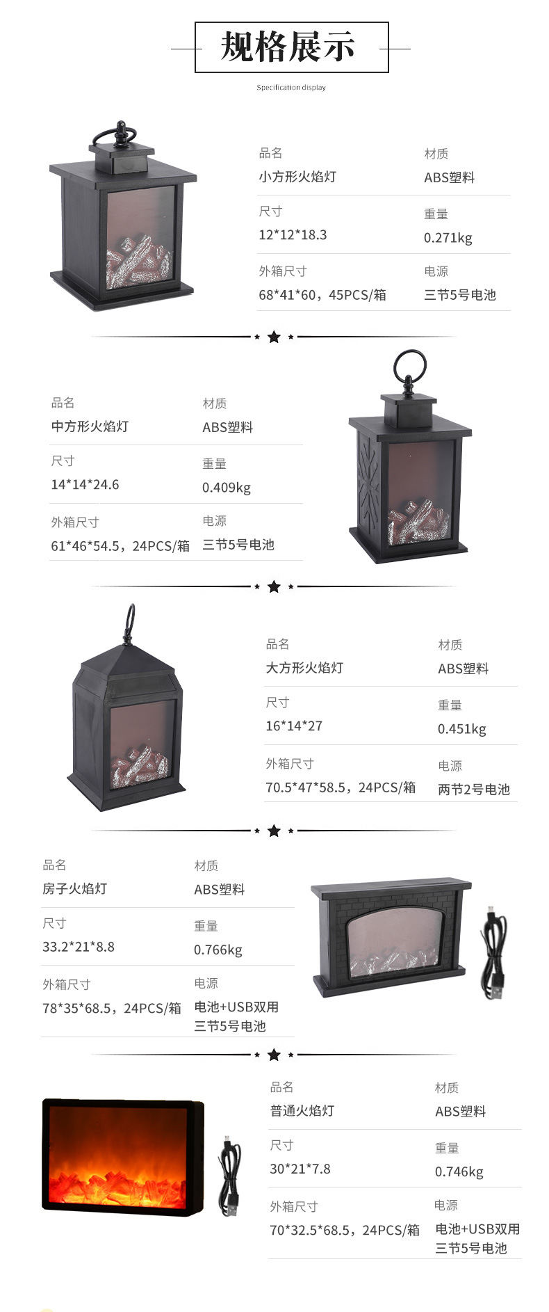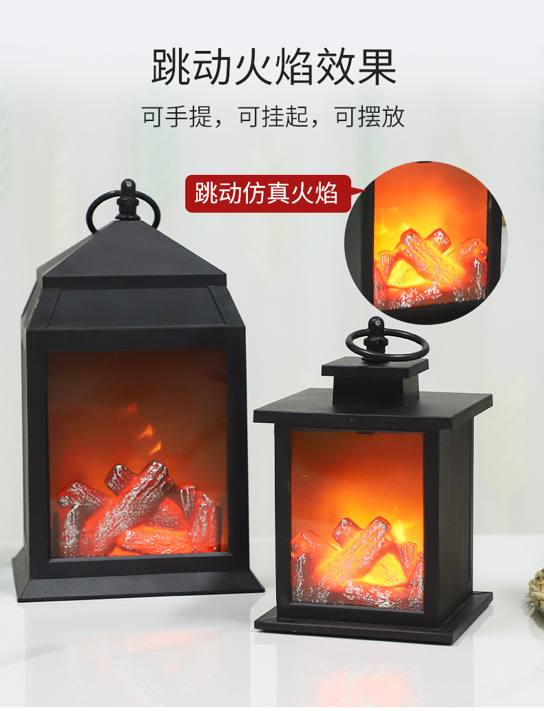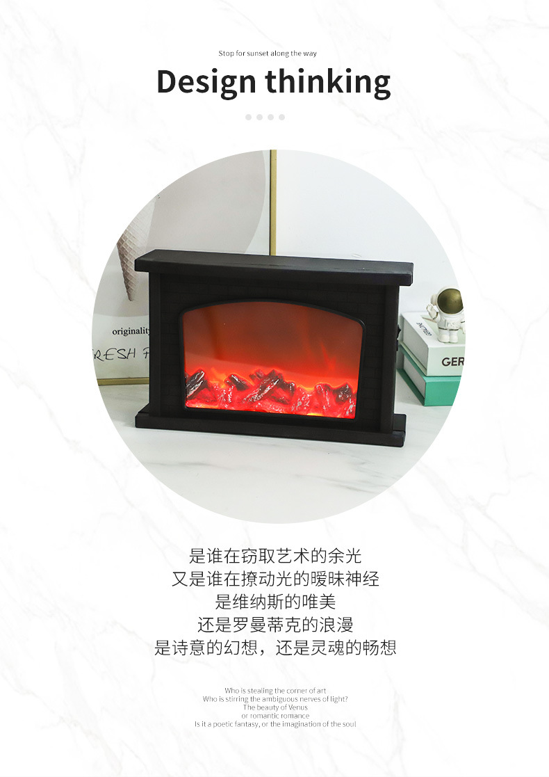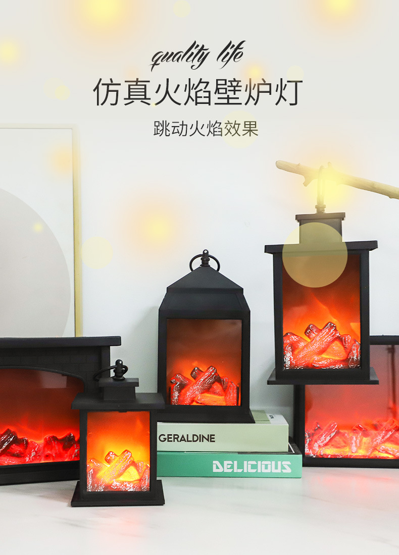 跨境新品仿真火焰灯万圣节布置摆件小夜灯北欧风复古壁炉火焰灯箱