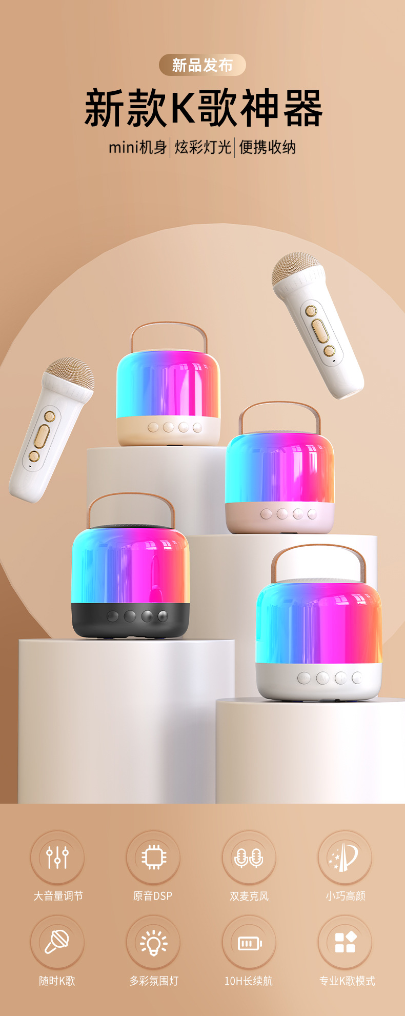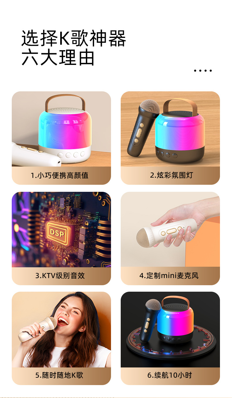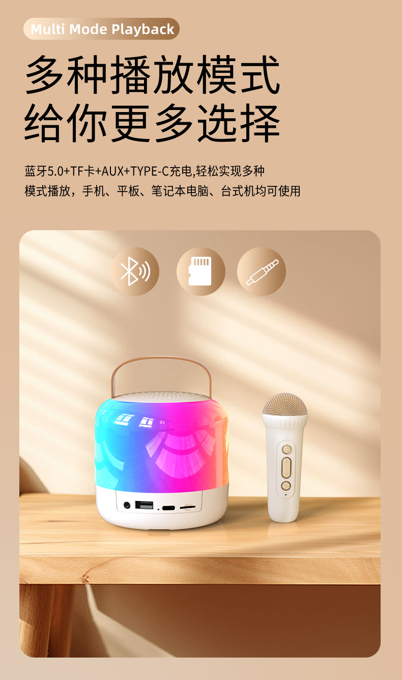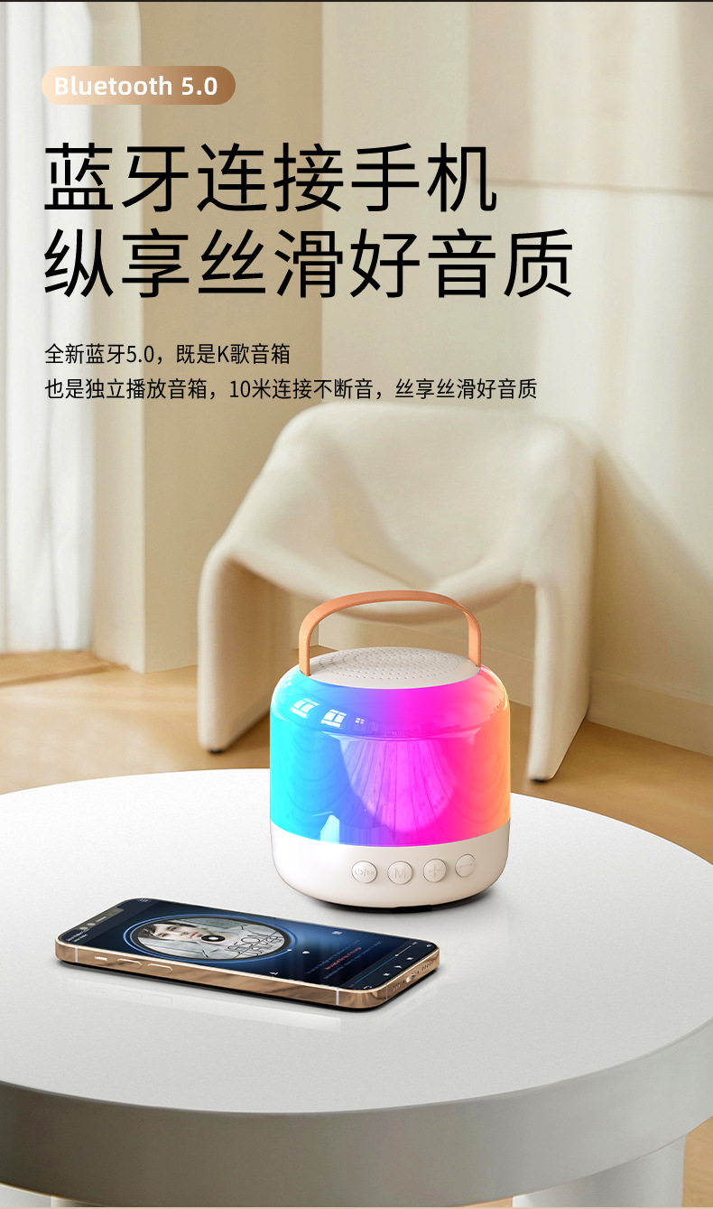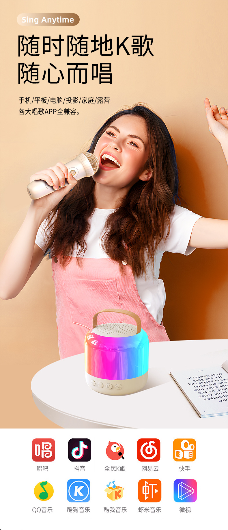 新款Y6蓝牙音箱户外家庭便携K歌话筒无线麦克风炫彩音响跨境爆款