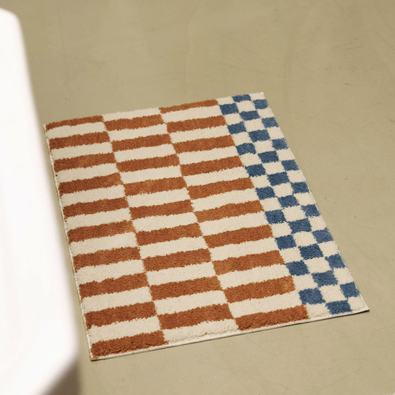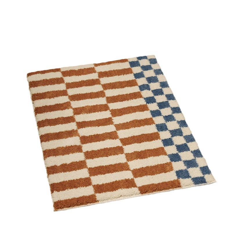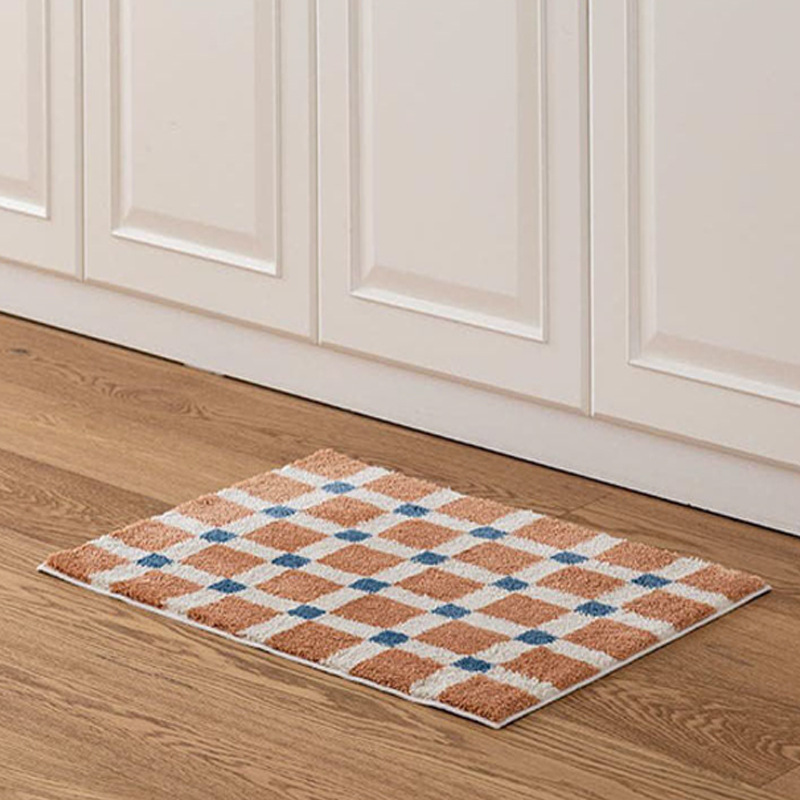 跨境韩式仿羊绒脚垫条纹格子吸水浴室地垫门口耐脏入户地垫批发