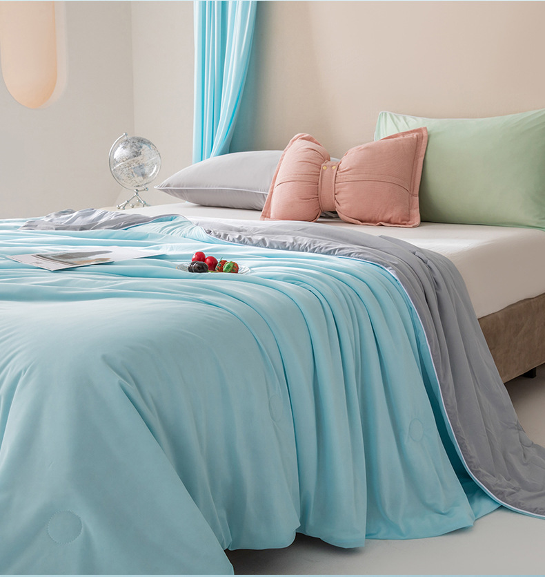 A类冰淇淋夏凉被凉感丝夏季空调被纯色夏被可水洗冰丝薄被子批发