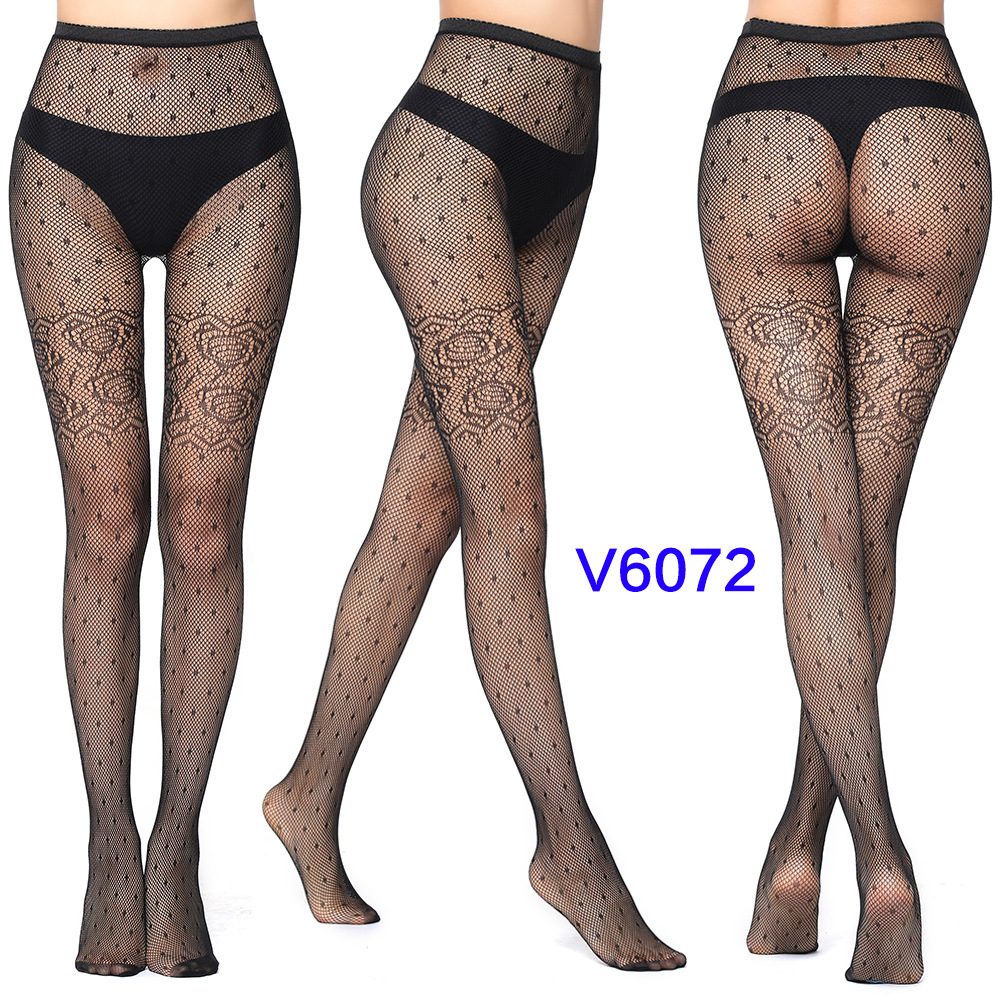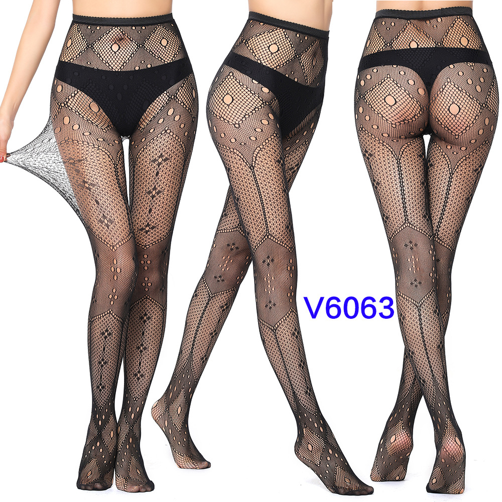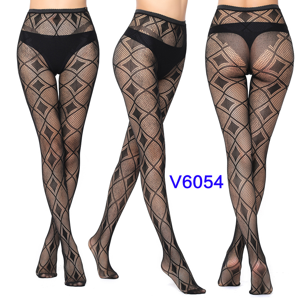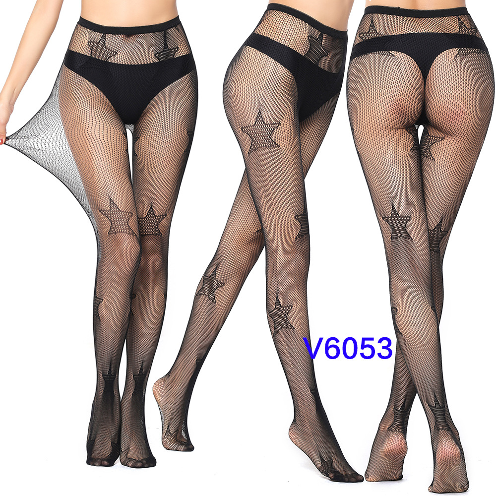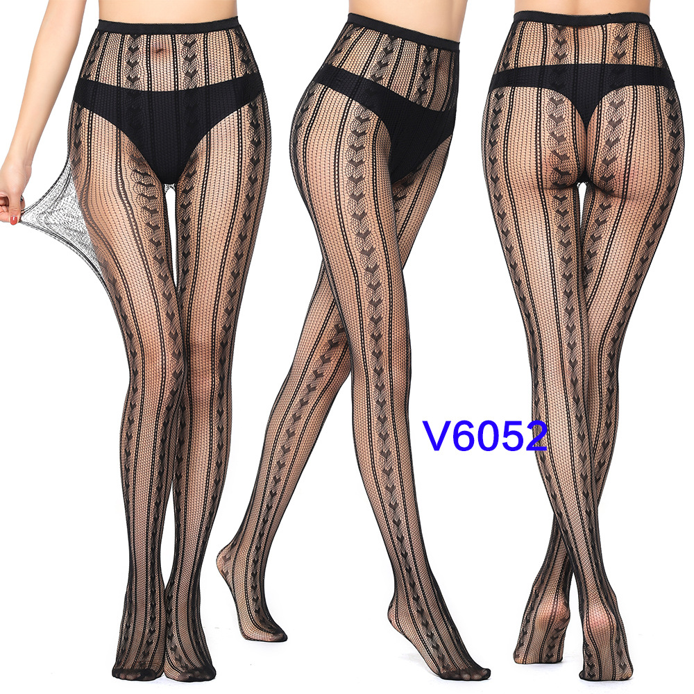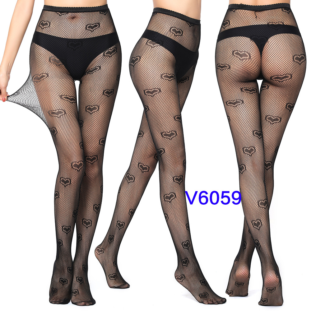 跨境新品经编无缝欧美潮流提花渔网袜点点爱心虎纹欧美网格黑丝袜