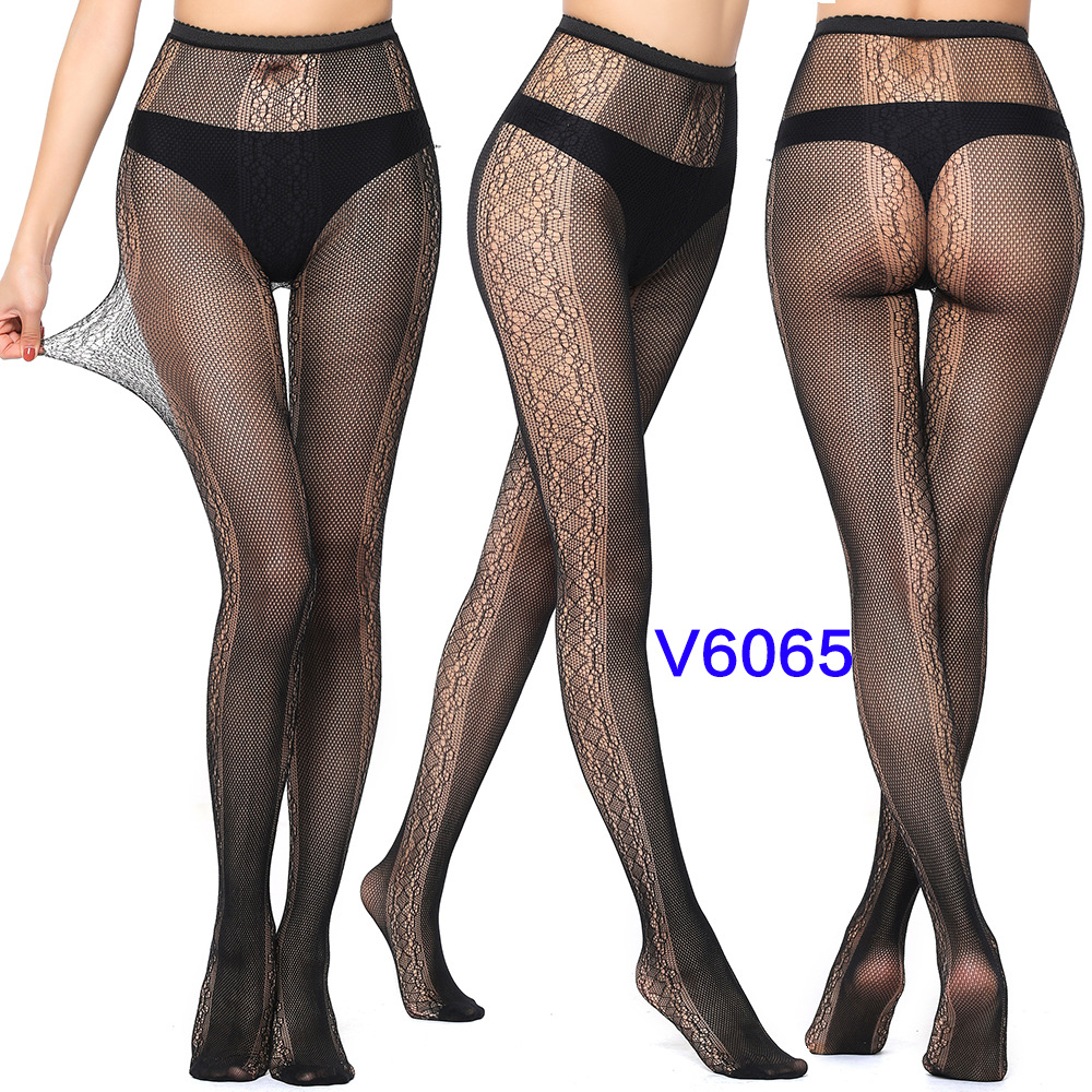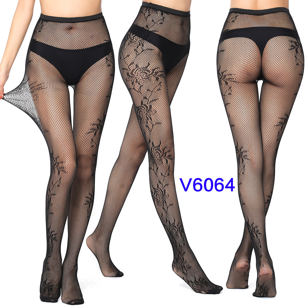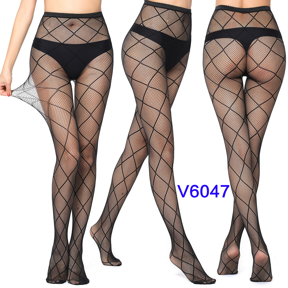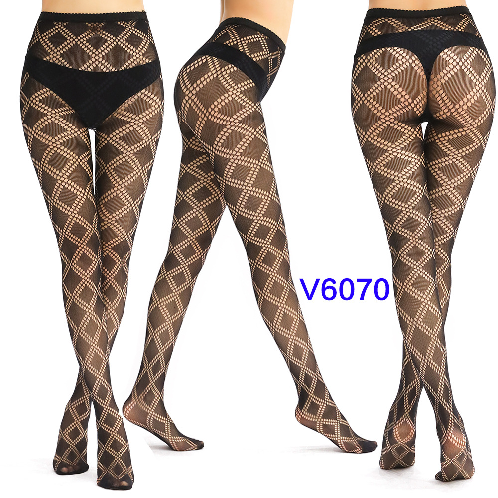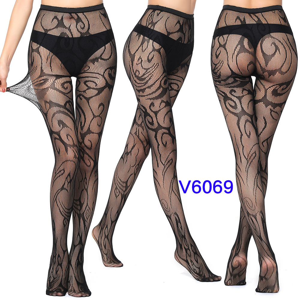 跨境新品经编无缝欧美潮流提花渔网袜点点爱心虎纹欧美网格黑丝袜