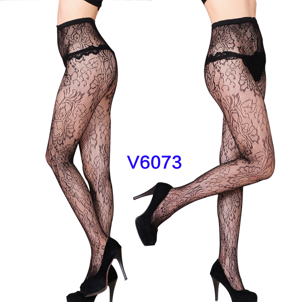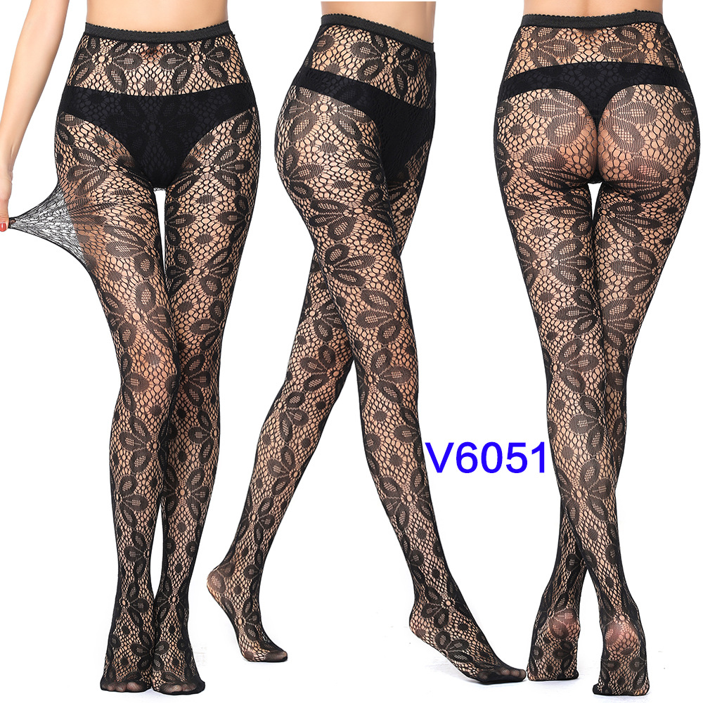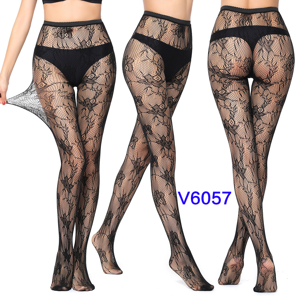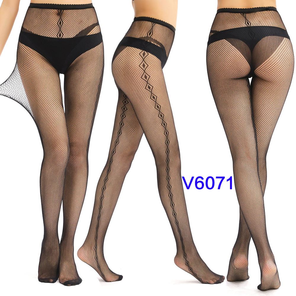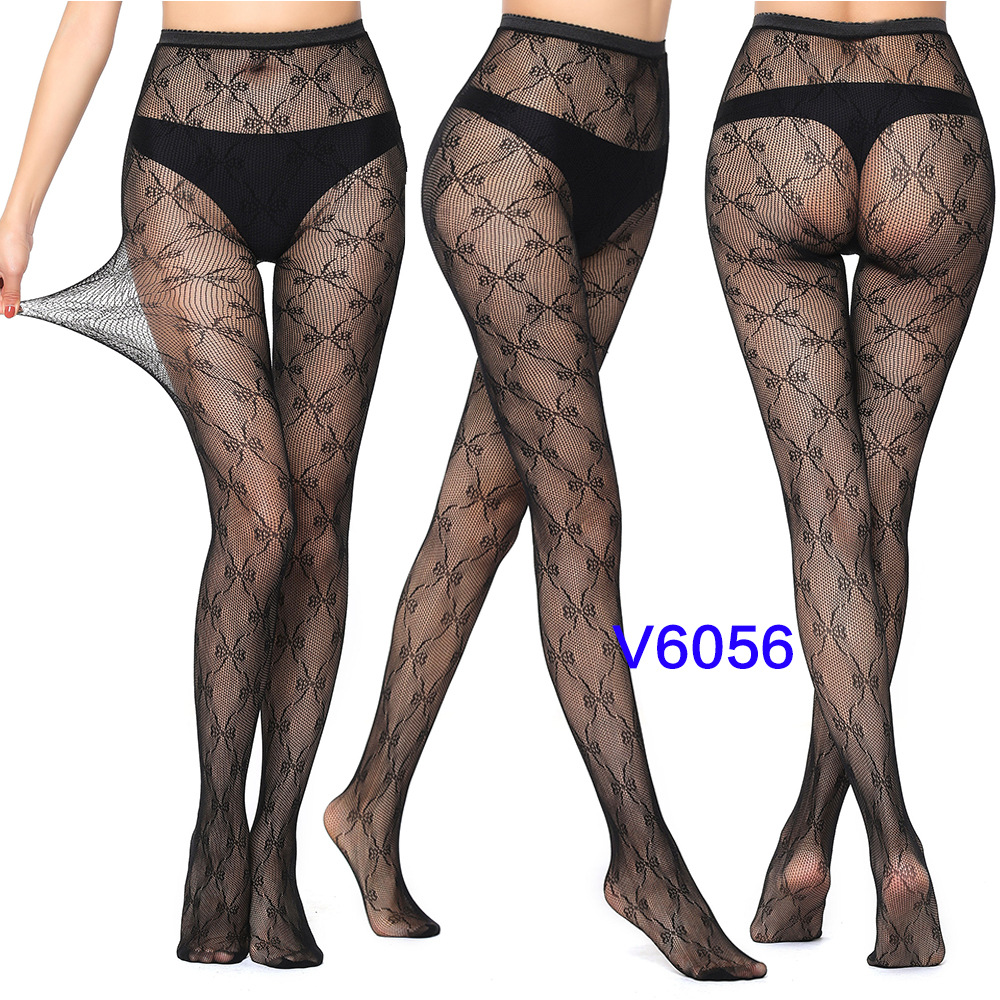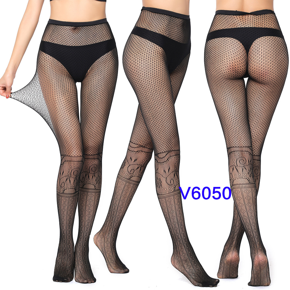 跨境新品经编无缝欧美潮流提花渔网袜点点爱心虎纹欧美网格黑丝袜