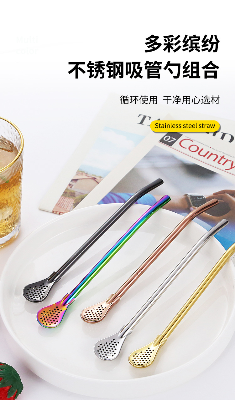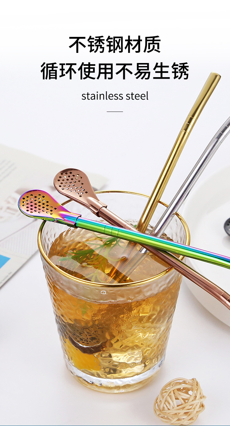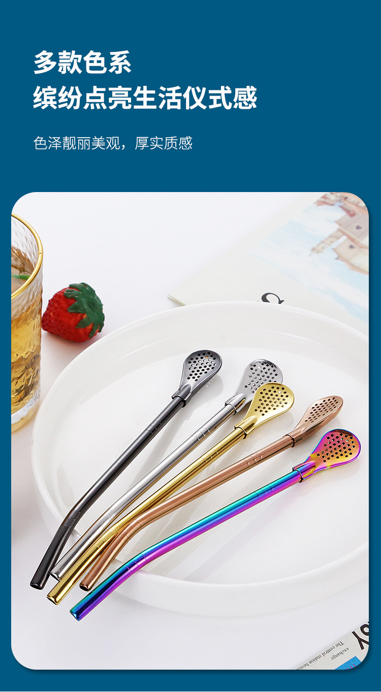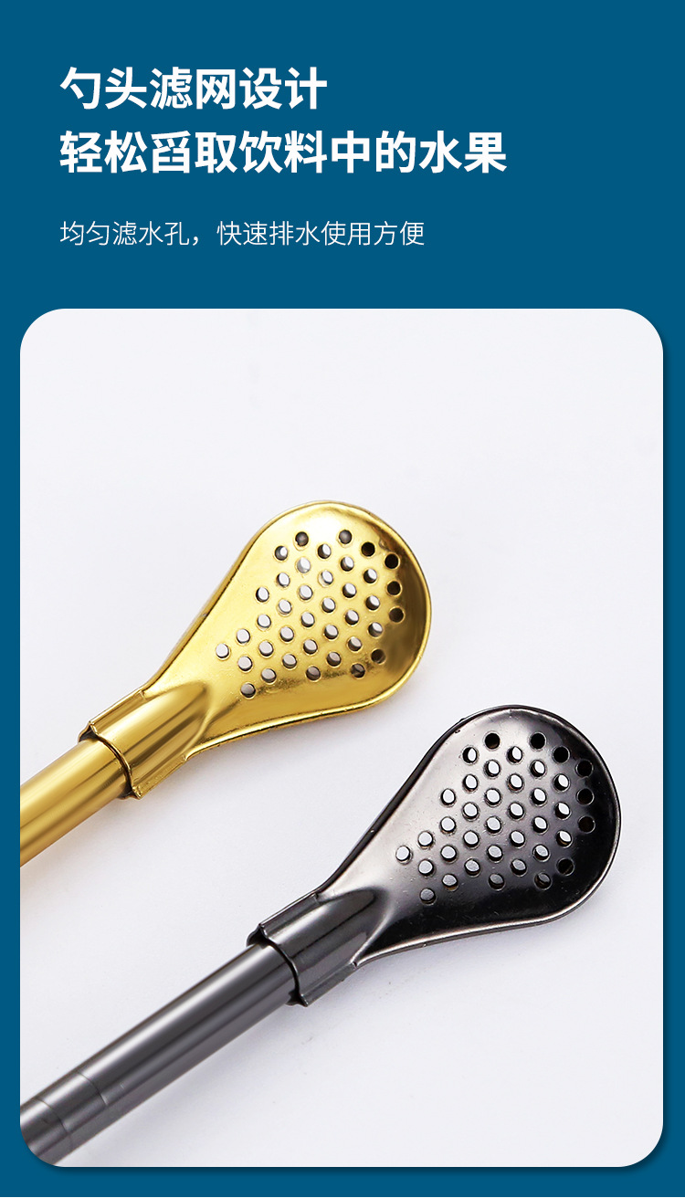 304可拆卸吸管漏勺茶漏果汁残渣勺搅拌勺二合一吸管勺马黛茶吸管