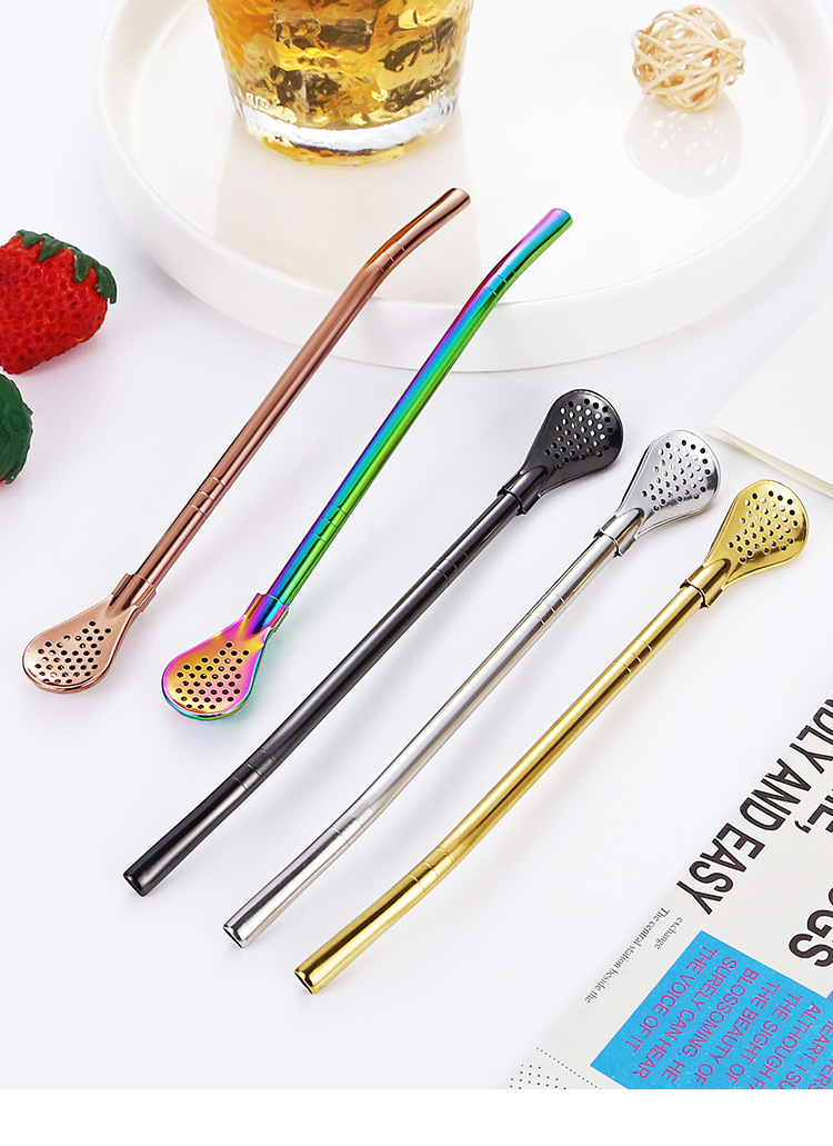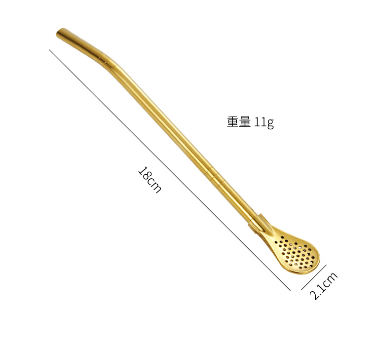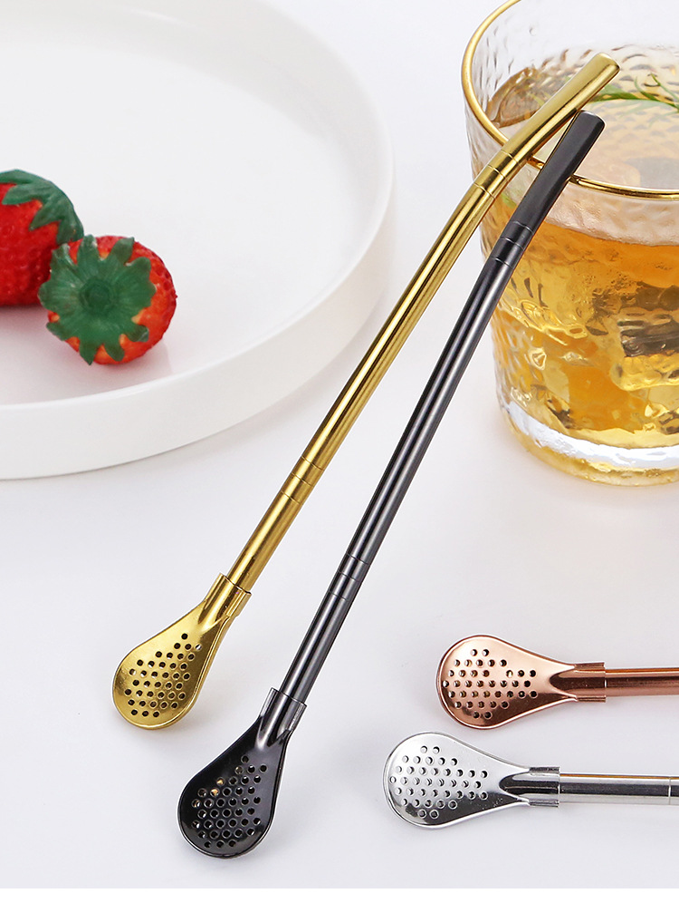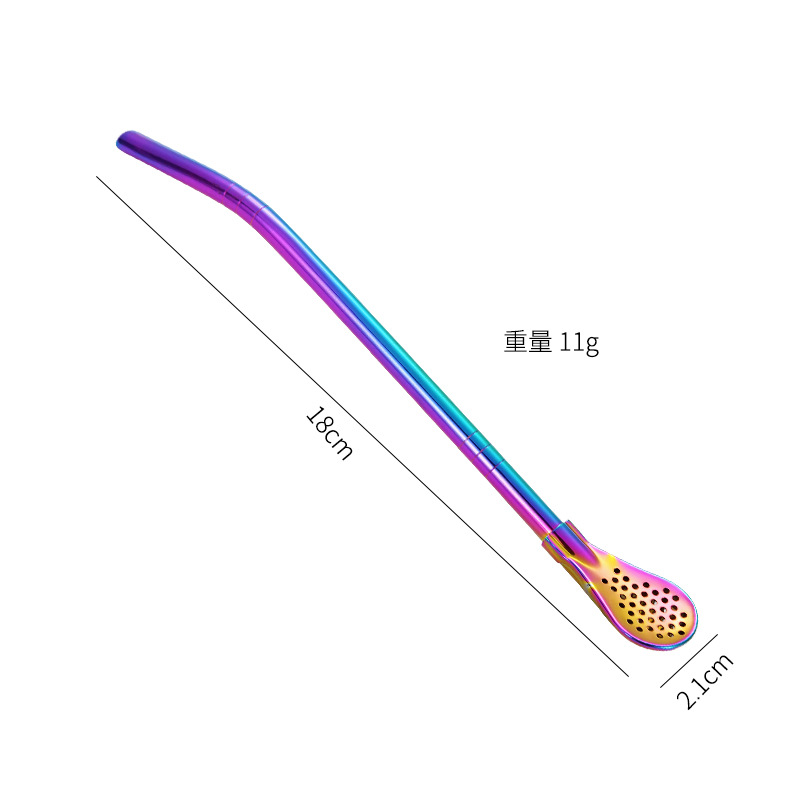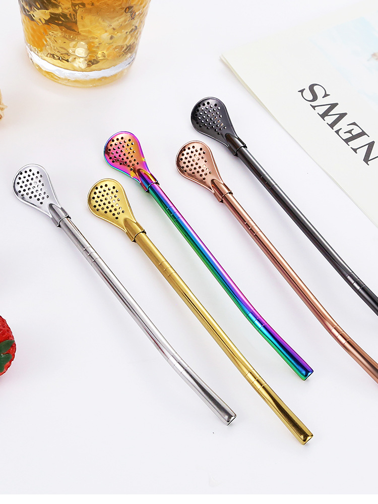 304可拆卸吸管漏勺茶漏果汁残渣勺搅拌勺二合一吸管勺马黛茶吸管