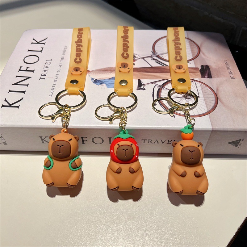 创意卡通小水豚钥匙扣可爱卡皮巴拉乌龟钥匙链水豚男女包包挂件