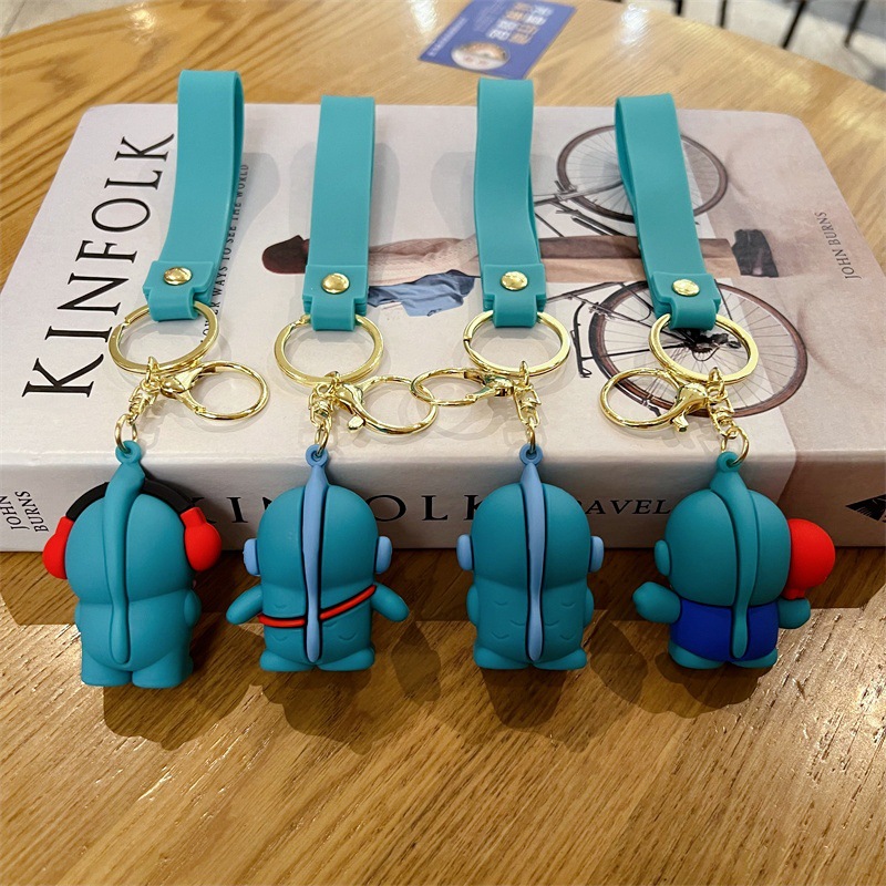 创意卡通青色小丑鱼钥匙扣可爱变装大嘴丑鱼钥匙链男女包包挂件