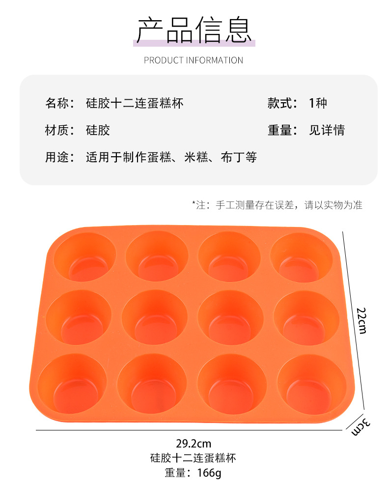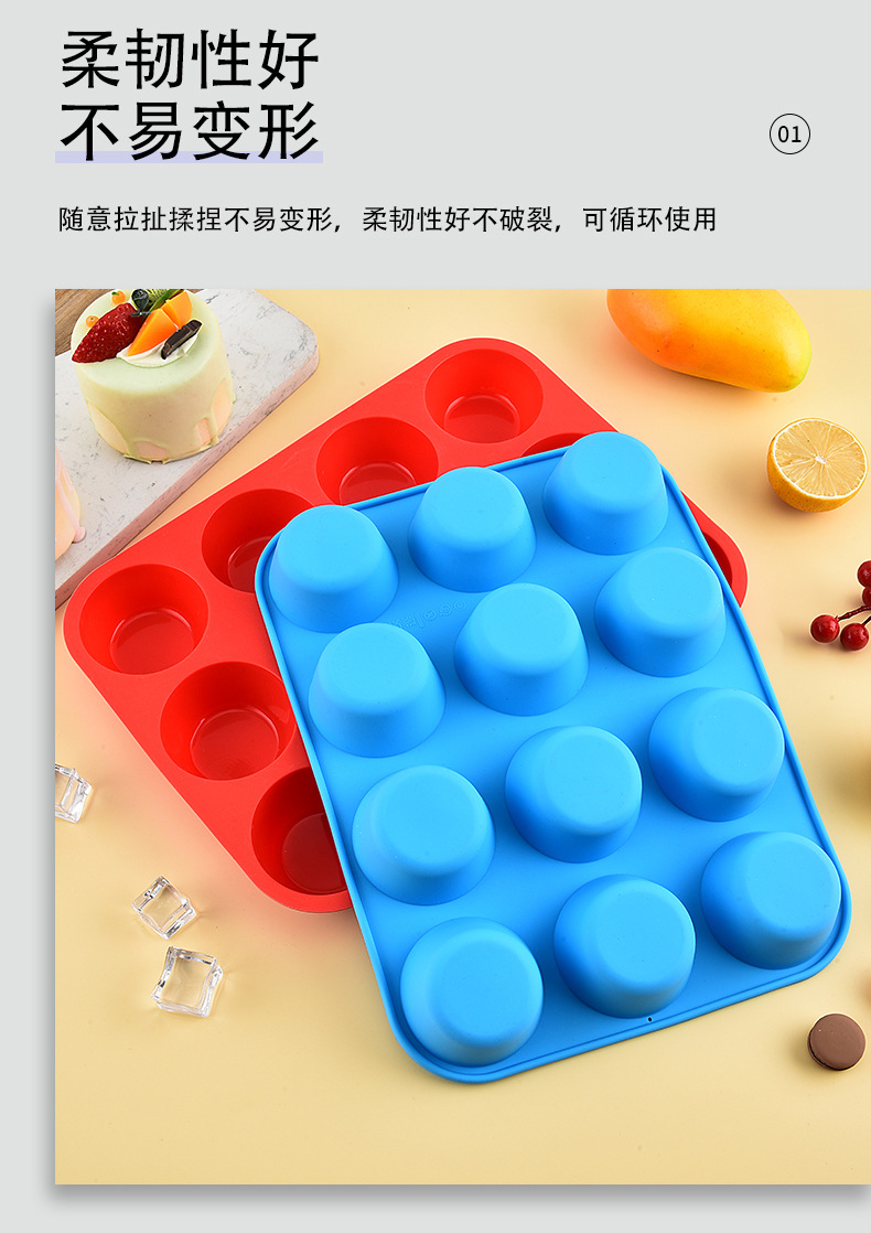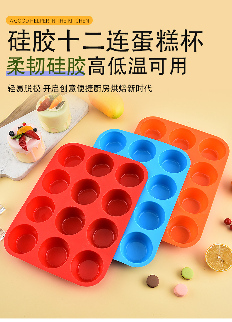 12连硅胶模具马芬杯烘焙工具硅胶烤盘12连硅胶马芬杯