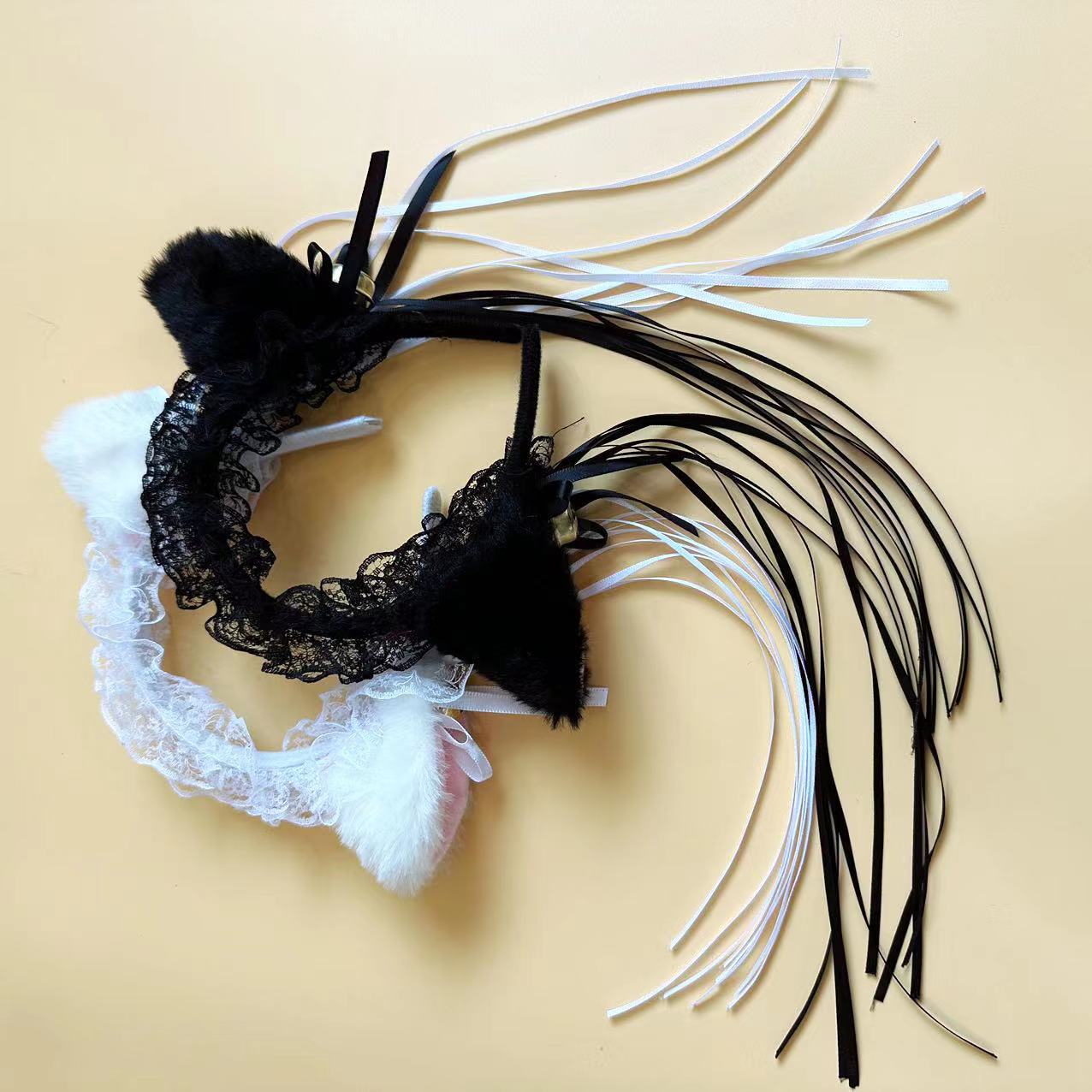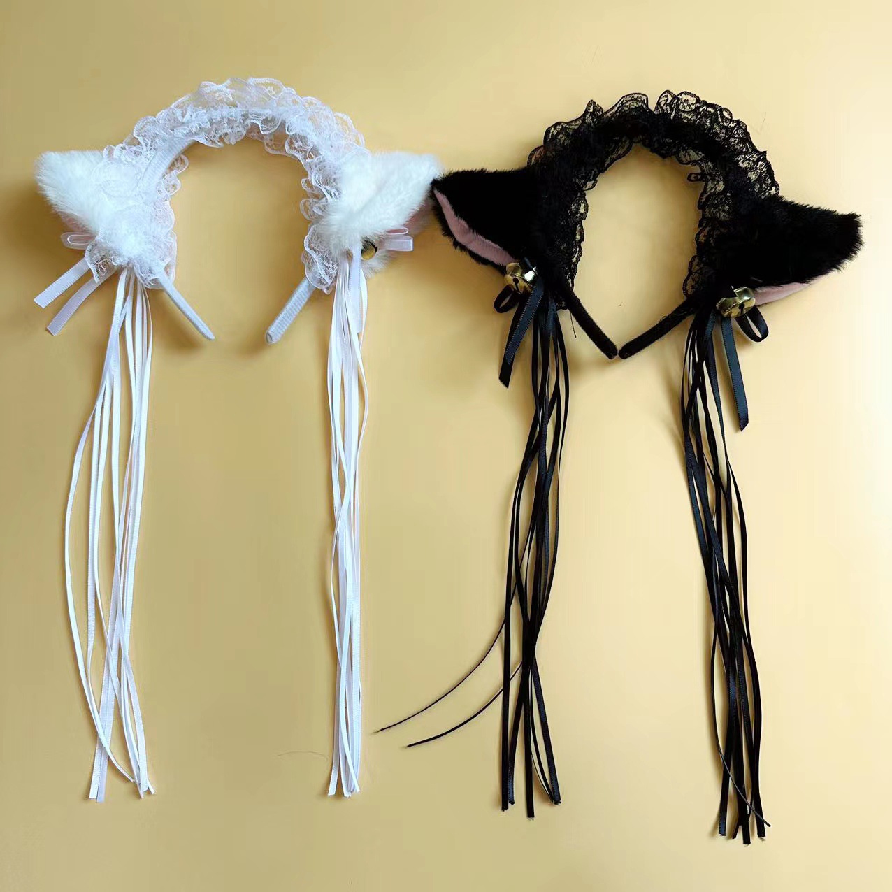 二次元cosplay洛丽塔发箍铃铛蕾丝卡通猫耳朵头饰可爱发饰批发