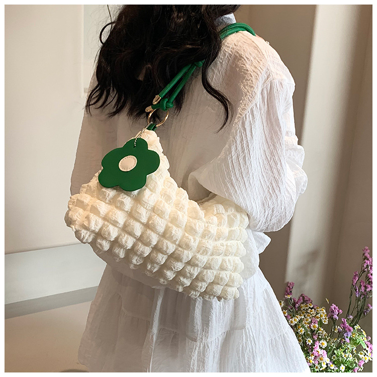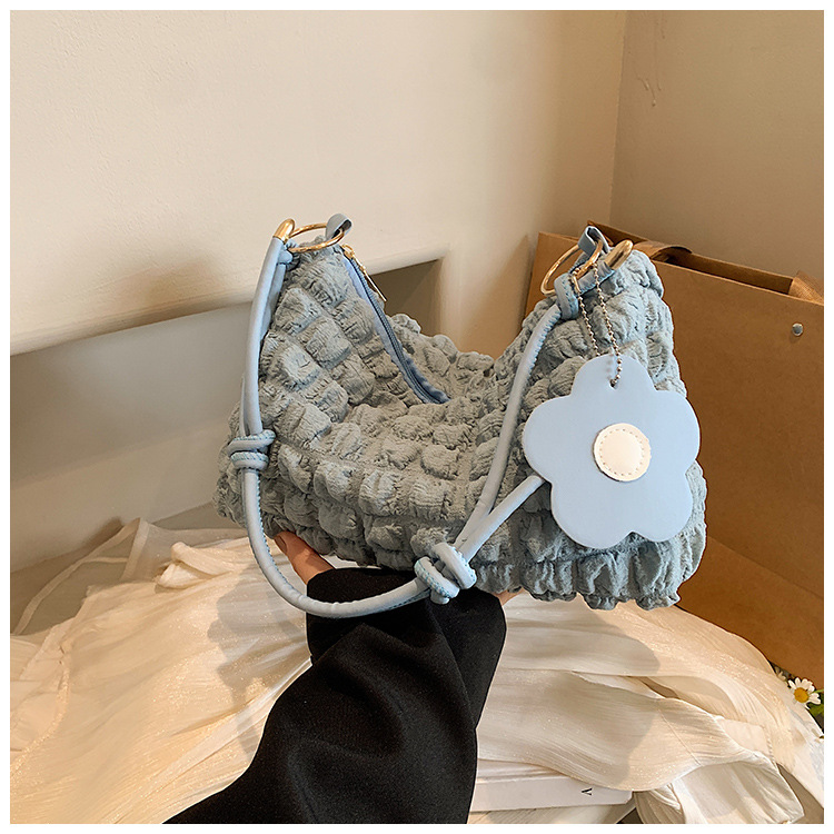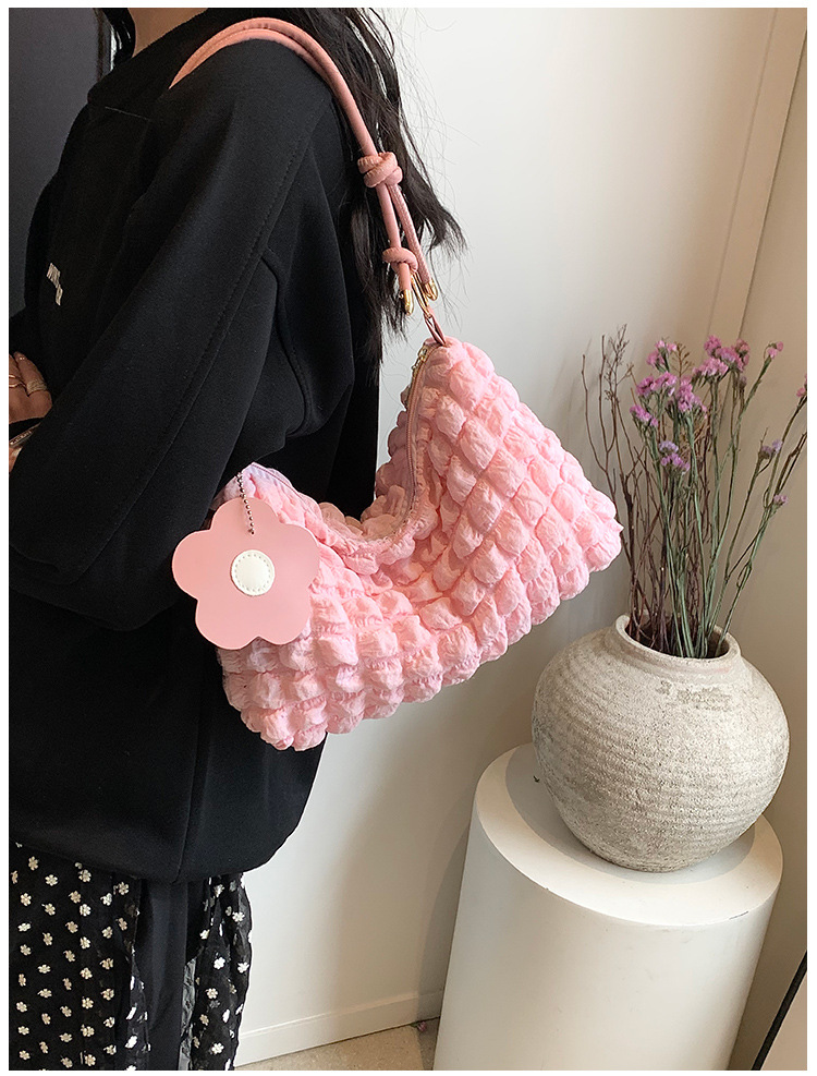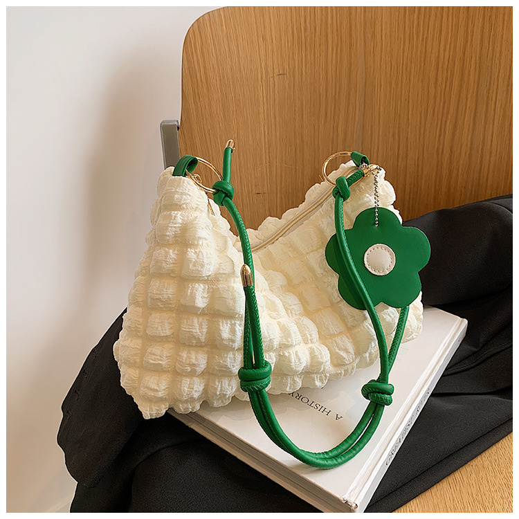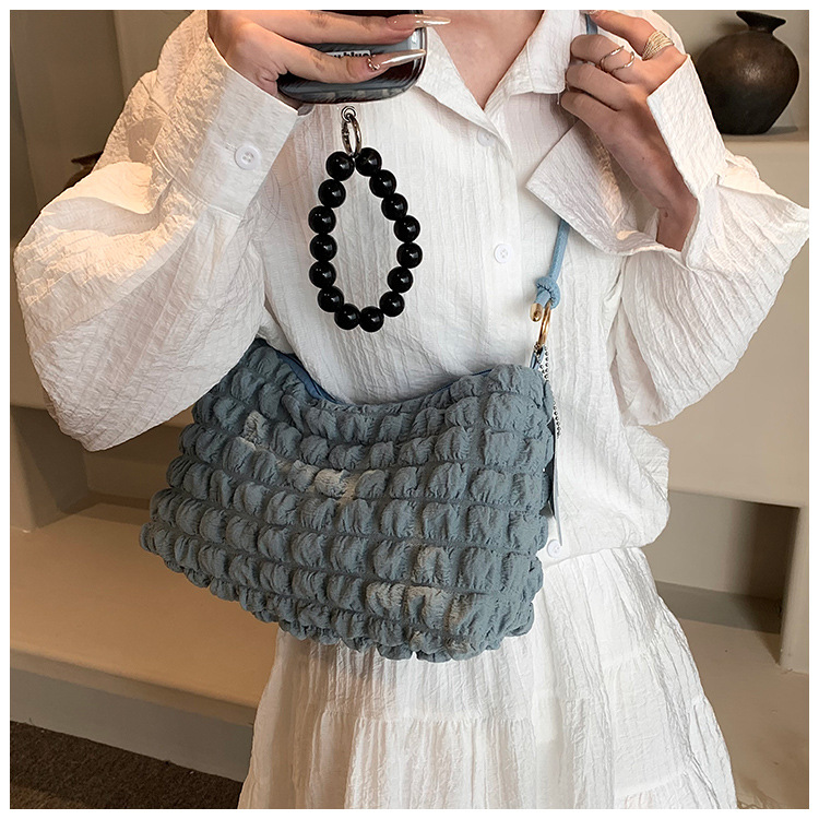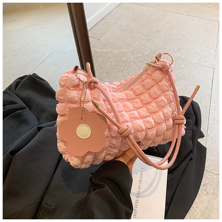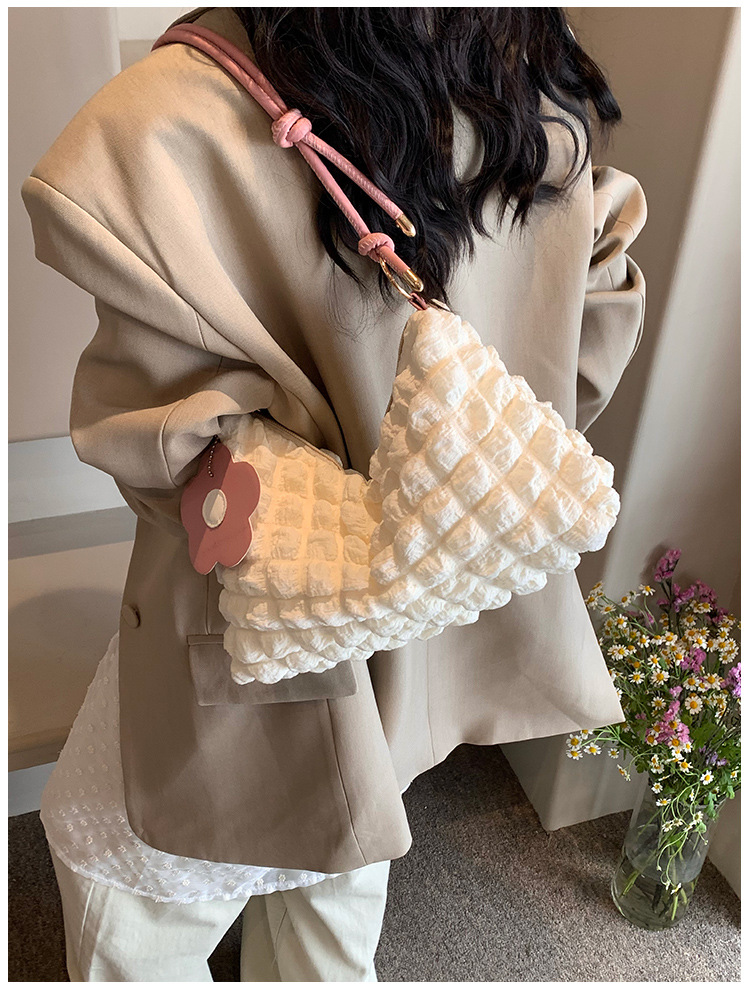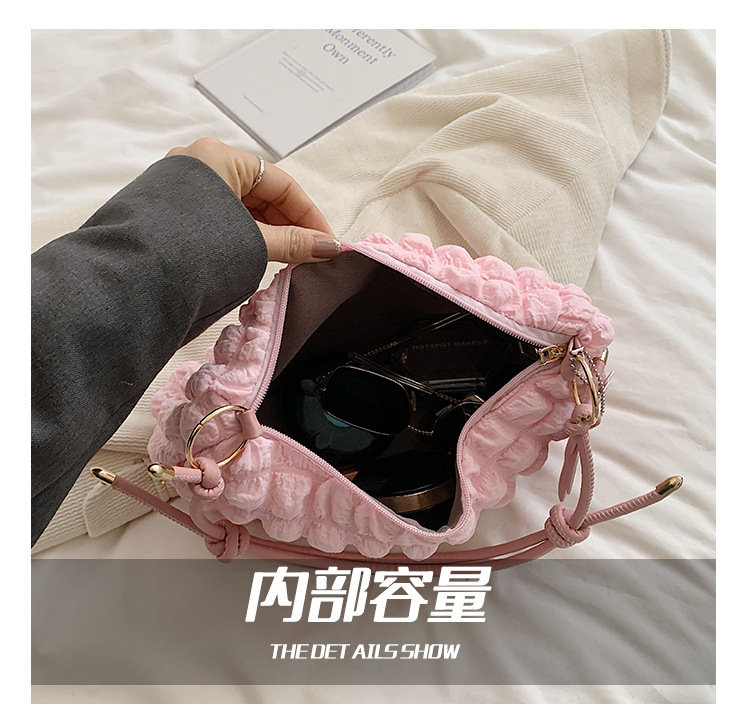 褶皱大容量时尚韩版纯色小清新打结肩带小包包女2024新款斜挎包女
