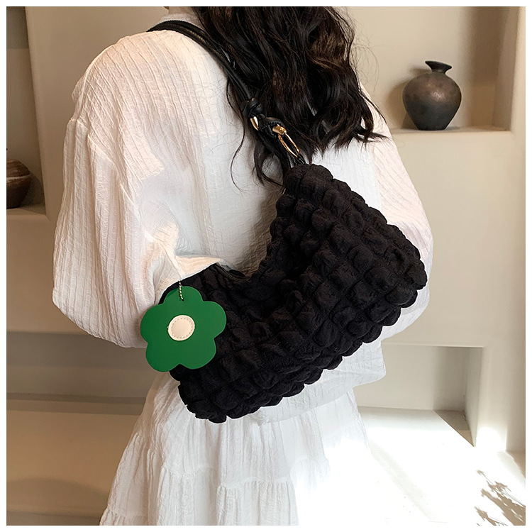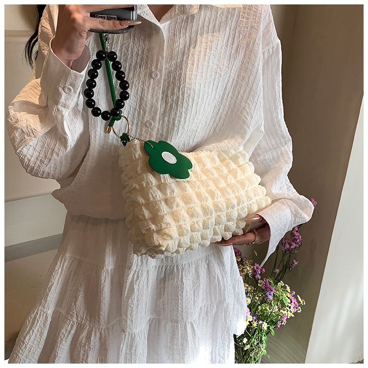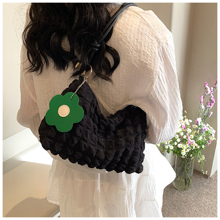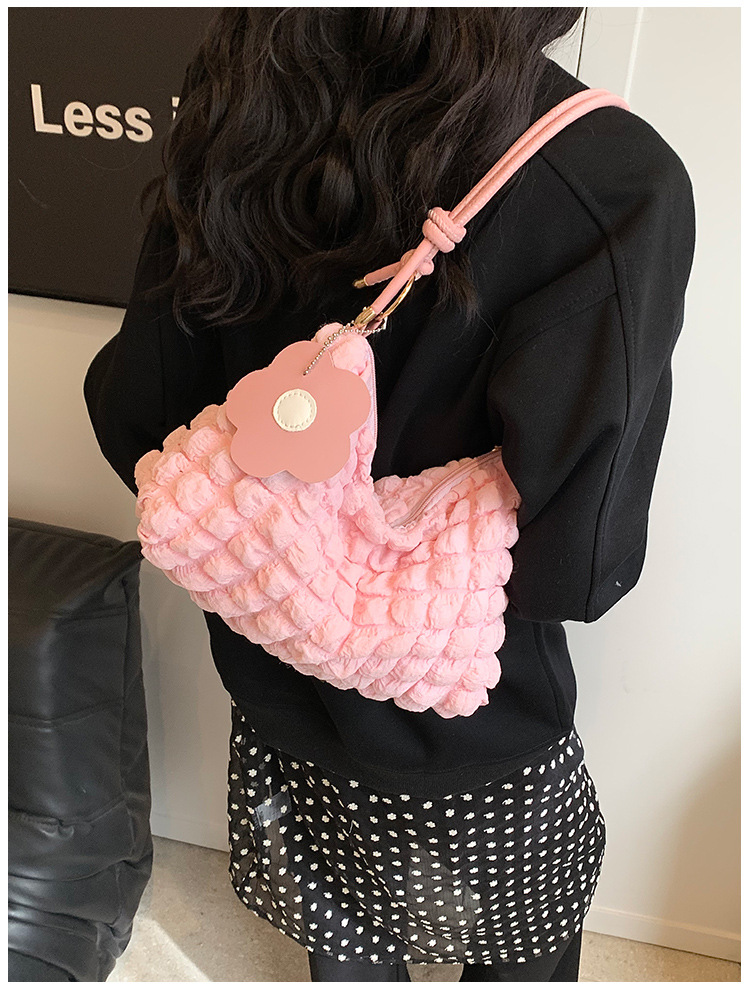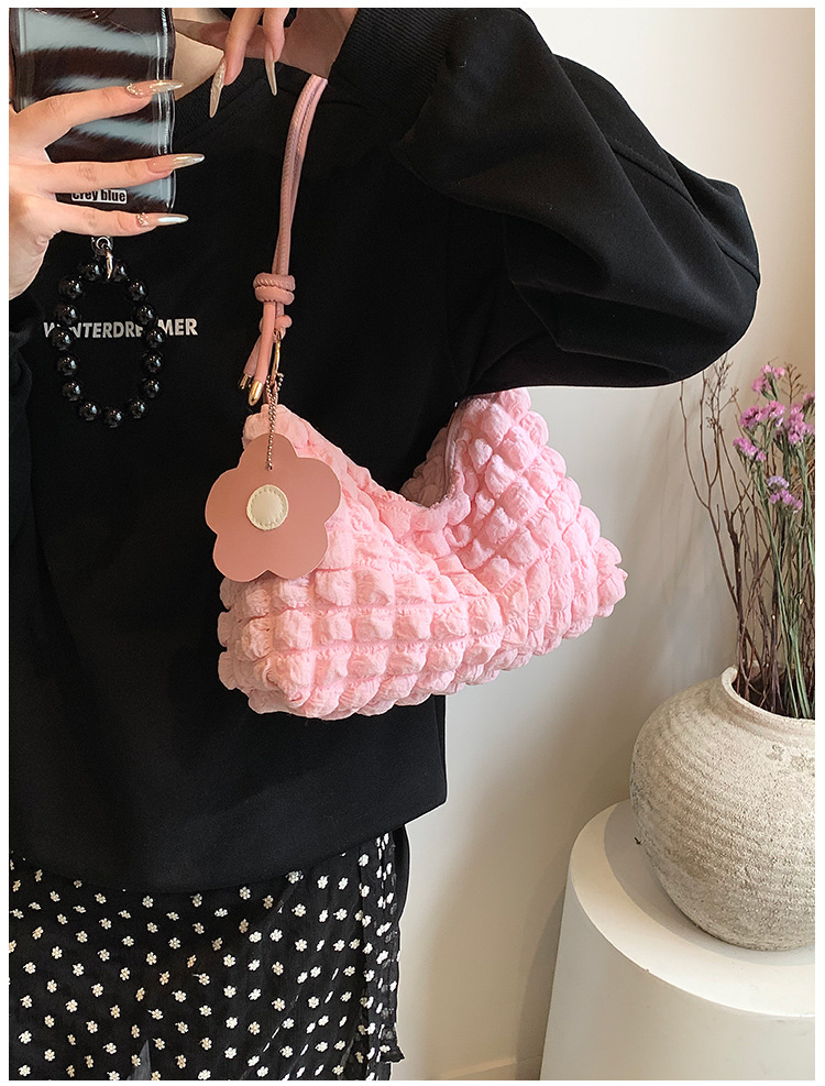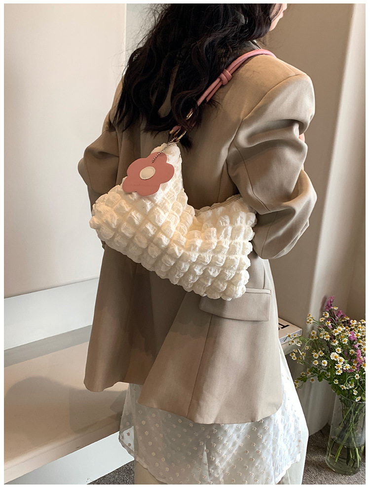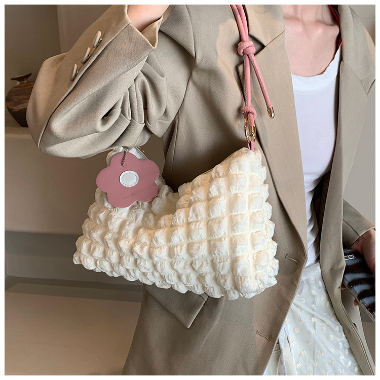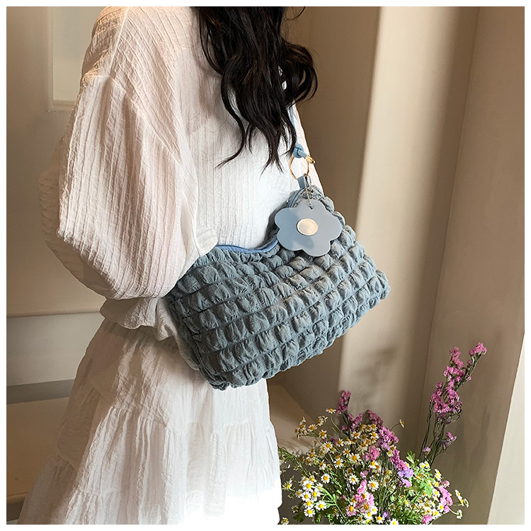 褶皱大容量时尚韩版纯色小清新打结肩带小包包女2024新款斜挎包女