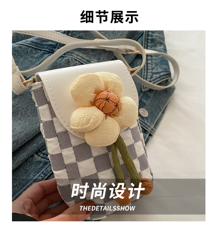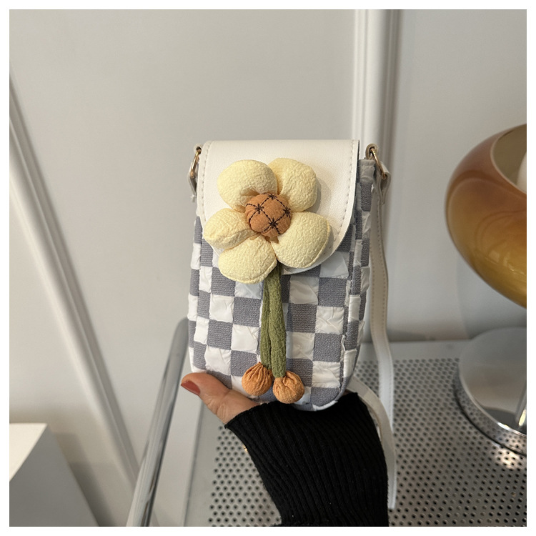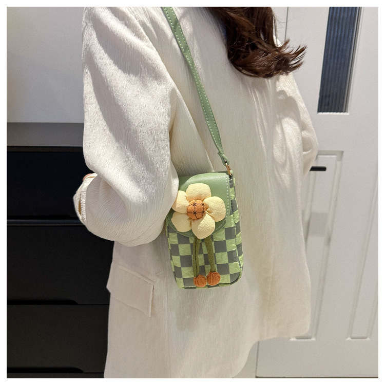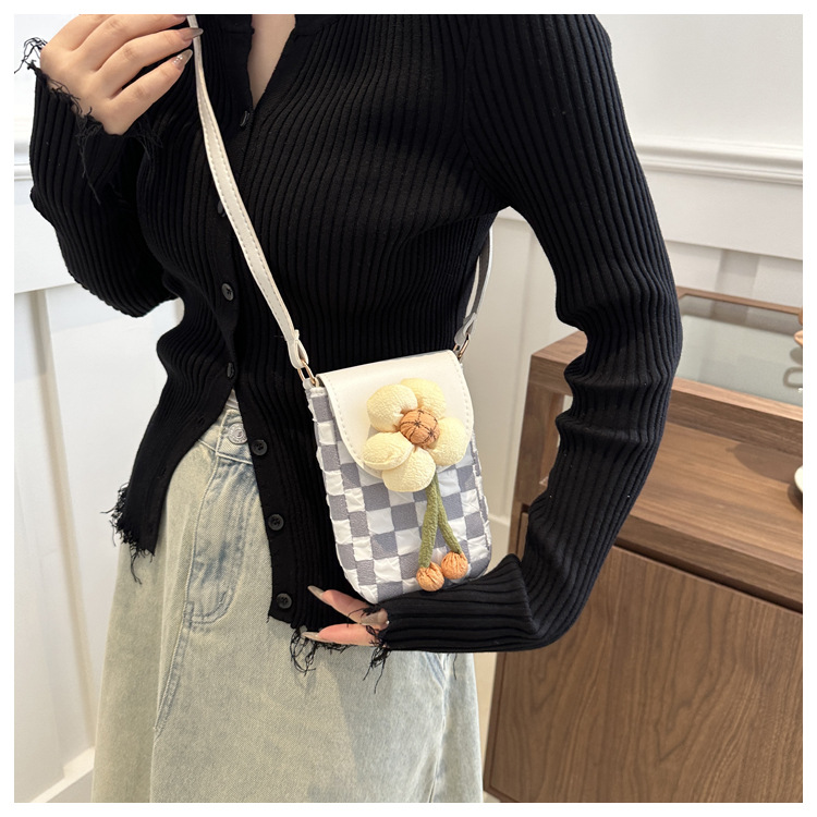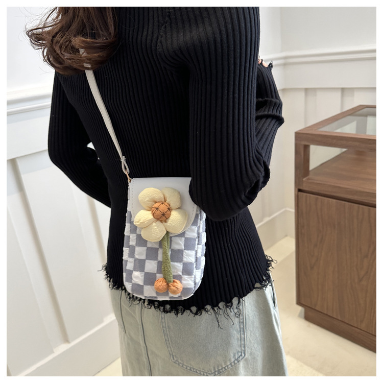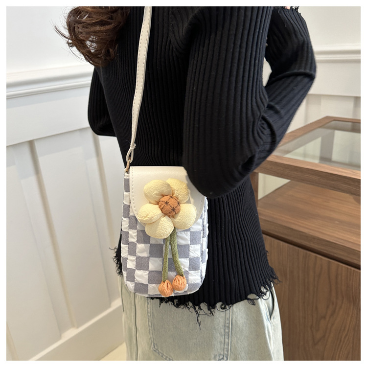 洋气简约时尚格纹花朵小包包女2024春季新款百搭ins斜挎包手机包