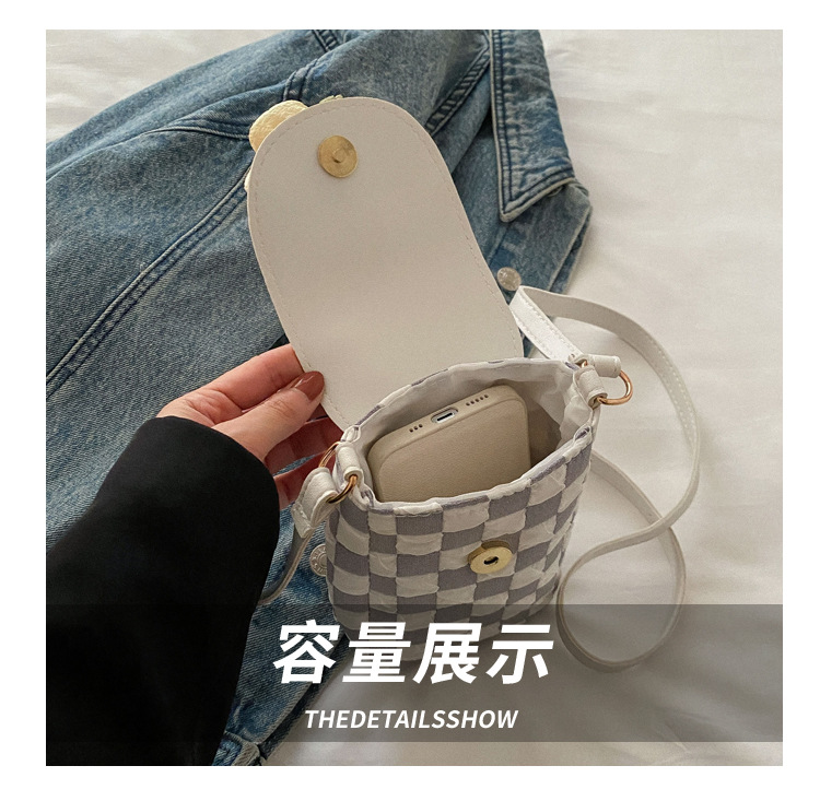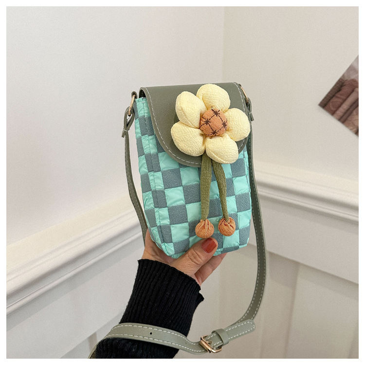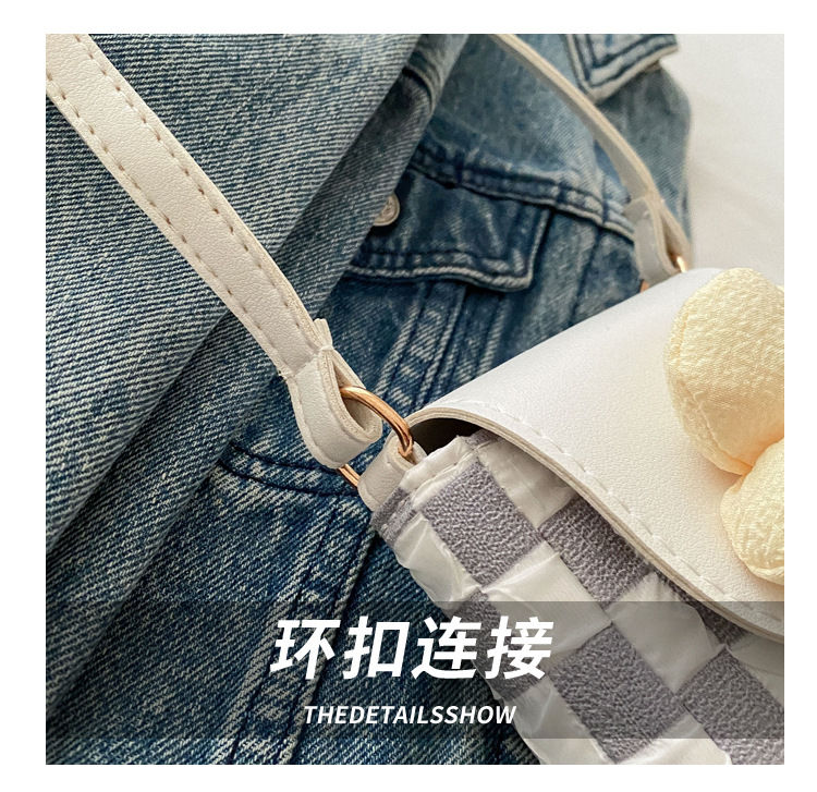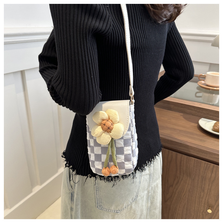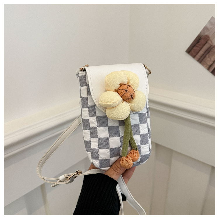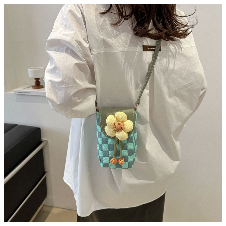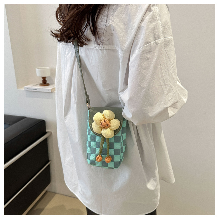 洋气简约时尚格纹花朵小包包女2024春季新款百搭ins斜挎包手机包