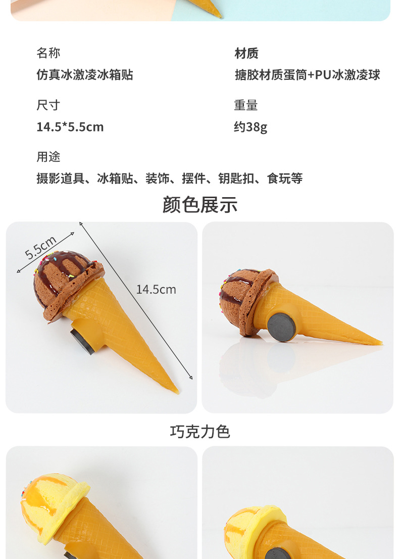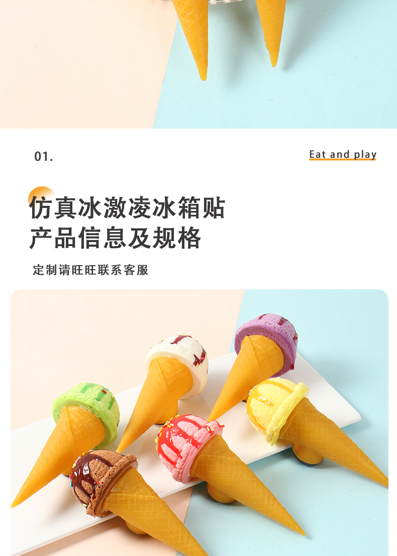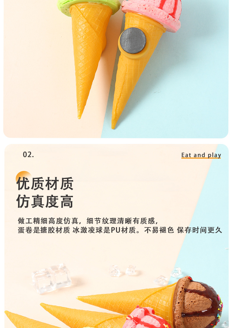 仿真脆筒冰淇淋冰箱贴创意家居冰箱装饰PU仿真奶油蛋筒
