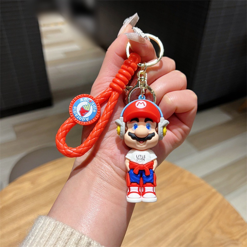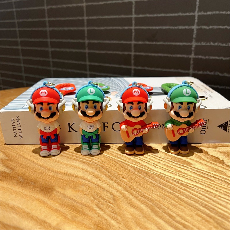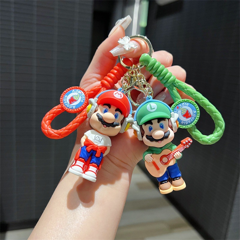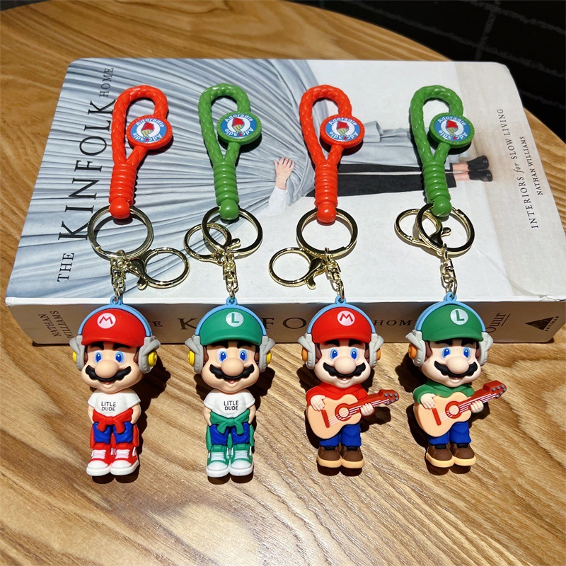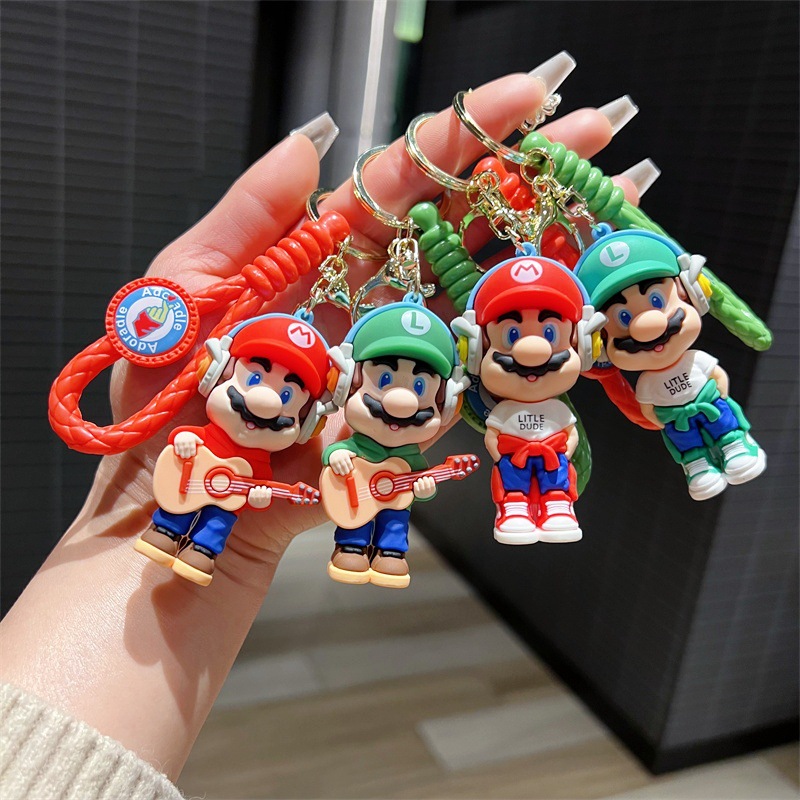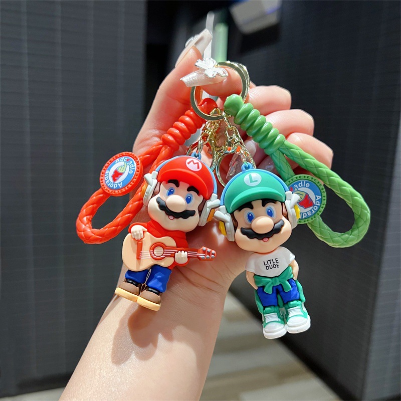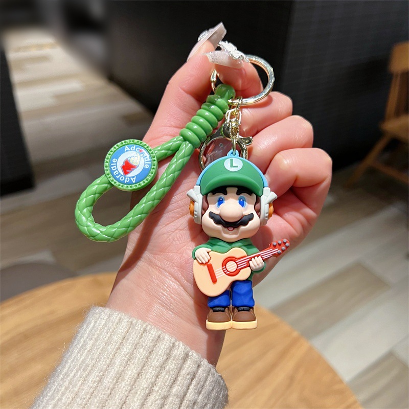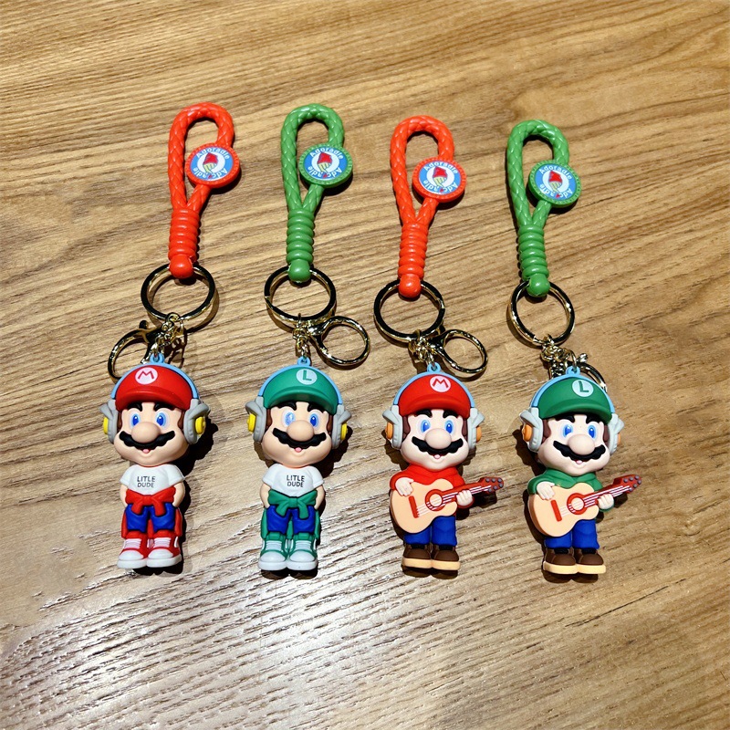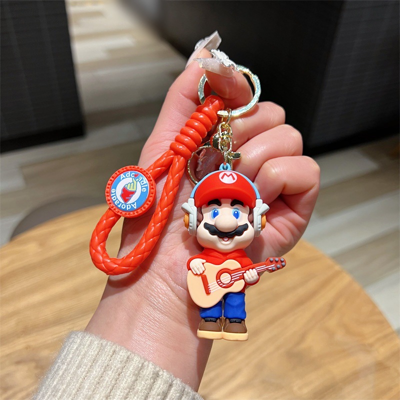 创意卡通吉他马里奥钥匙扣可爱音乐超级玛丽奥钥匙链男女包包挂件