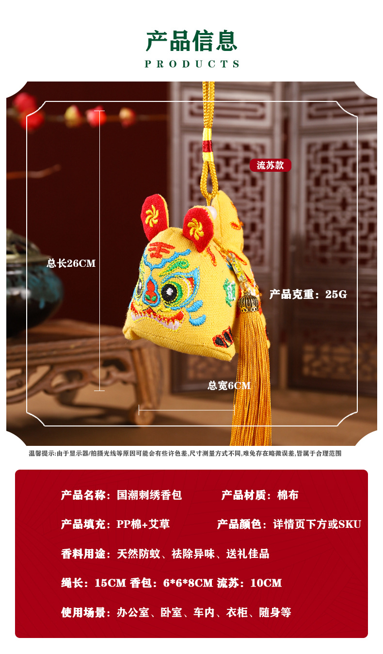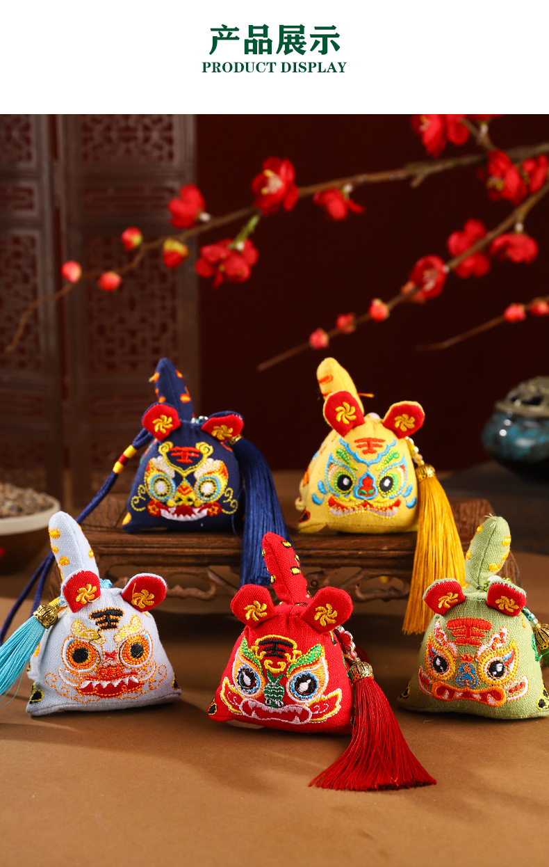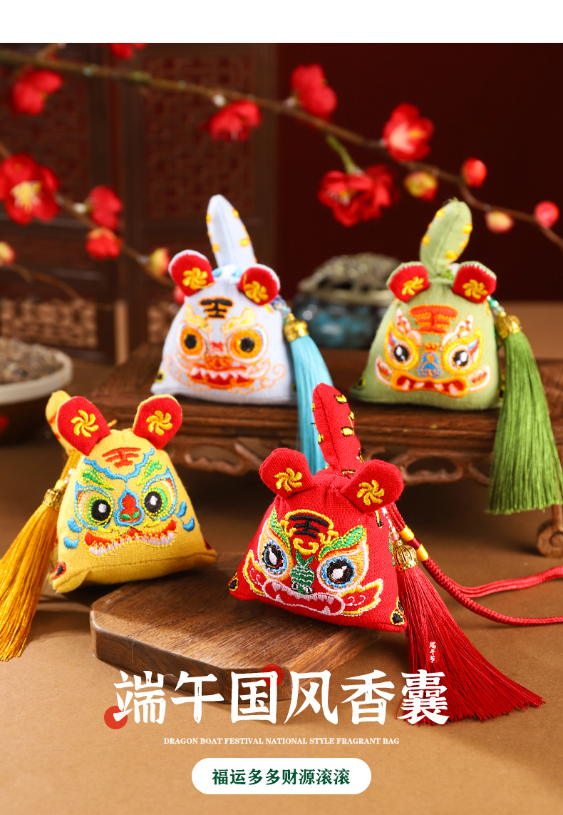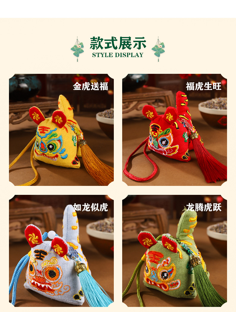 端午节香包香囊汉服配饰端午艾草香包复古立体老虎香囊刺绣挂件