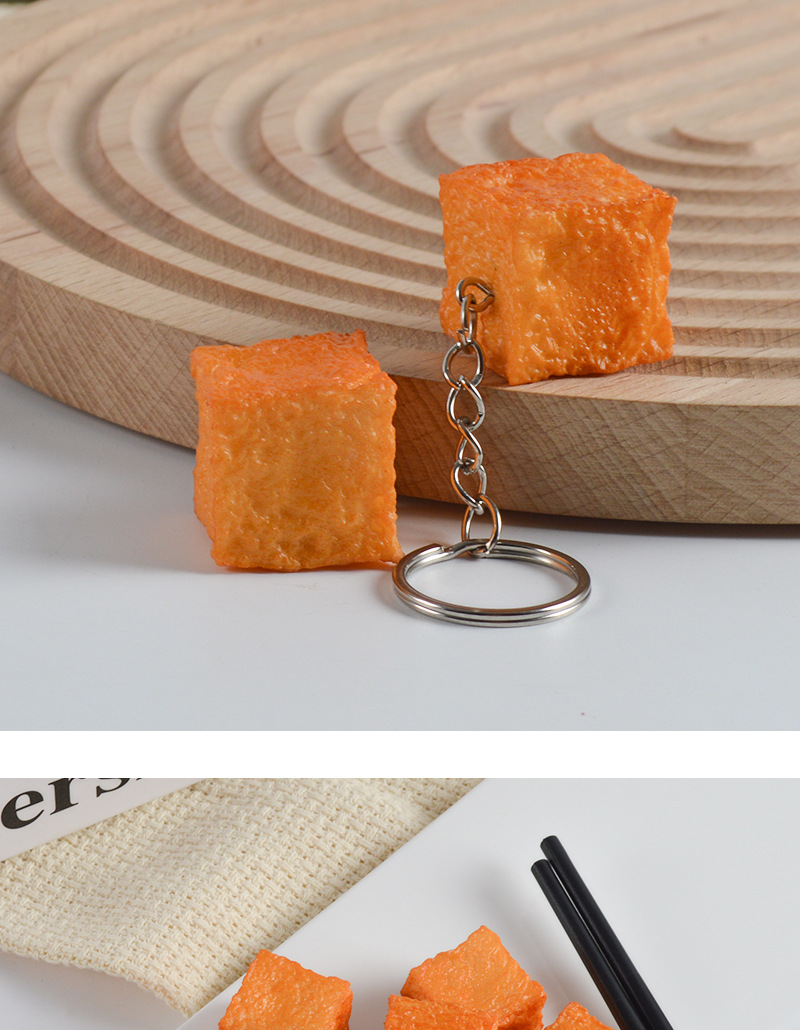 PVC仿真鱼豆腐道具仿真豆腐臭豆腐炸豆腐仿真食物钥匙扣挂件