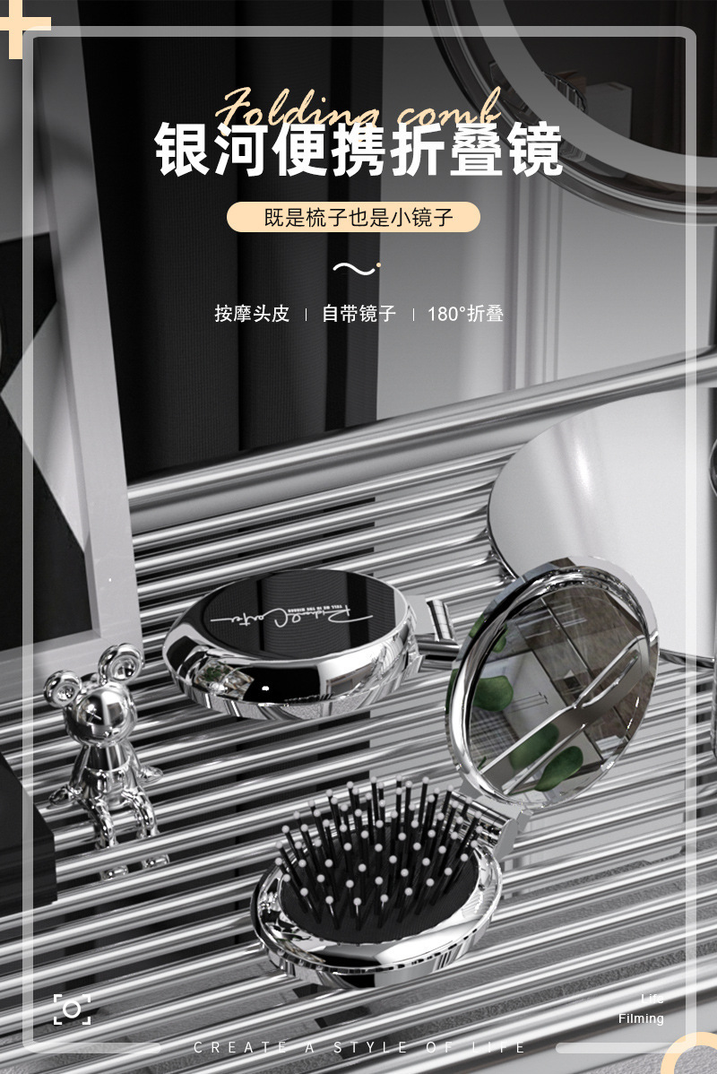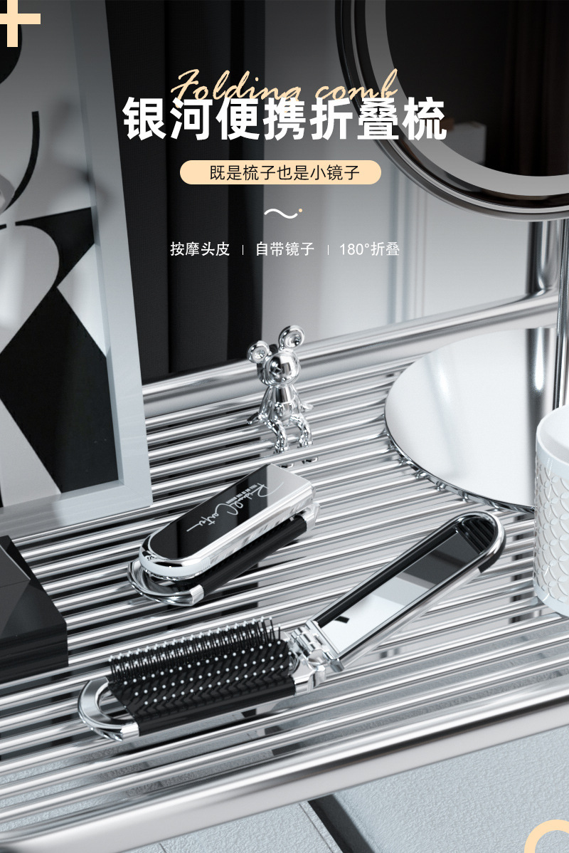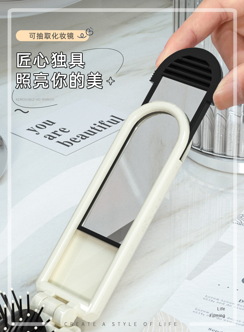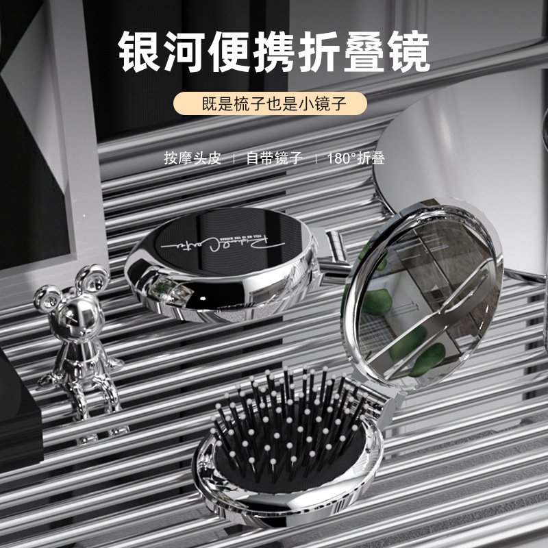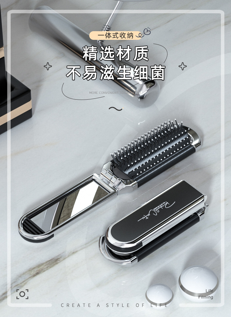 随身折叠梳子便携气囊气垫梳口袋梳顺发镜子一体梳化妆镜按摩梳