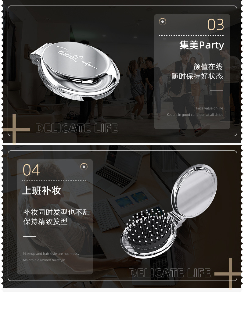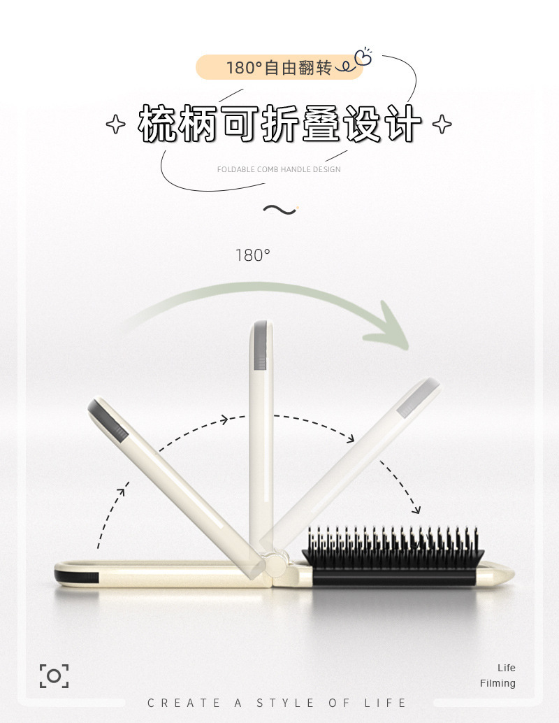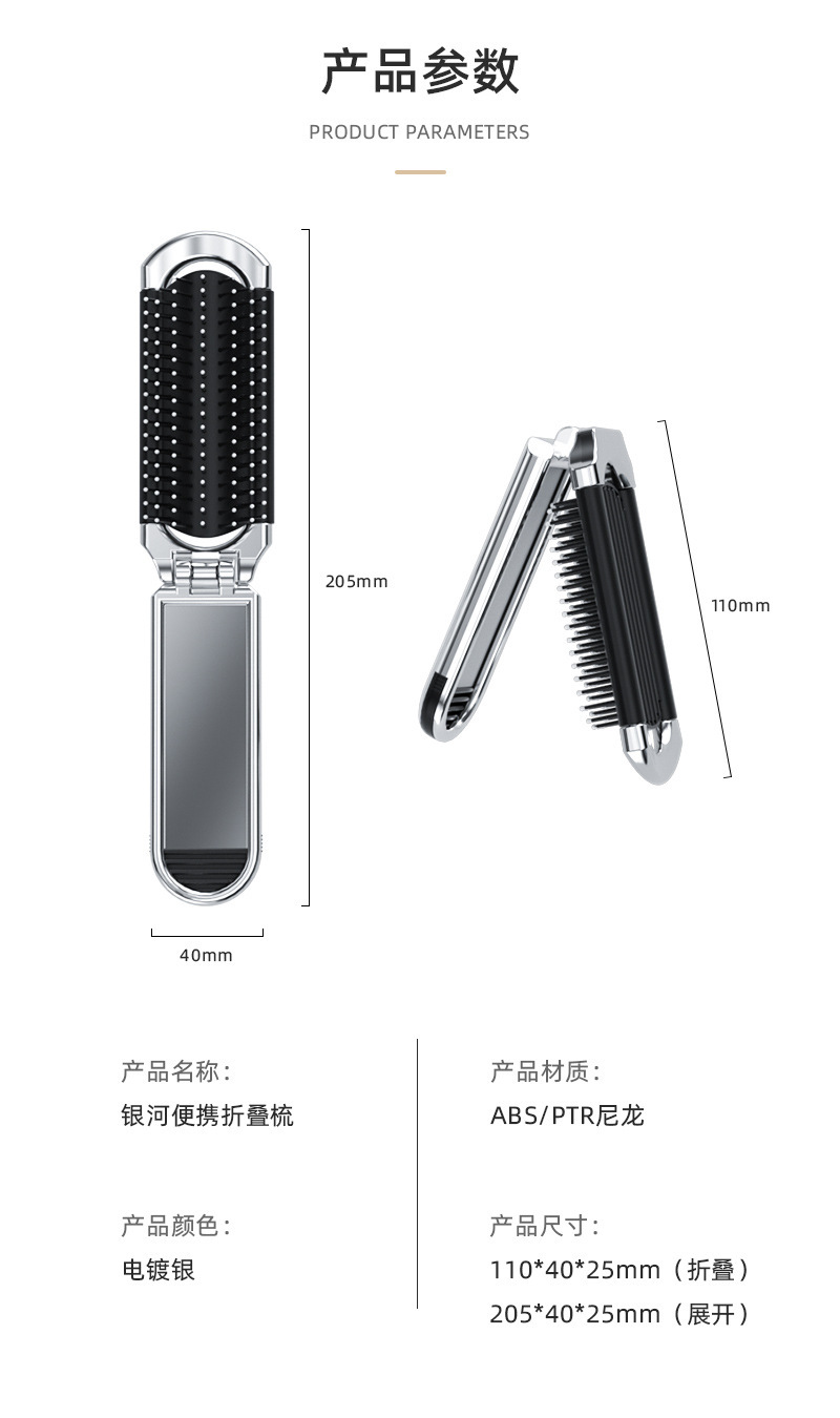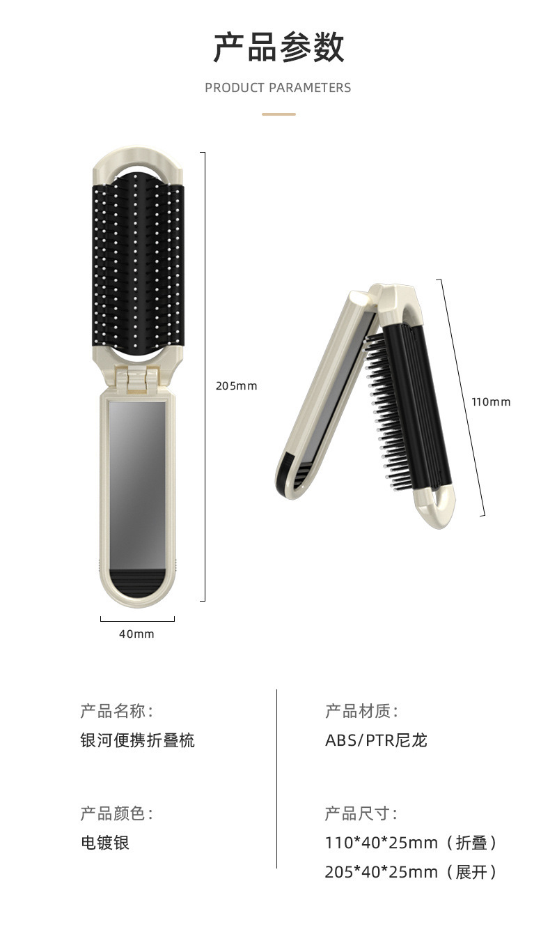 随身折叠梳子便携气囊气垫梳口袋梳顺发镜子一体梳化妆镜按摩梳