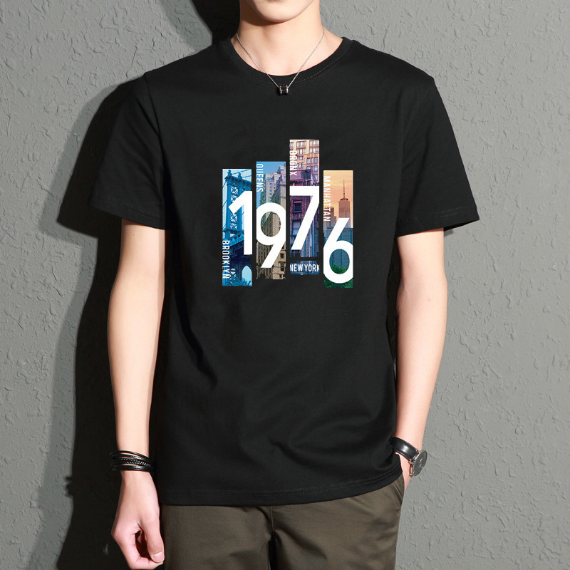 男式t恤2022夏季新款韩版修身男装批发外贸货源时尚潮流印花上衣