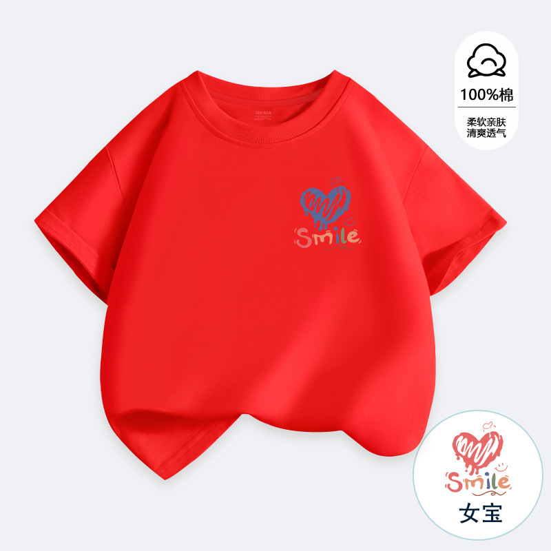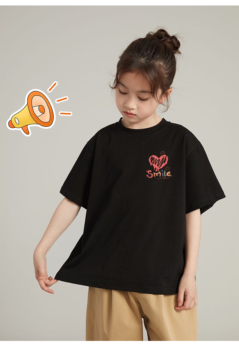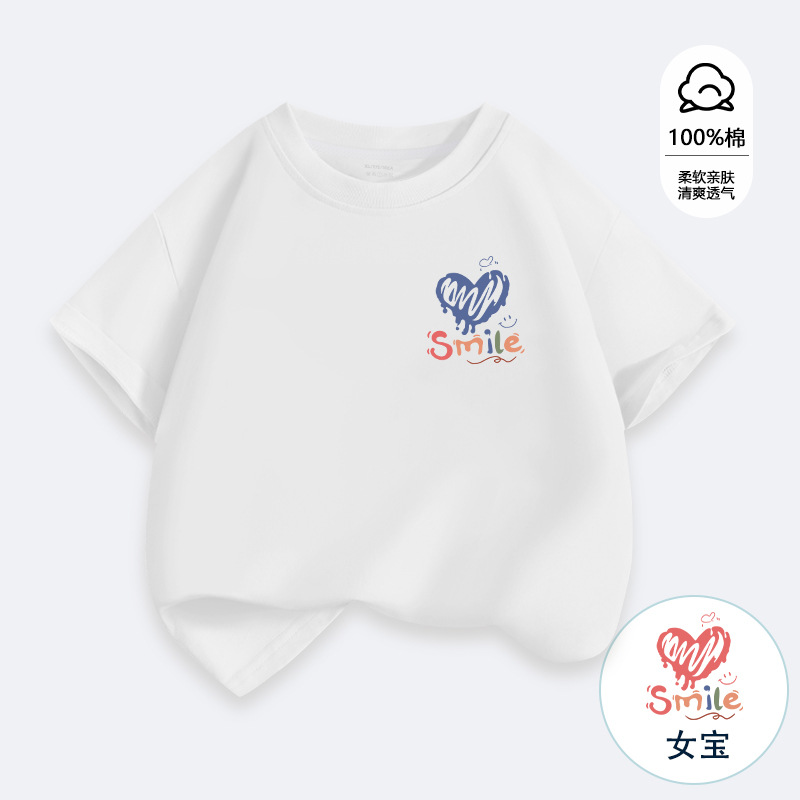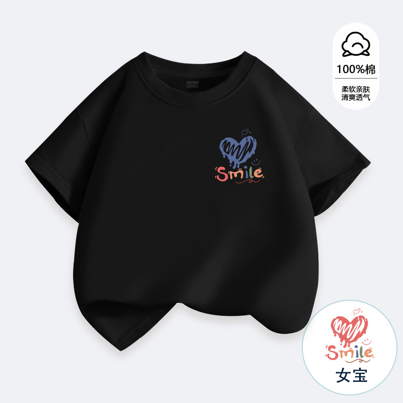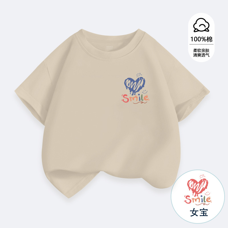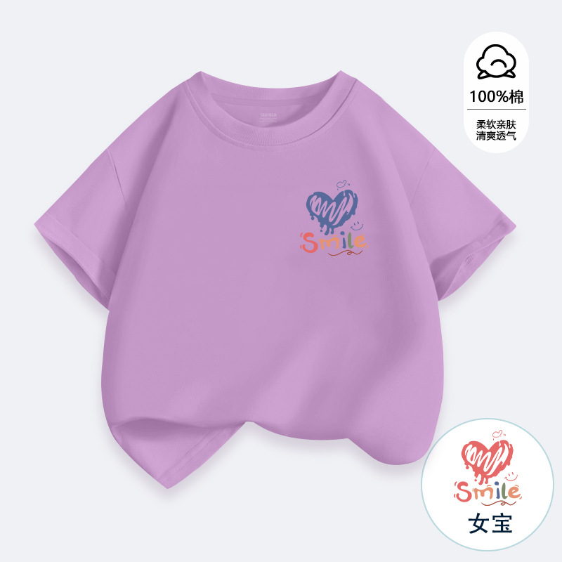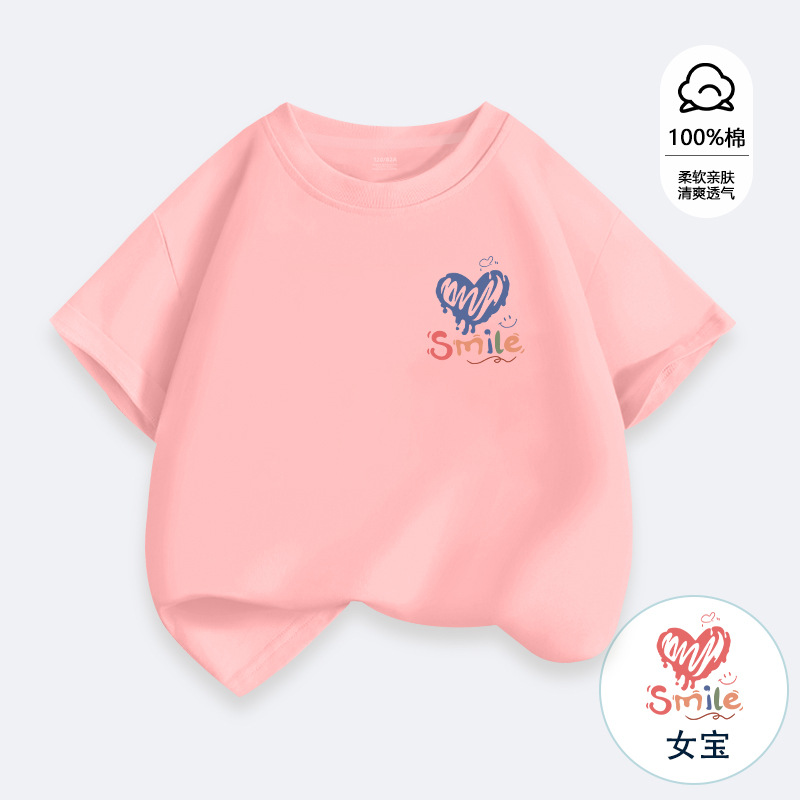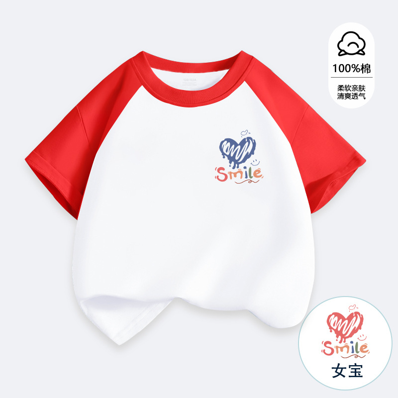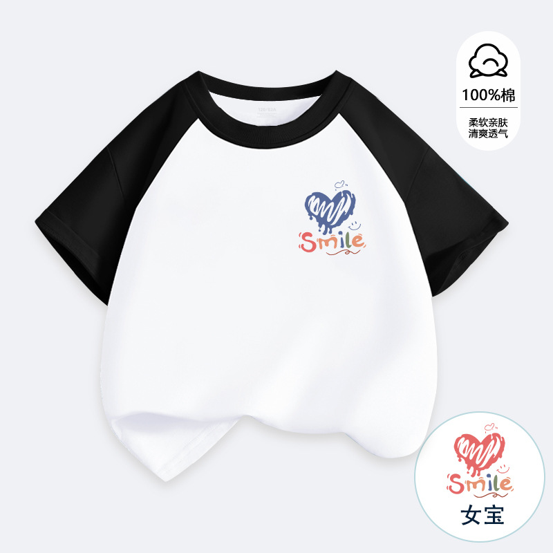 夏季男女童t恤韩版圆领宽松小胸标爱心图案撞色高端100%纯棉短袖