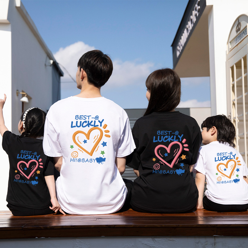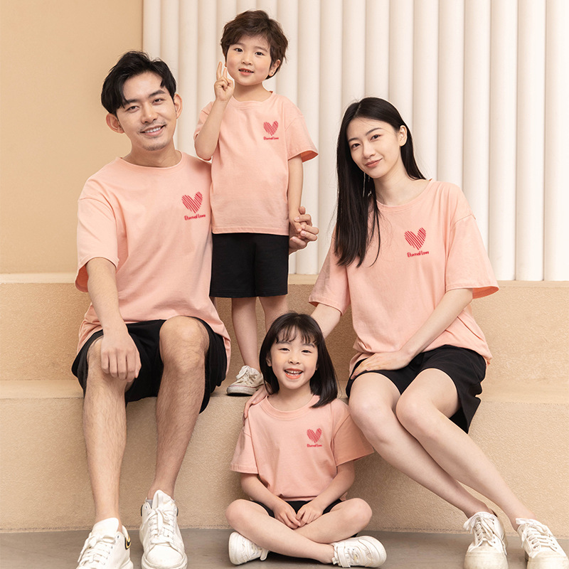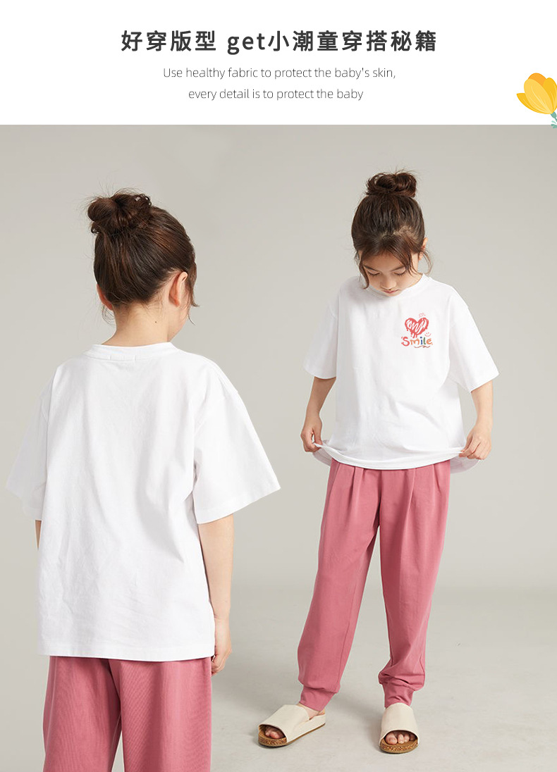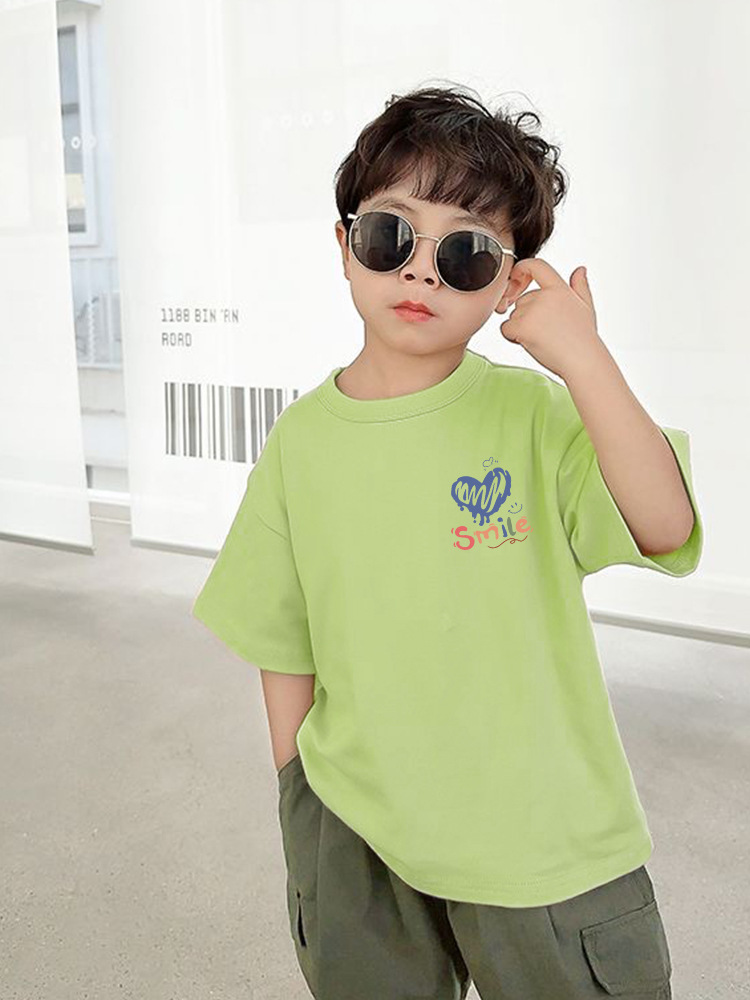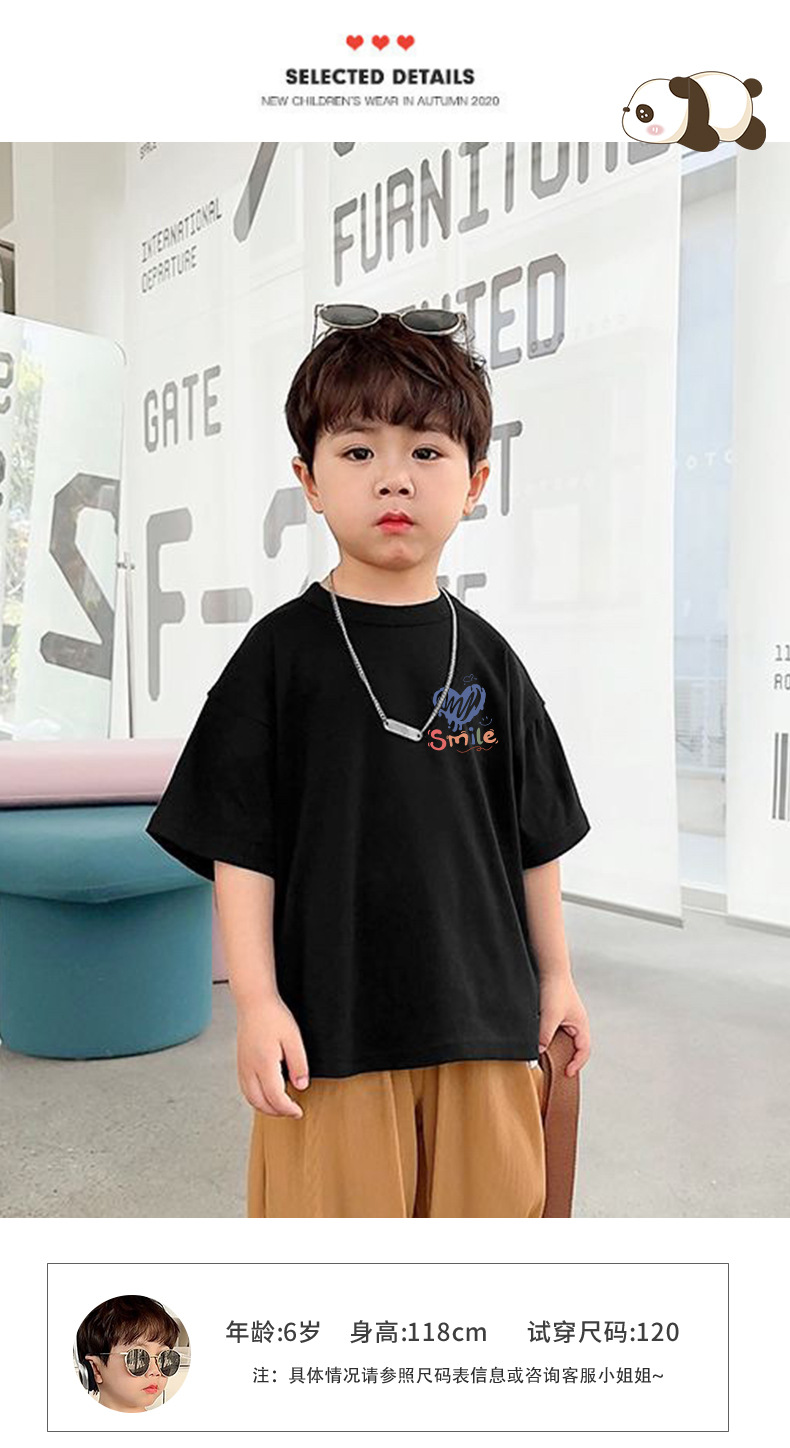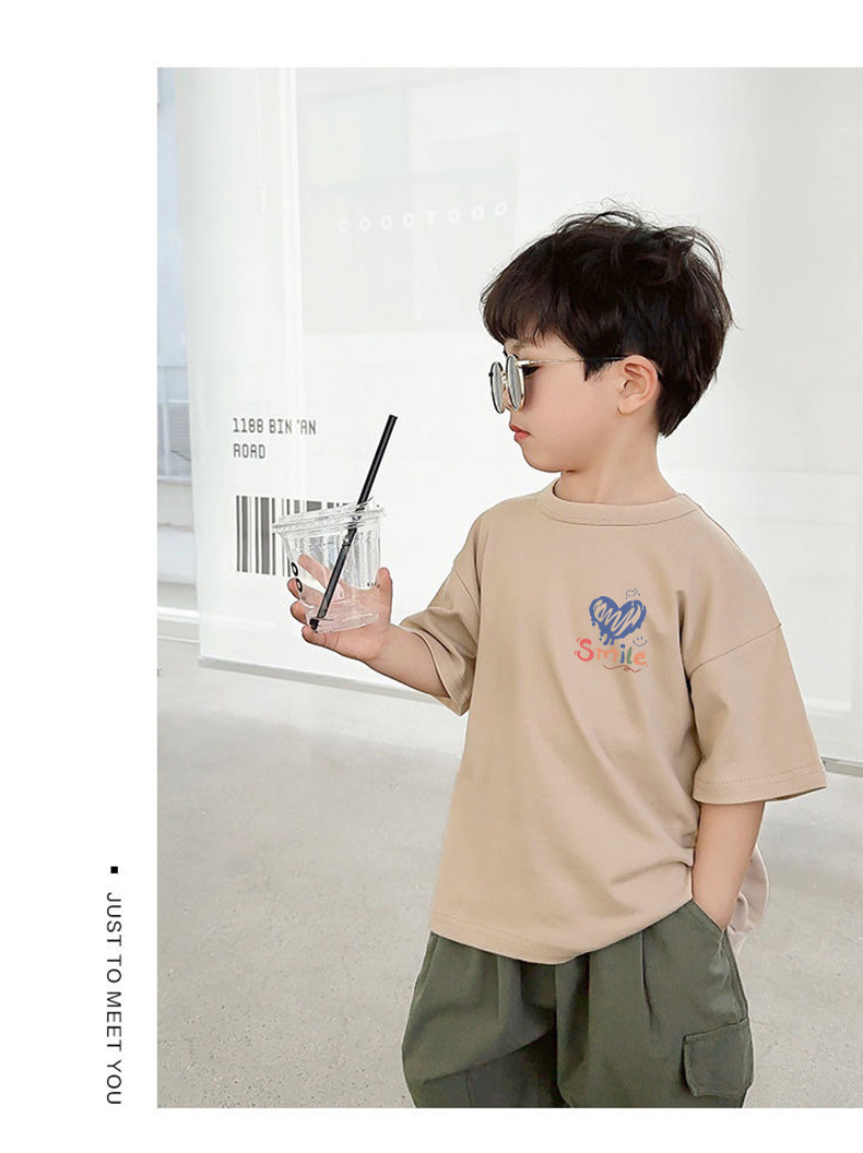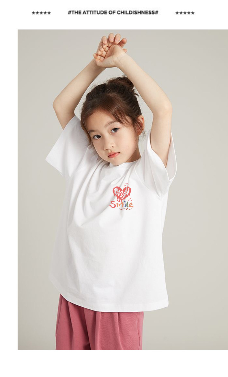夏季男女童t恤韩版圆领宽松小胸标爱心图案撞色高端100%纯棉短袖