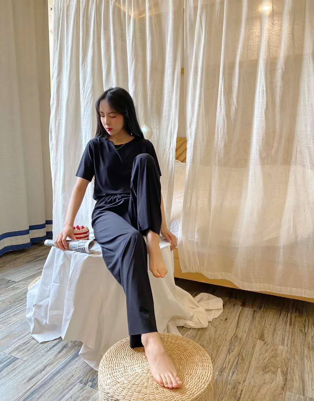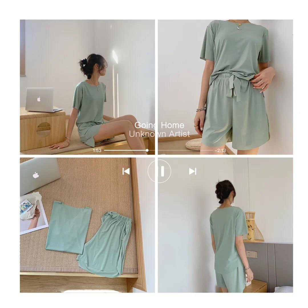 睡衣套装女2024春夏新款冰爽皇后居家服薄款宽松纯色休闲两件套女