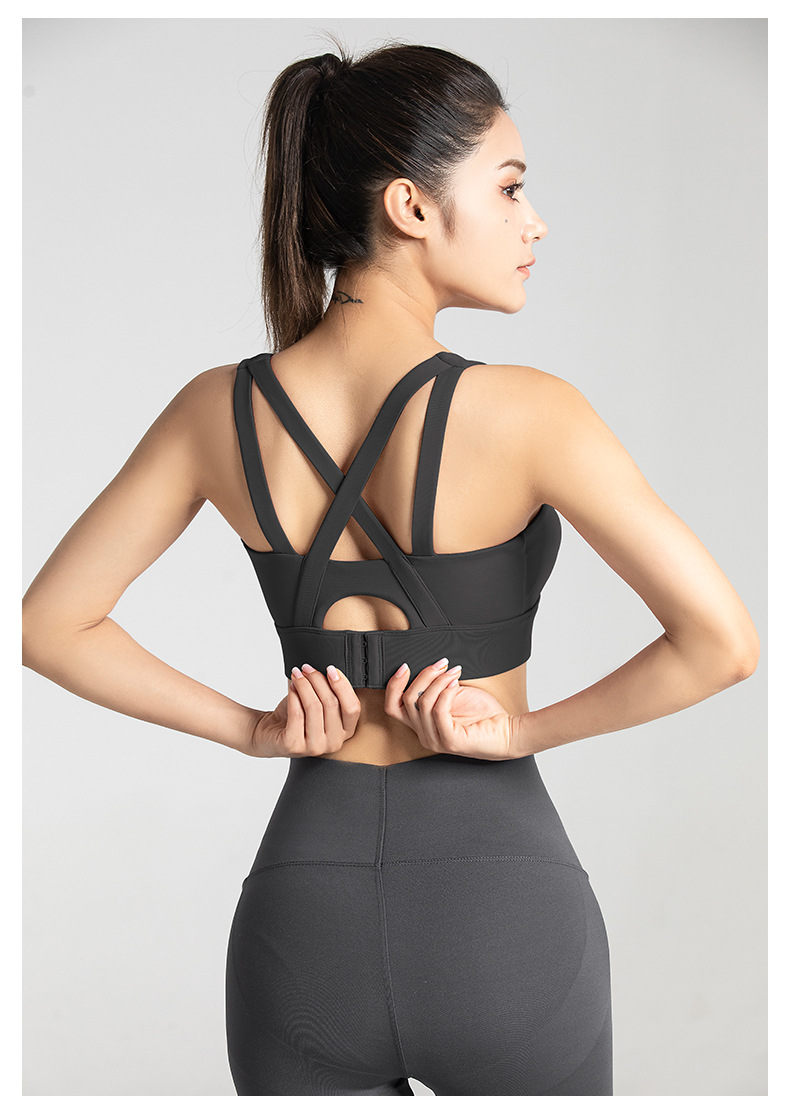 裸感运动内衣女高强度防震瑜伽文胸排扣可调节健身背心