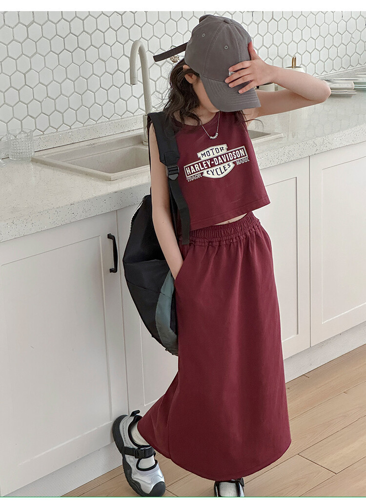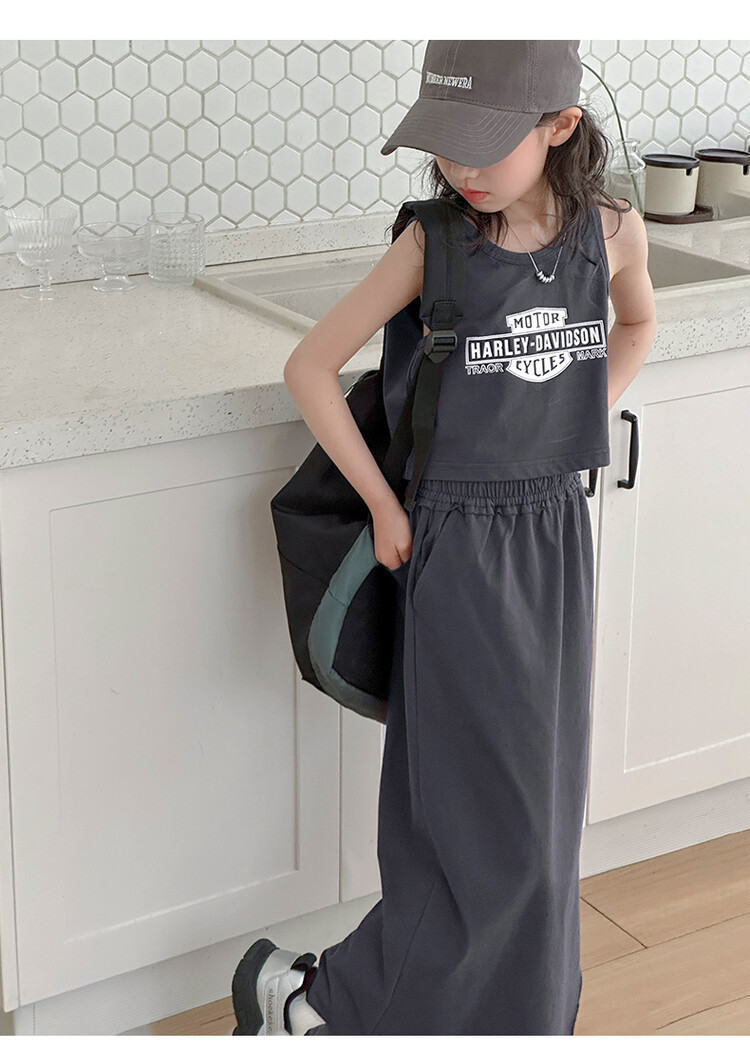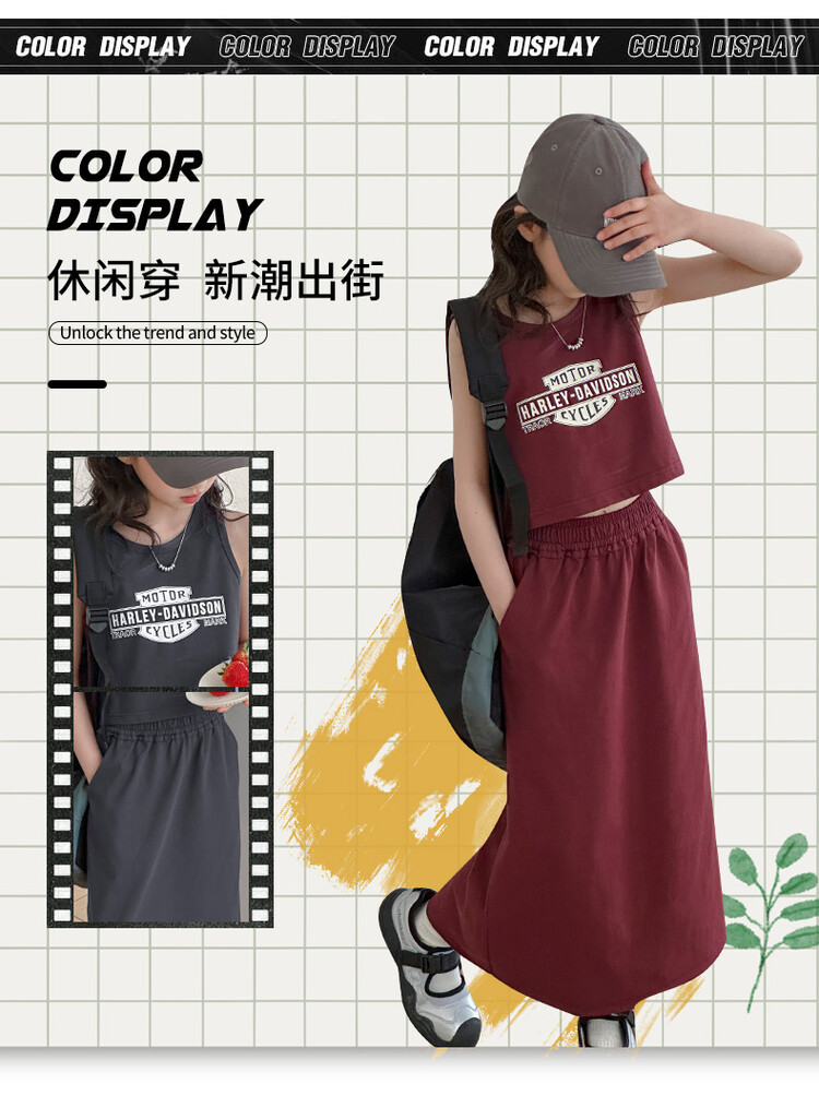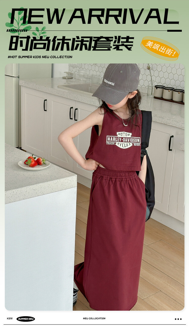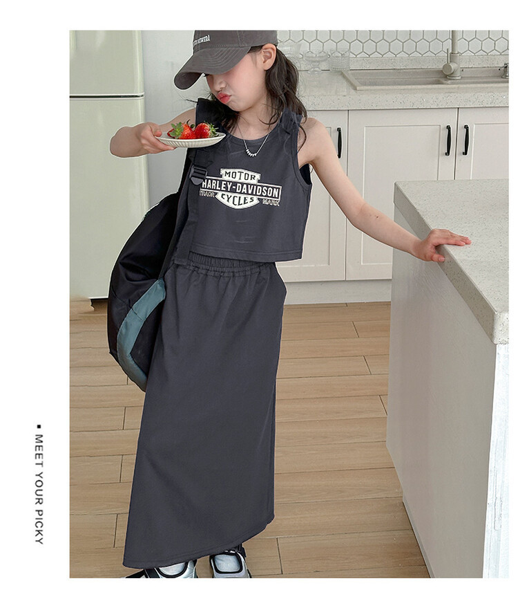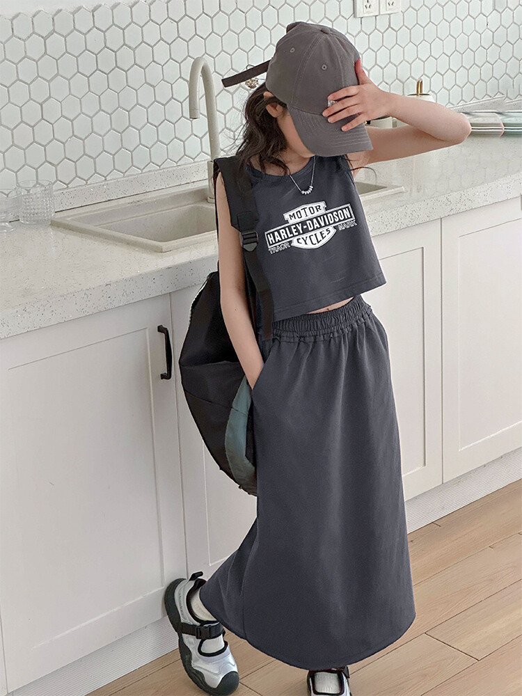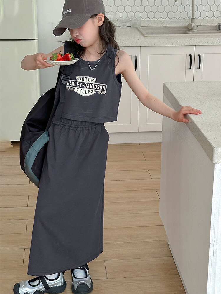 女童时尚无袖套装2024夏款女孩洋气韩版背心半身裙网红休闲两件套