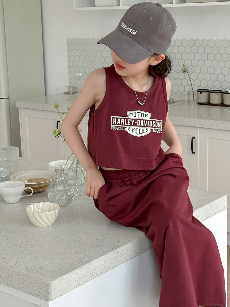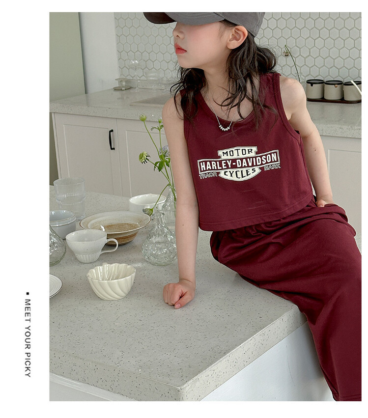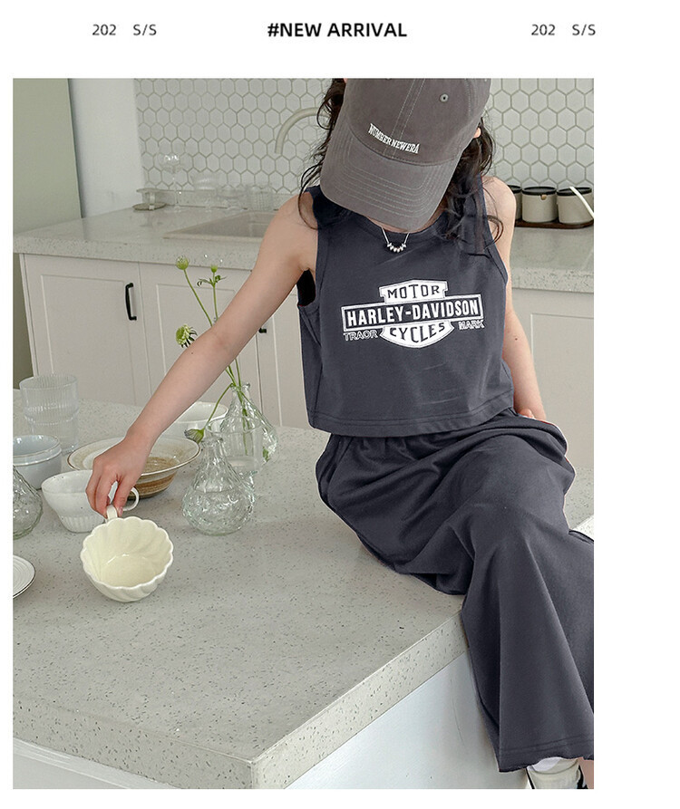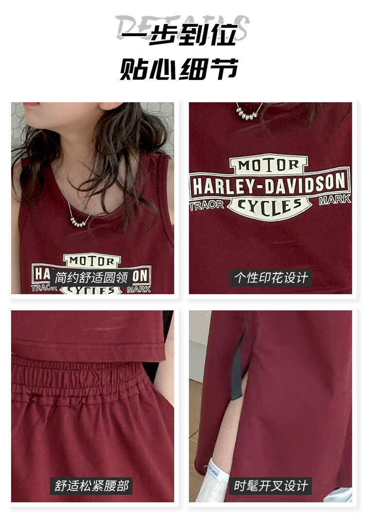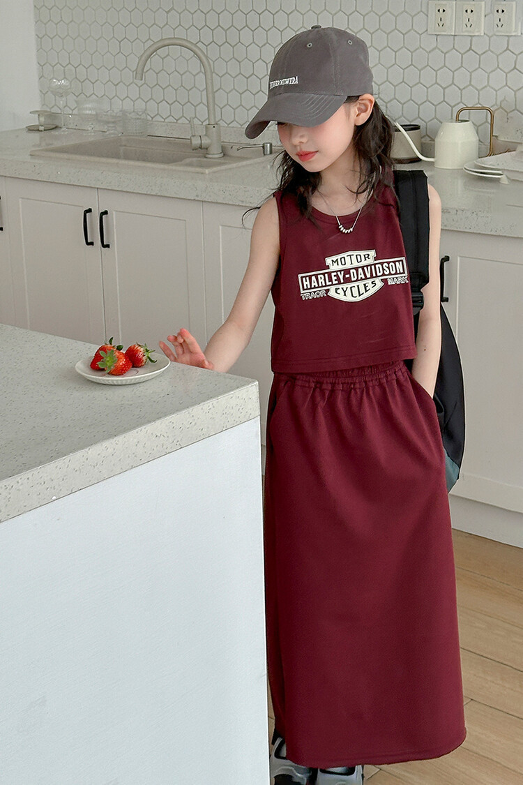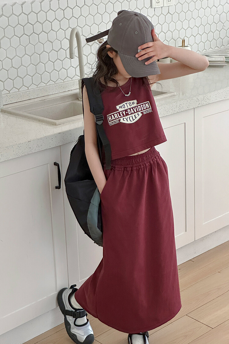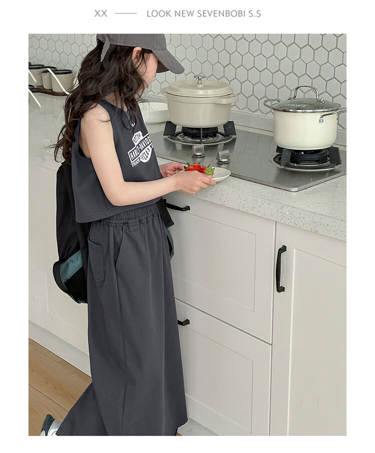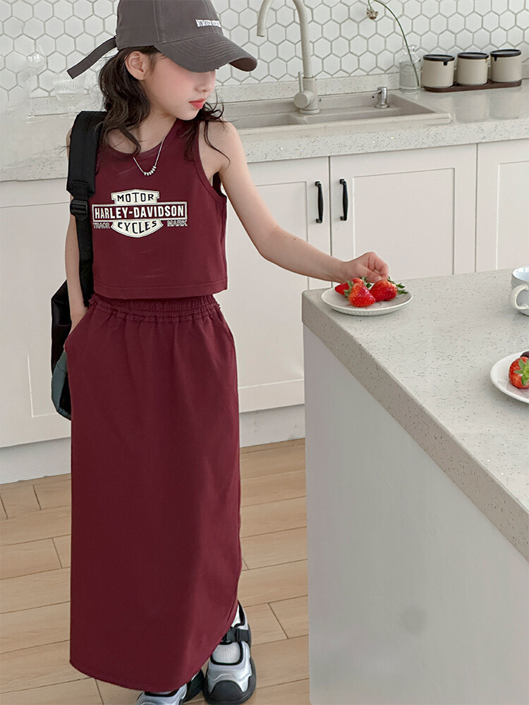 女童时尚无袖套装2024夏款女孩洋气韩版背心半身裙网红休闲两件套