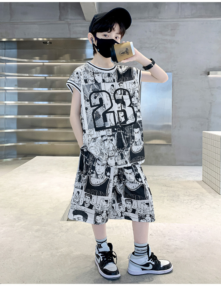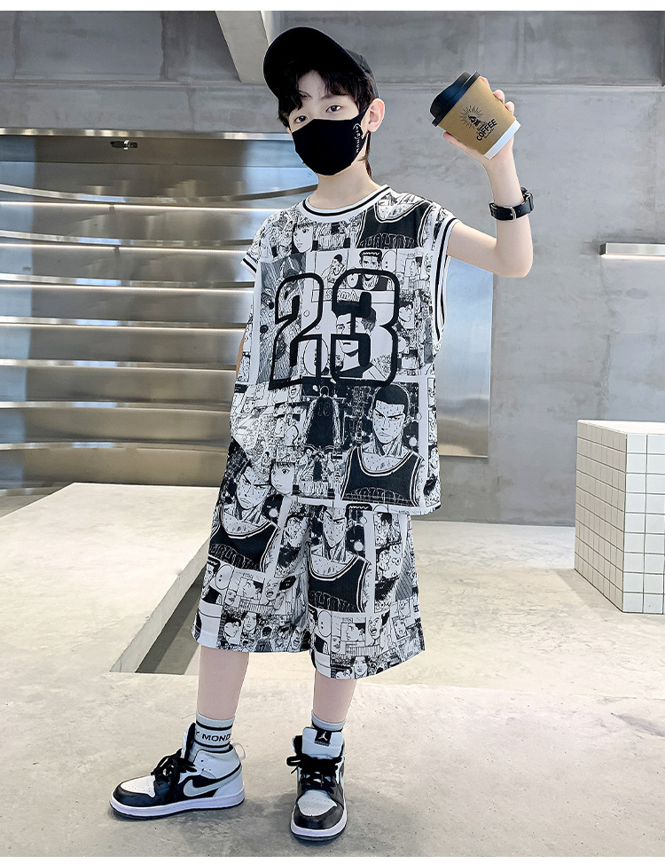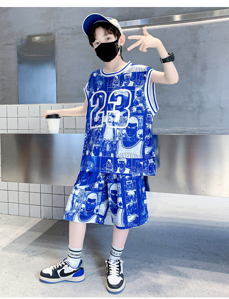男童套装2023新款速干运动夏装男孩薄款背心短裤潮儿童篮球服夏季
