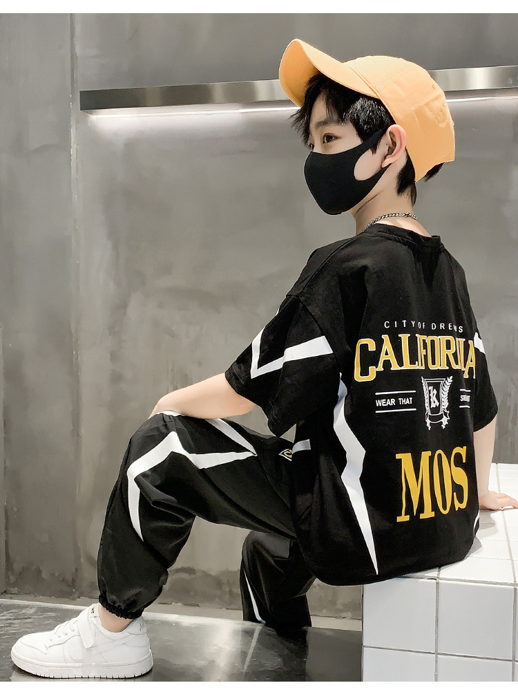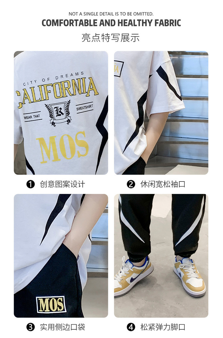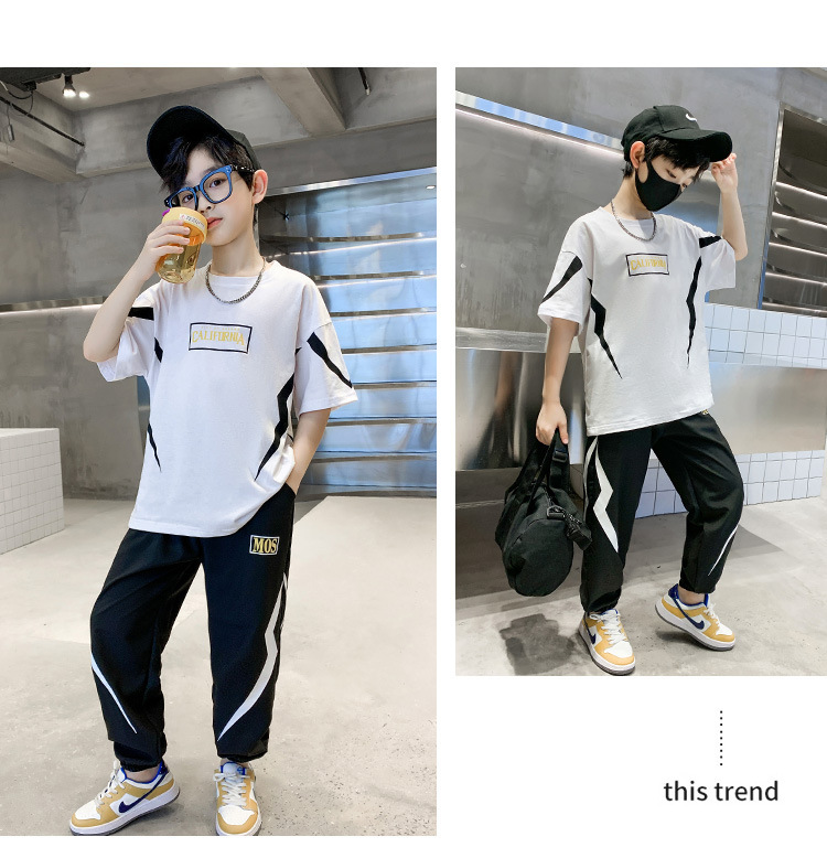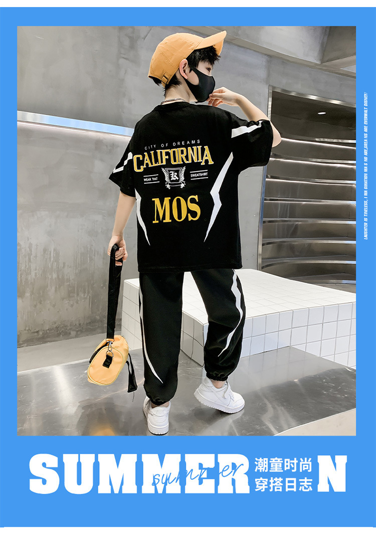 男童夏季套装2024新款儿童帅气网红炸街夏装中大童短袖长裤两件套