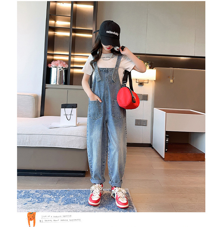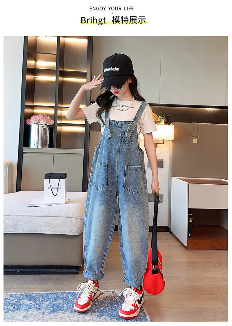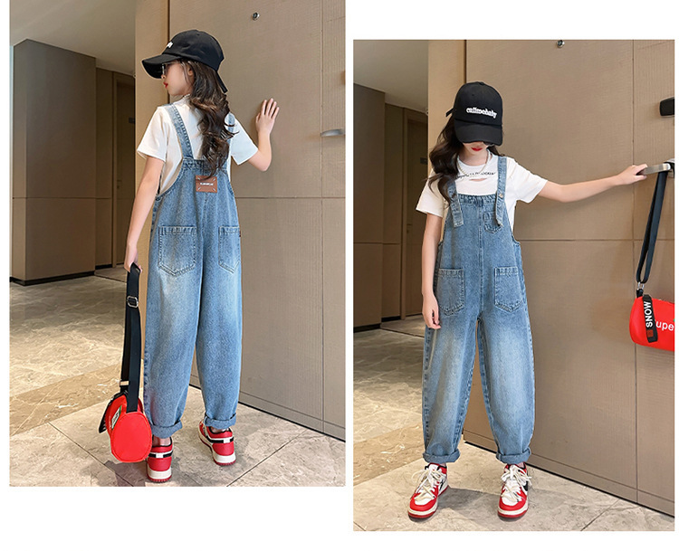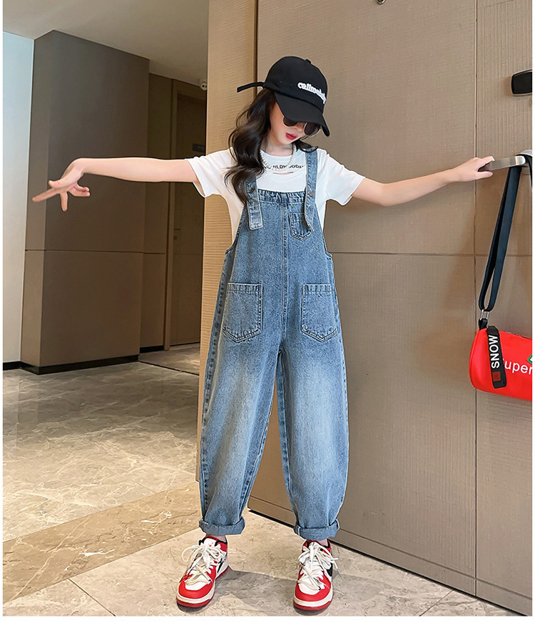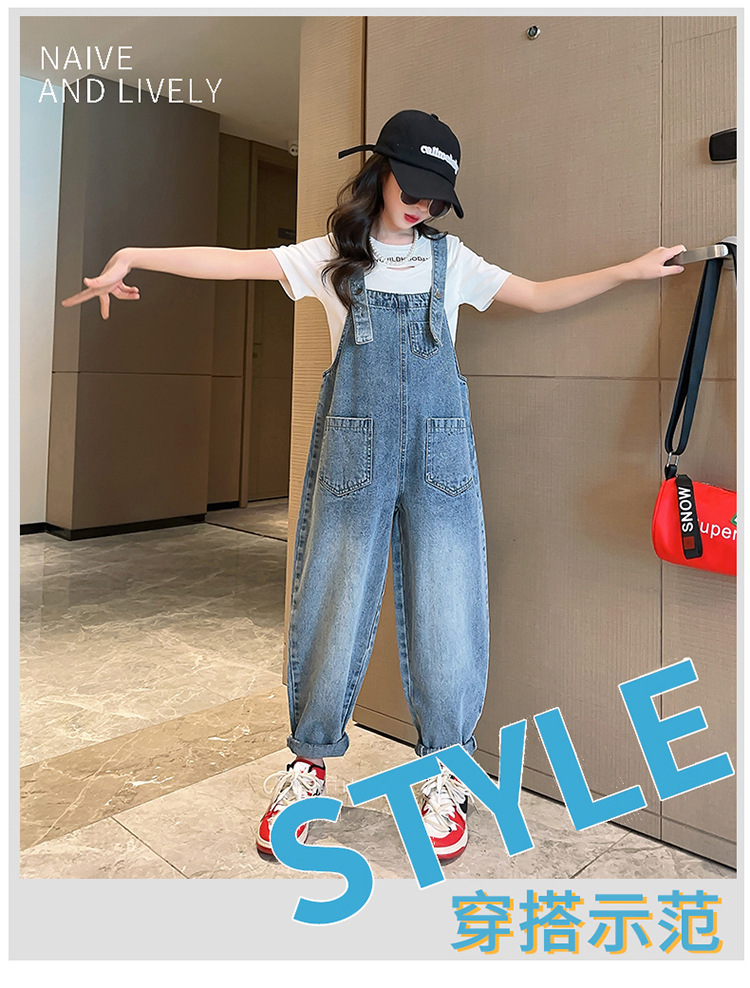 女童背带裤夏装2024新款儿童夏季牛仔裤女孩大童炸街裤子春秋宽松