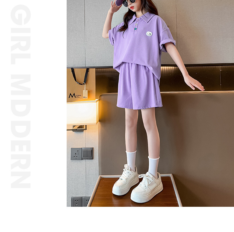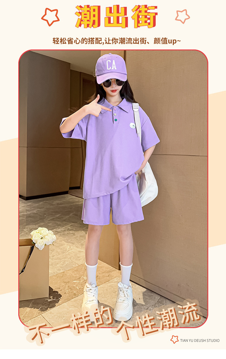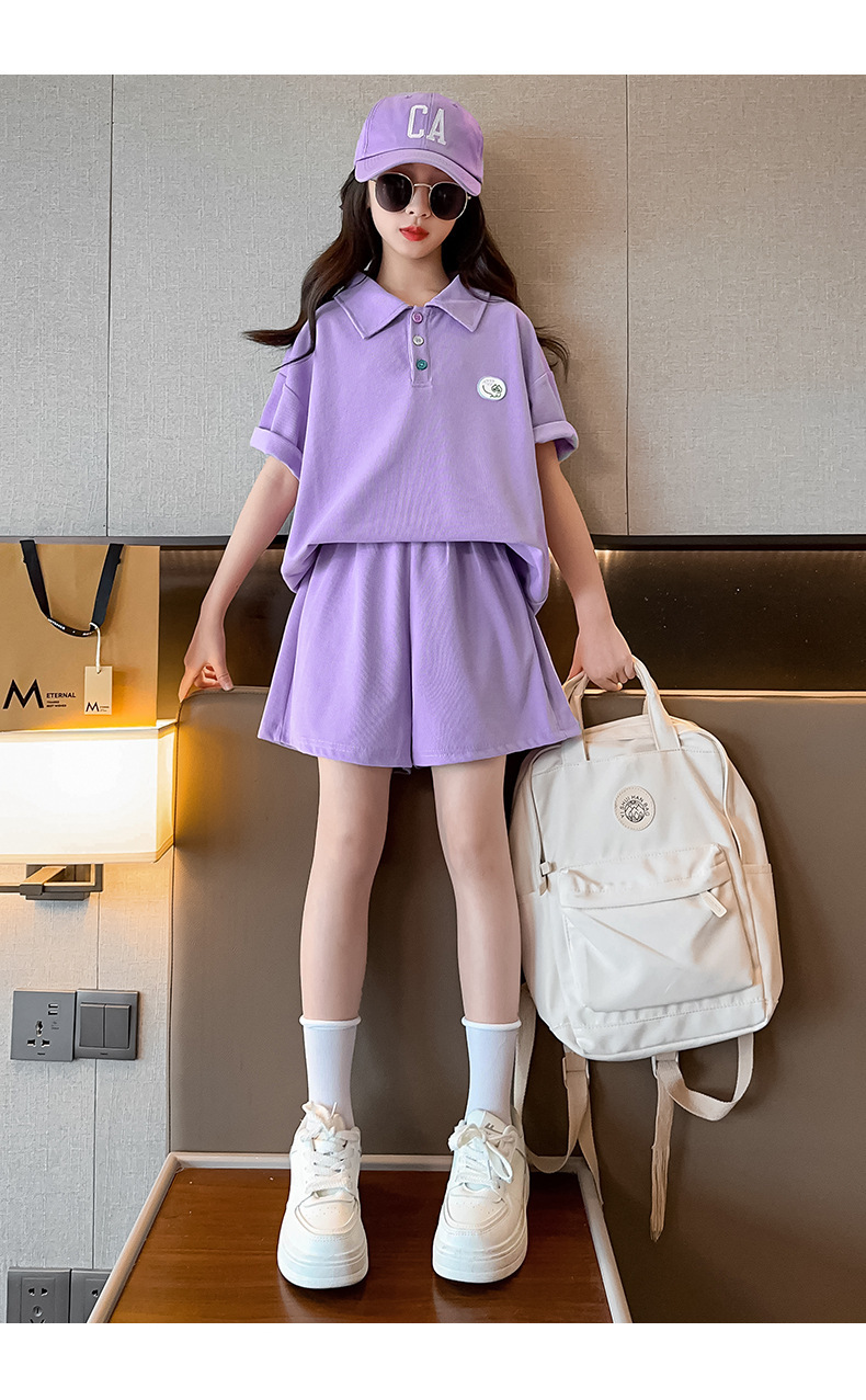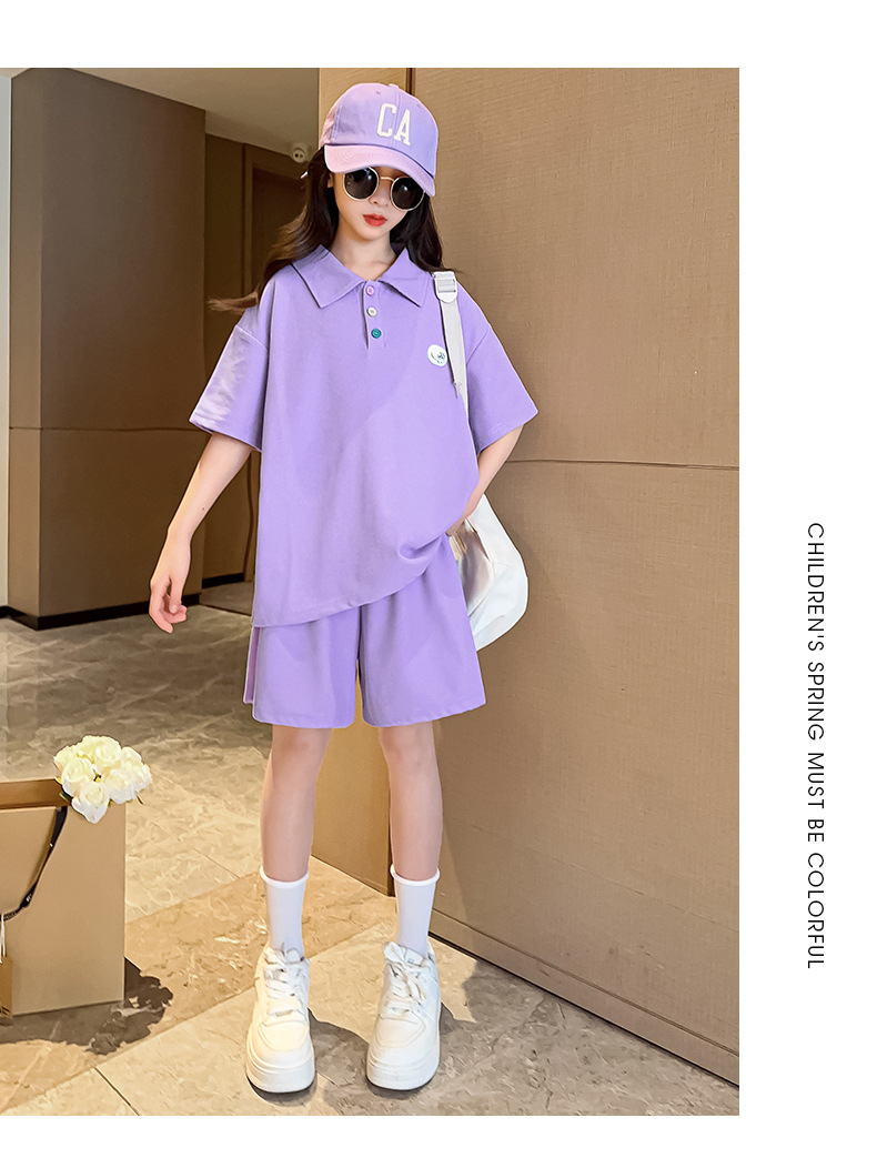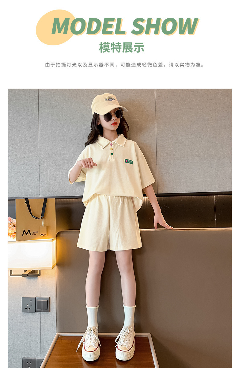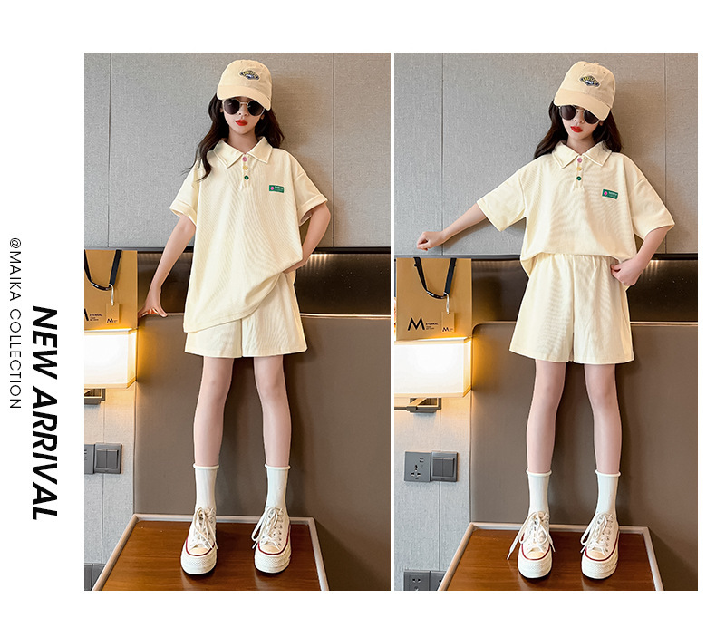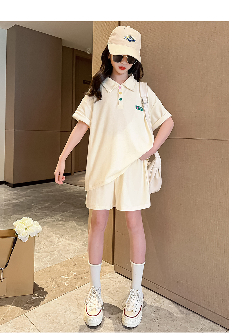 女童夏装套装2024新款儿童学院风Polo领短袖T恤宽松运动短裤两件t
