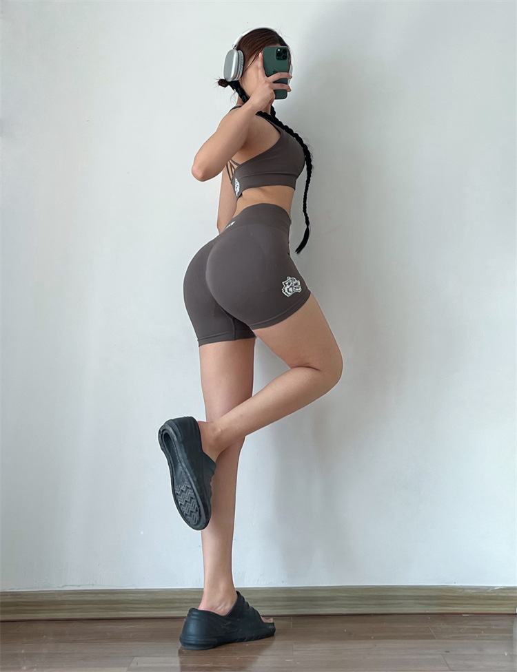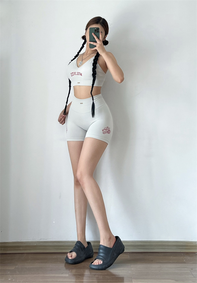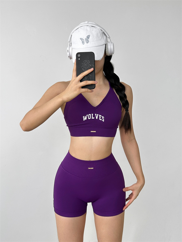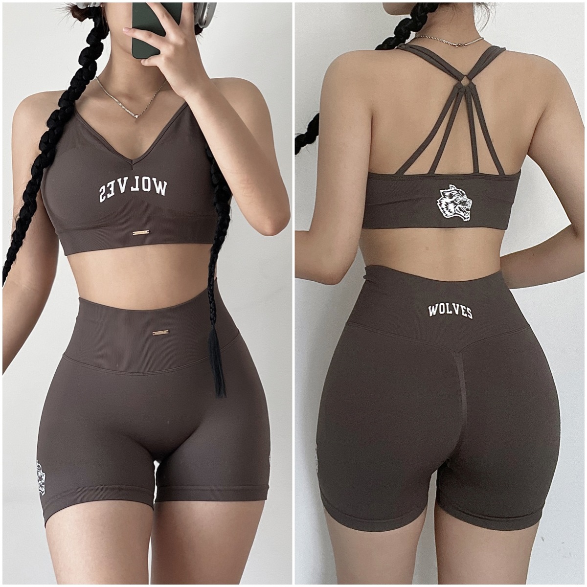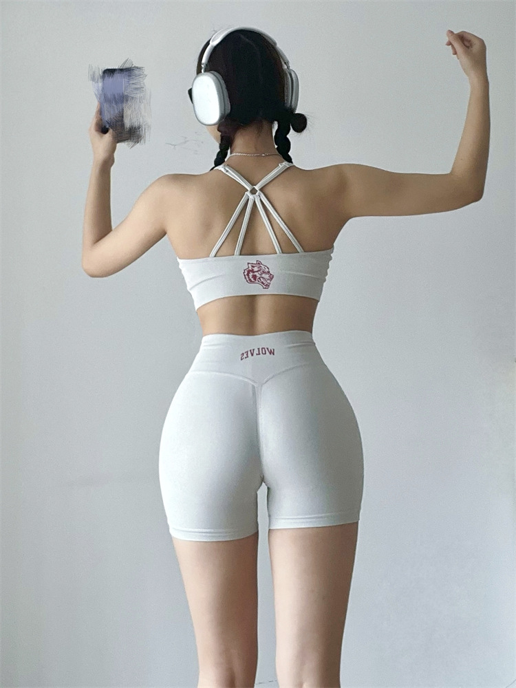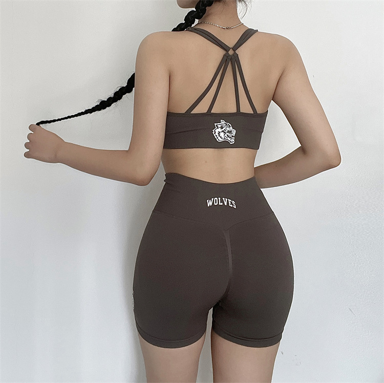 健身瑜伽服紧身三分短裤背心文胸套装运动跑步美背提臀1318狼头版