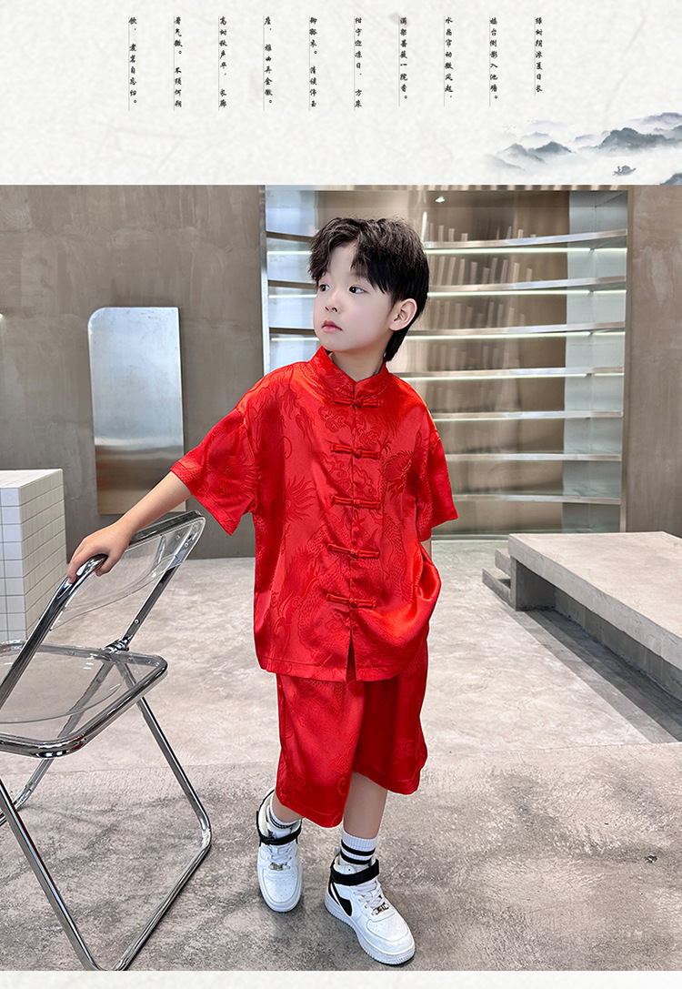 男童夏季短袖新中式汉服套装2024新款儿童夏装中国风两件套演出服