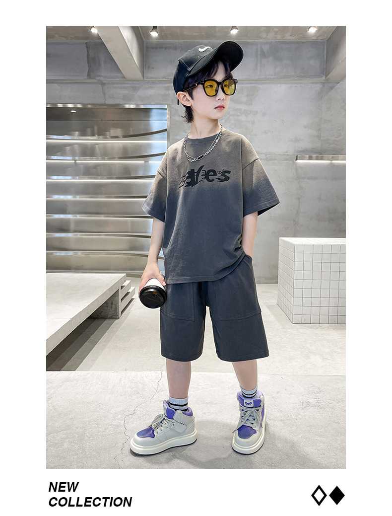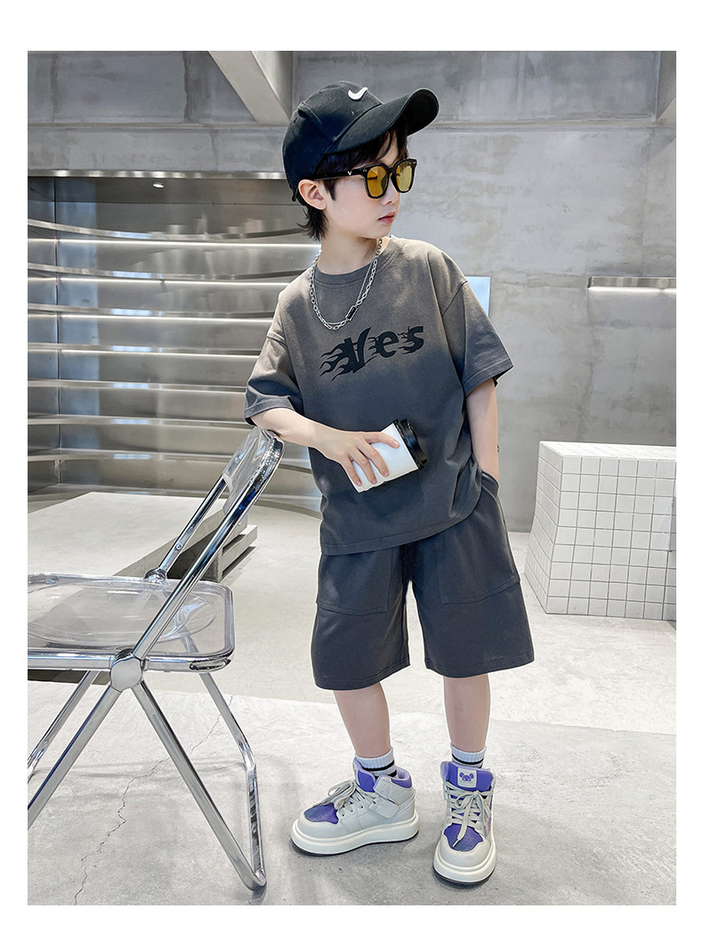 男童夏装韩版帅气短袖衣服2024新款中大童炸街休闲时髦薄款两件套