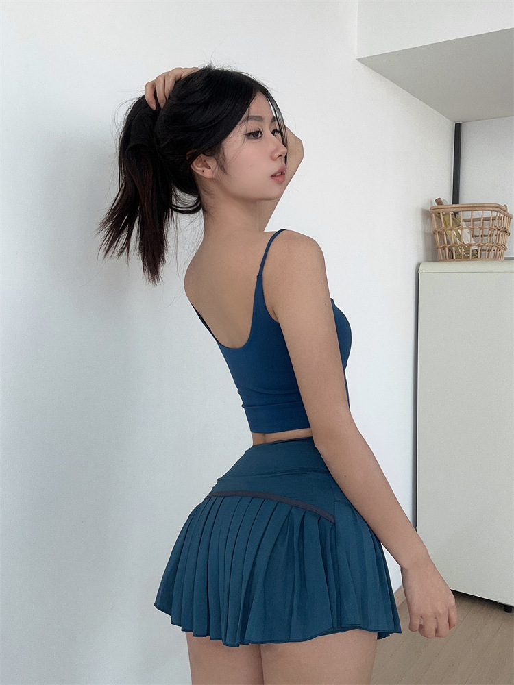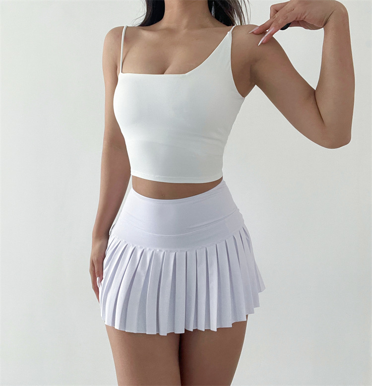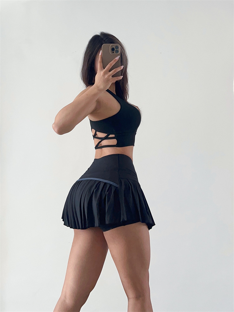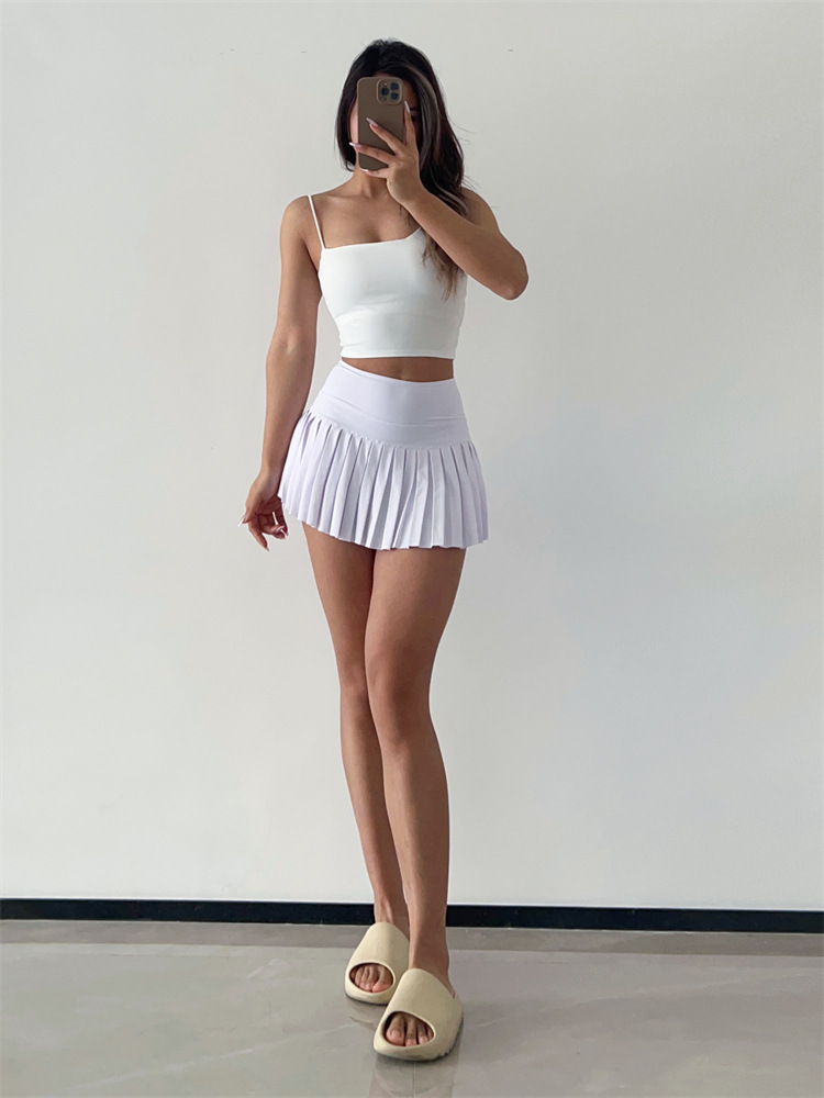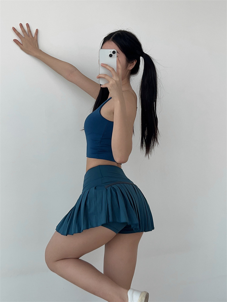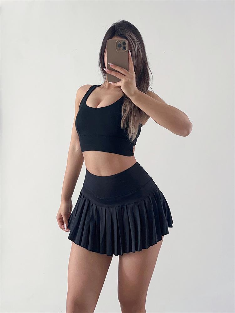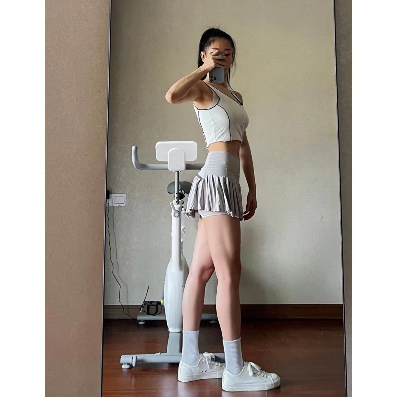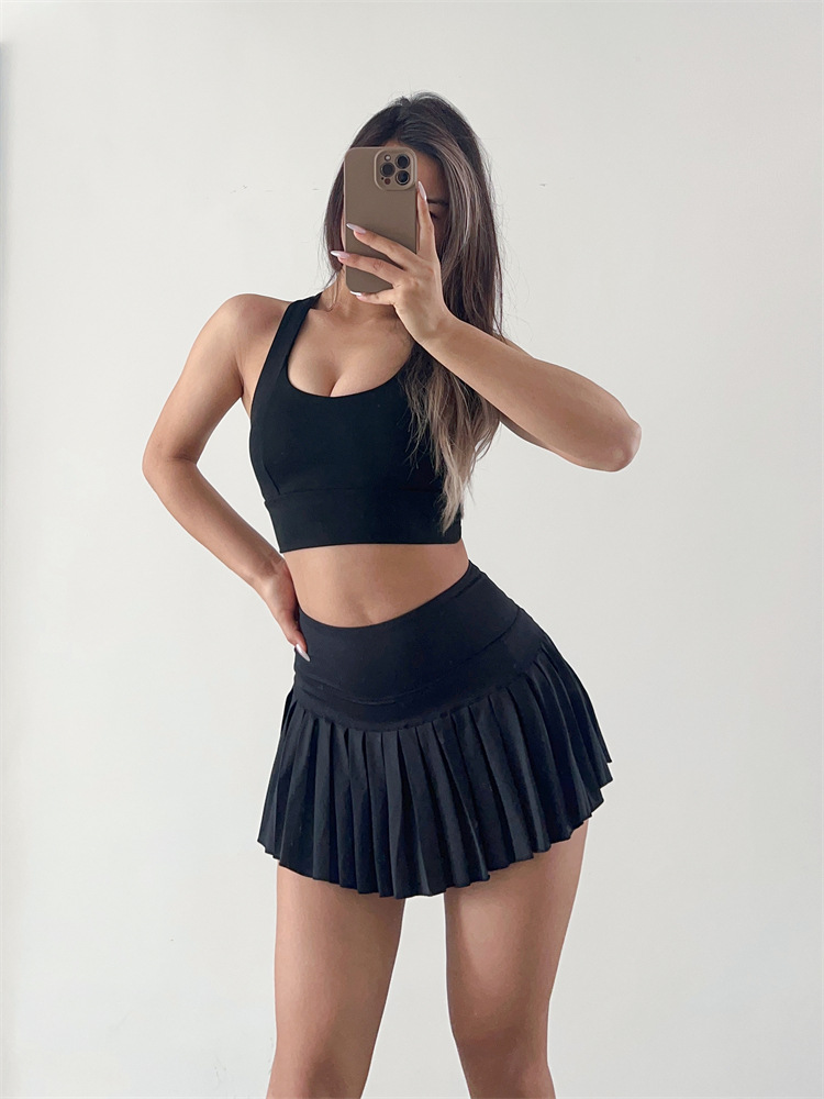 健身短裙防走光假两件运动纯色半身裙百褶裙训练服速干跑步裙1030