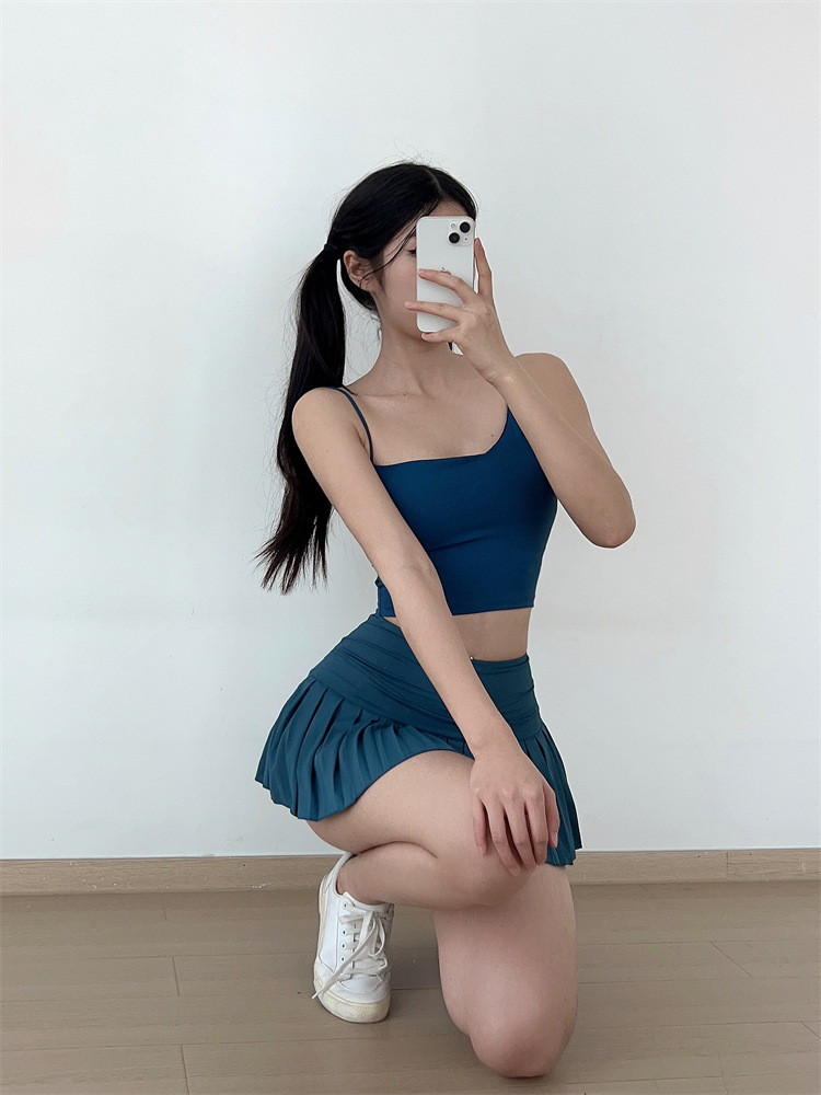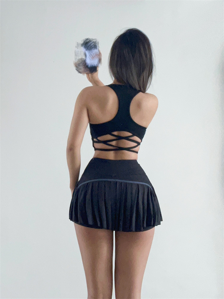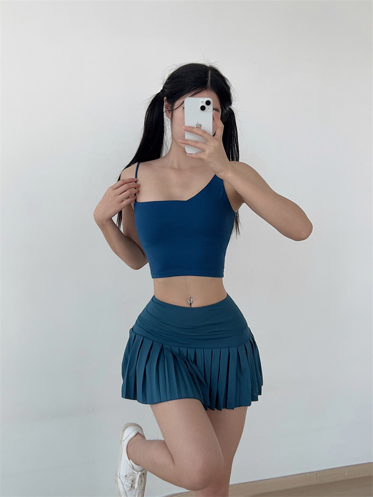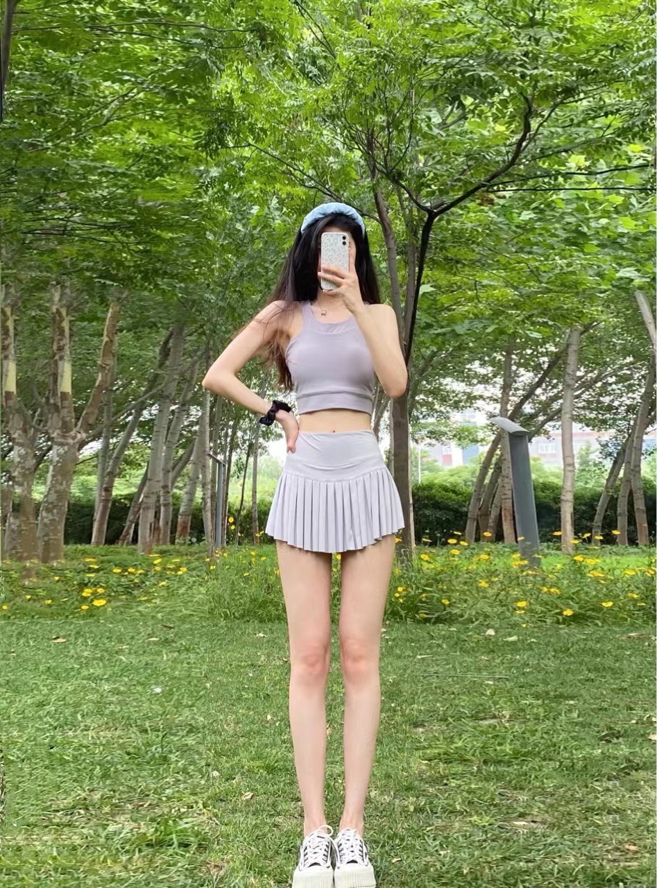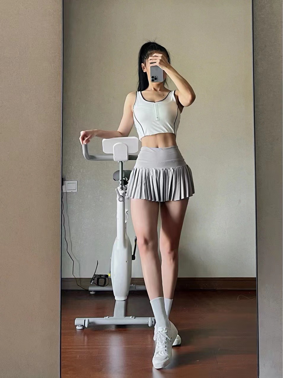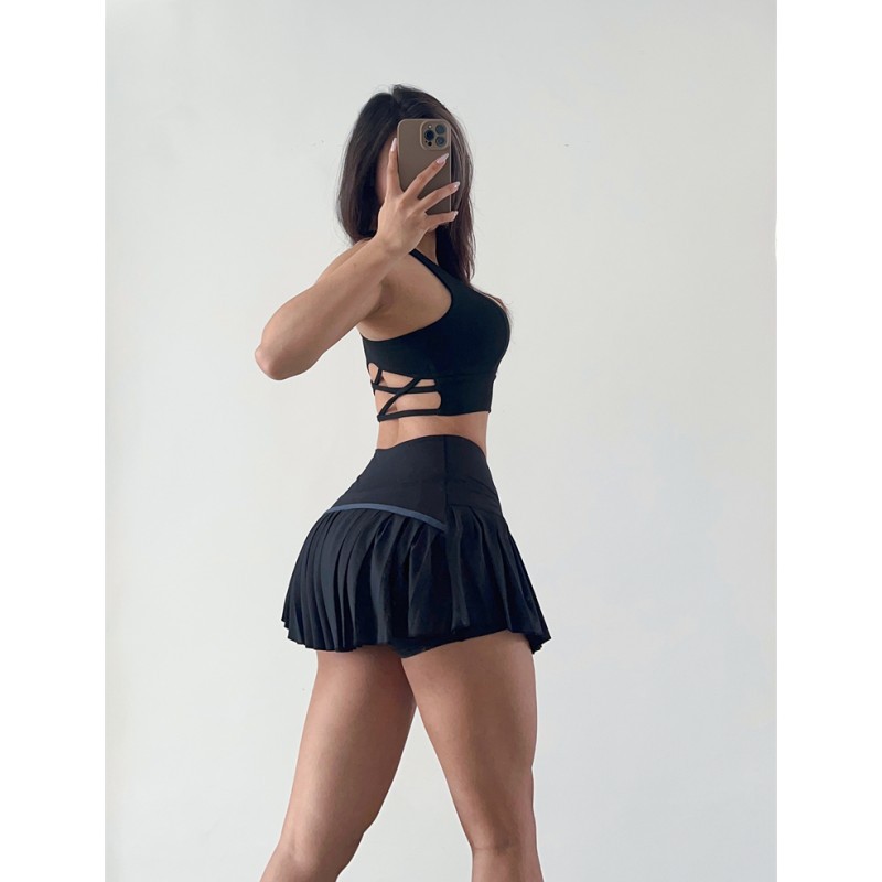 健身短裙防走光假两件运动纯色半身裙百褶裙训练服速干跑步裙1030