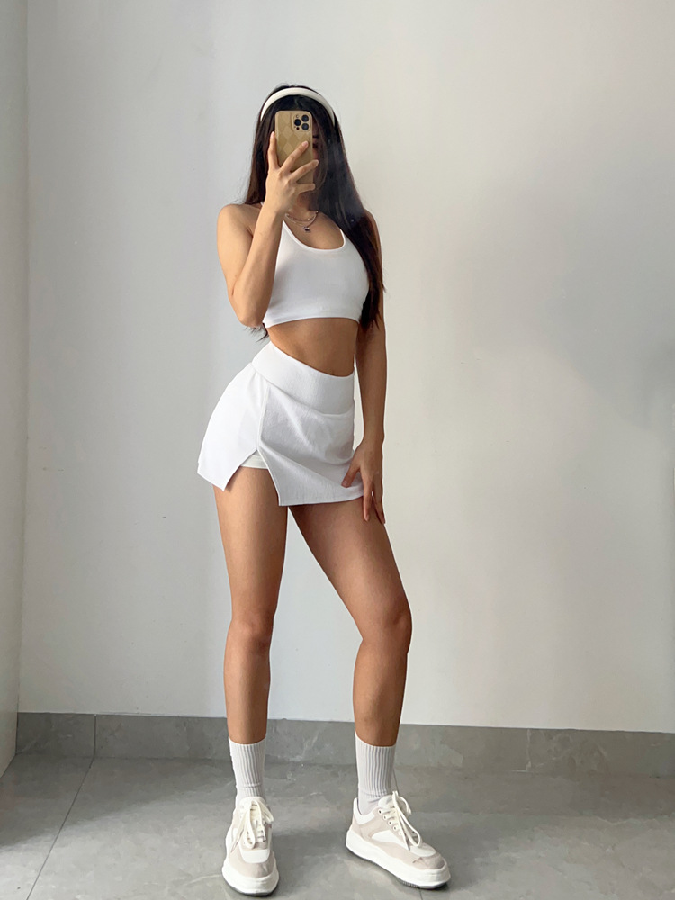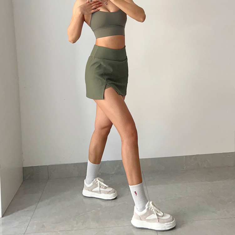 开叉高腰运动裤裙瑜伽透气防走光假两件网球跑步健身短裙女速干