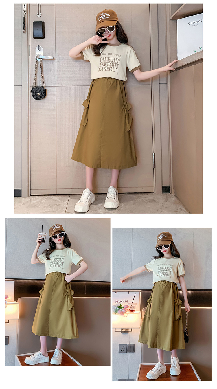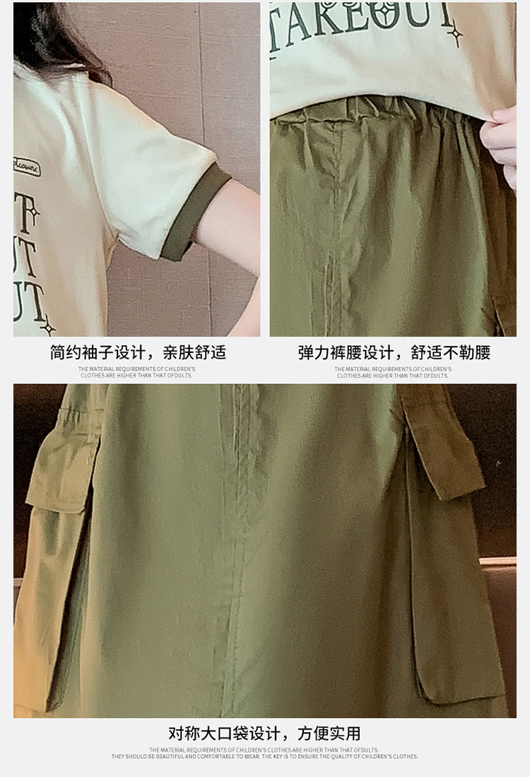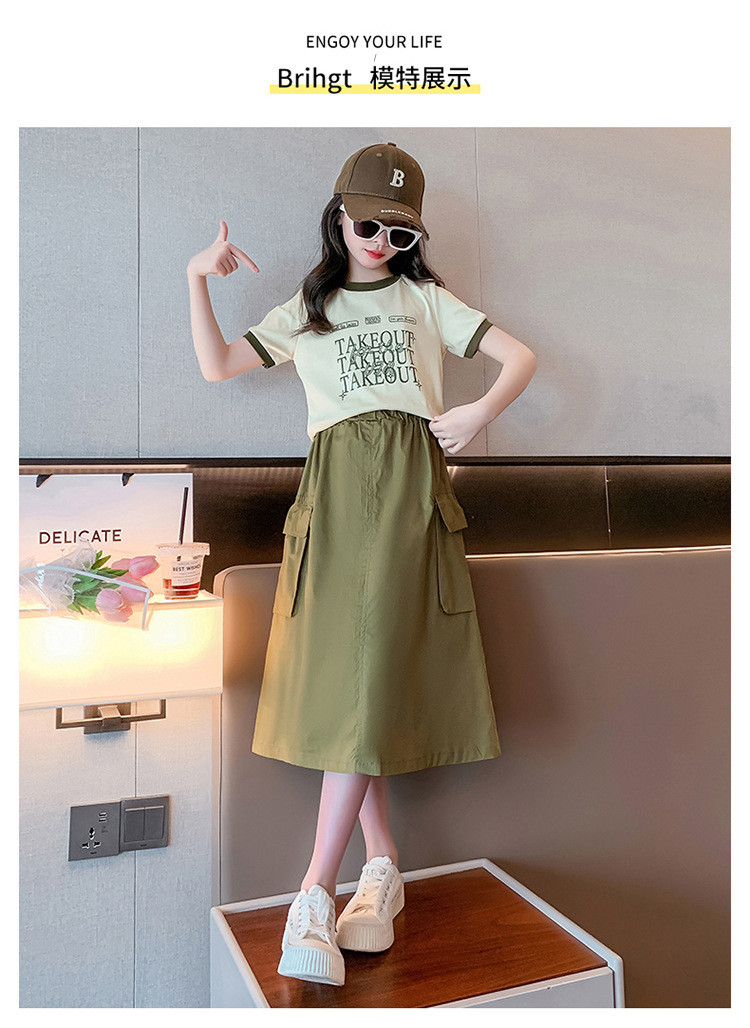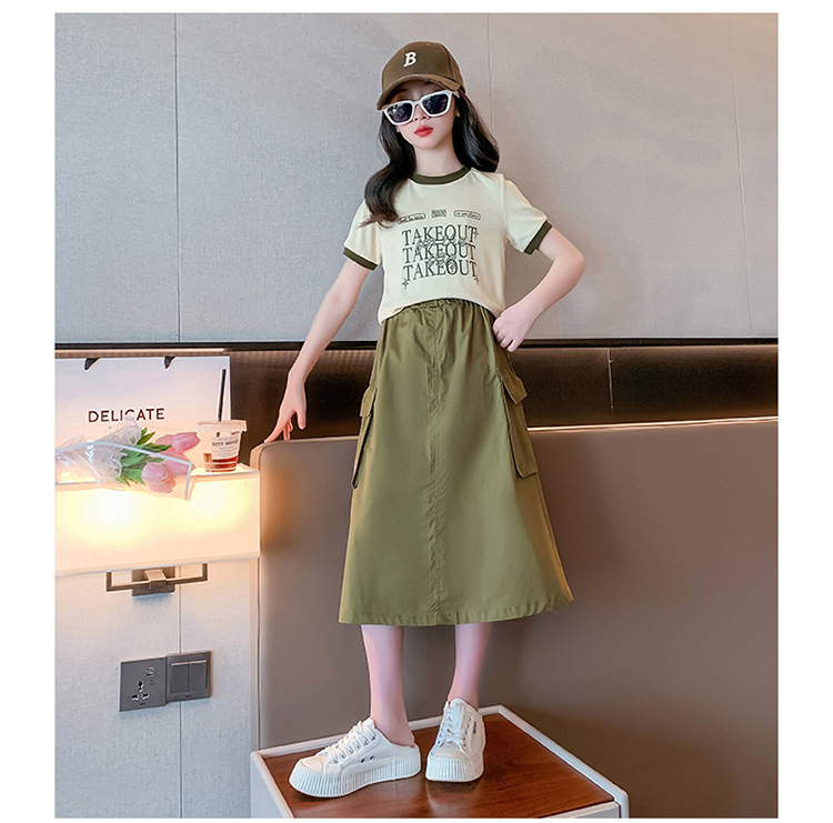 女童套装2024新款夏季中大童女孩儿童短袖工装短裙网红学院风套裙