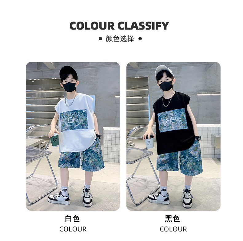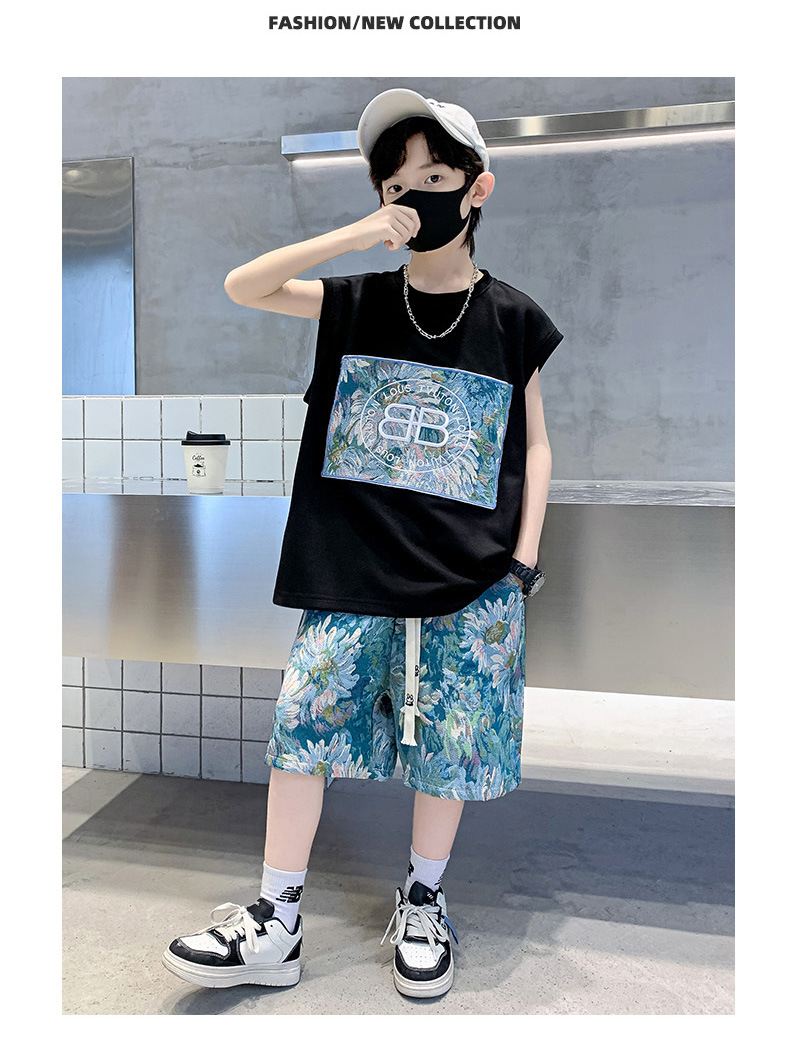 男童无袖夏装套装2024新款中大童夏季两件套潮儿童夏款背心衣服潮