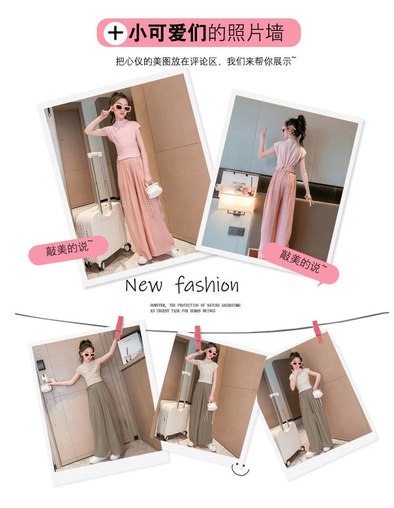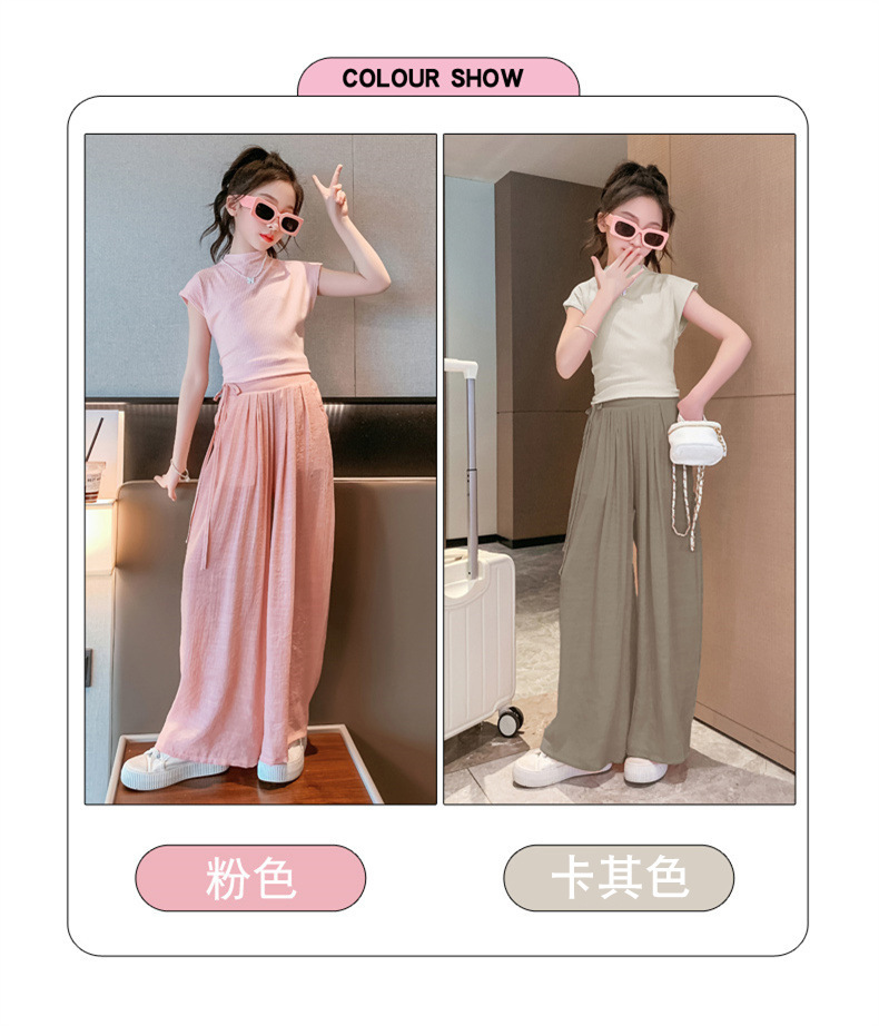 女童套装夏装2024新款中大童轻薄透气纯色短袖休闲裤儿童女孩夏装