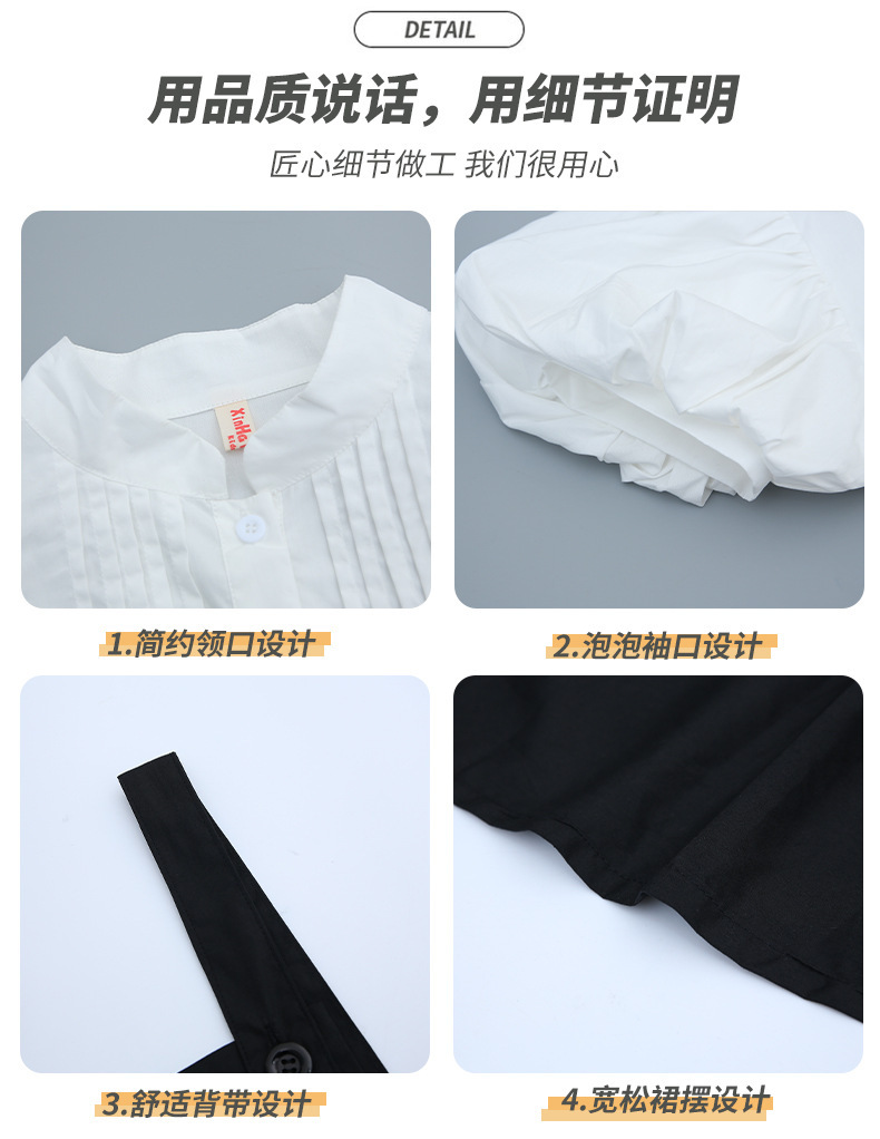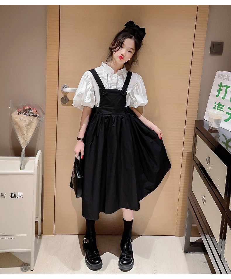 女童连衣裙2024新款夏季泡泡袖背带裙儿童洋气套装短袖中大童裙子